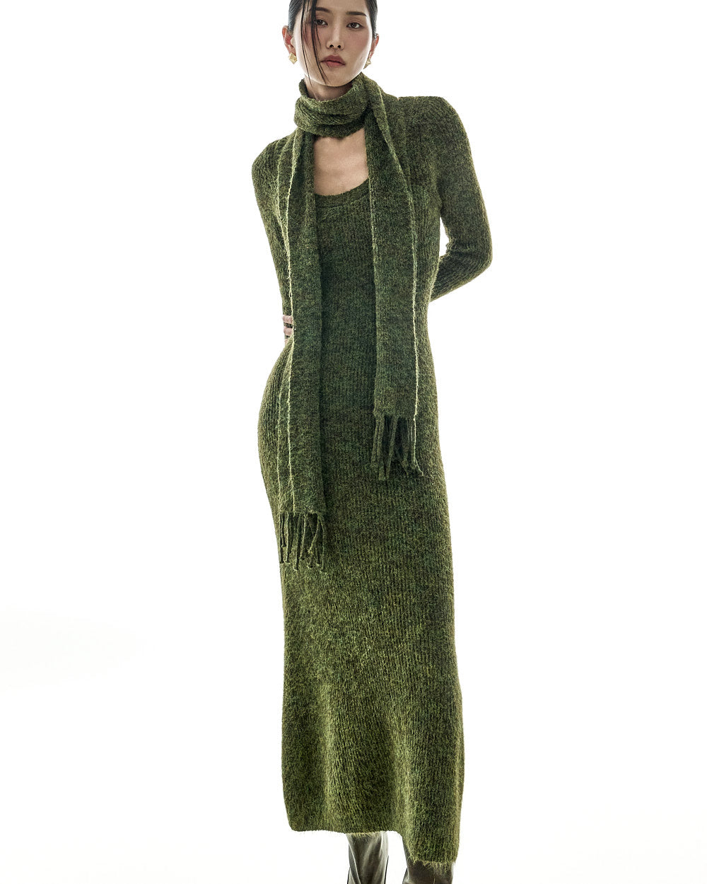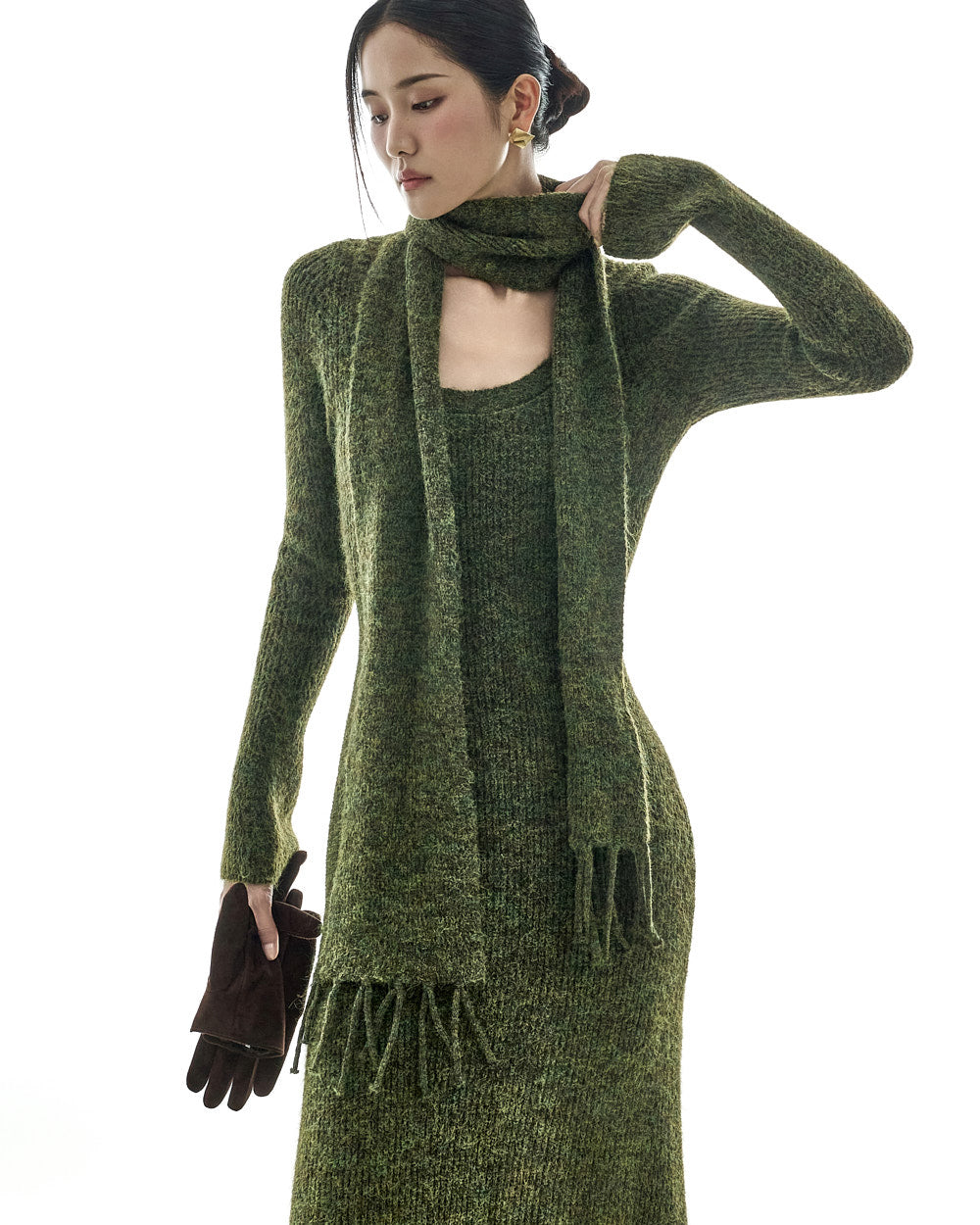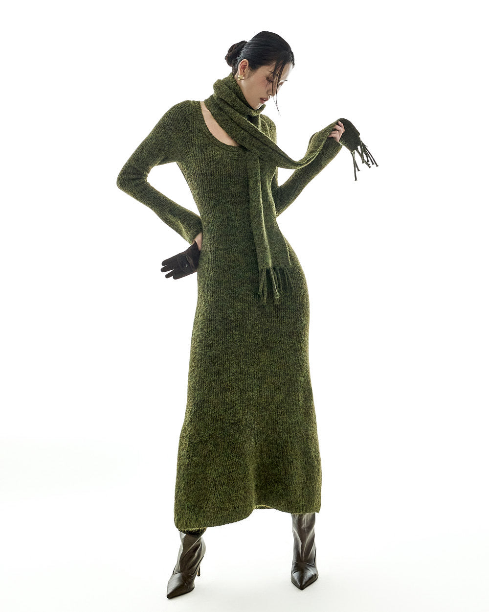 D5423 Knit Dress with Muffler