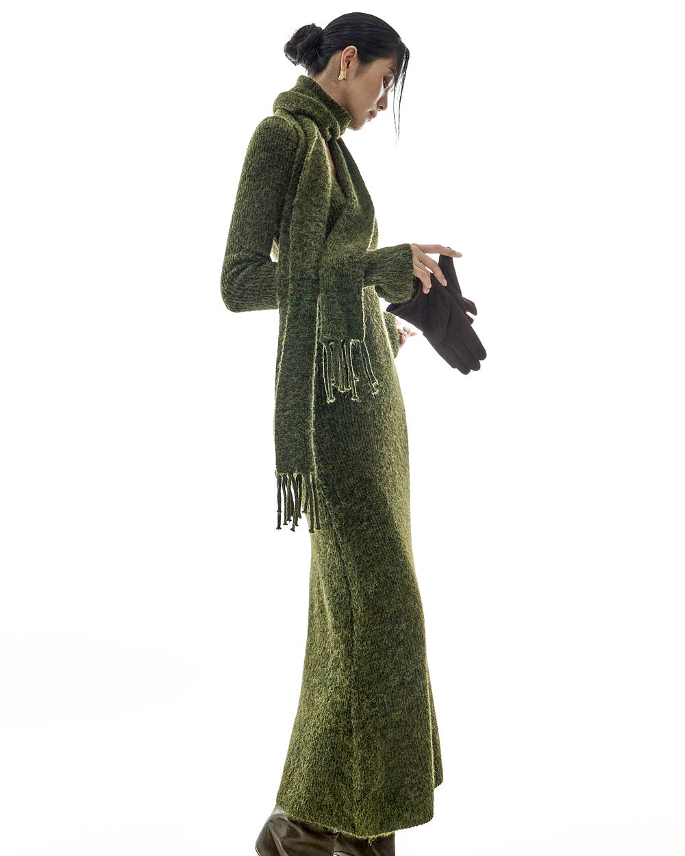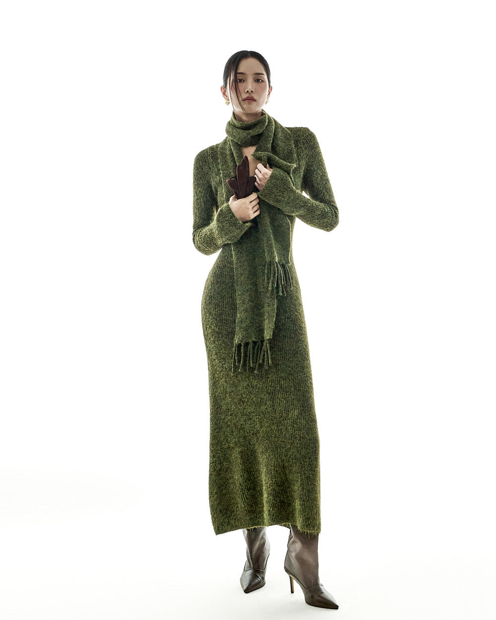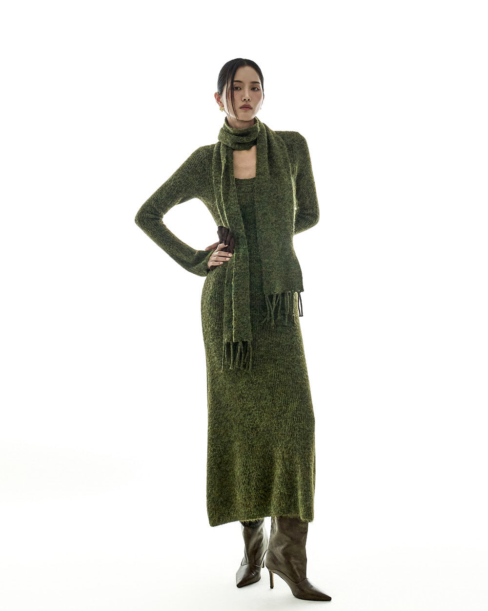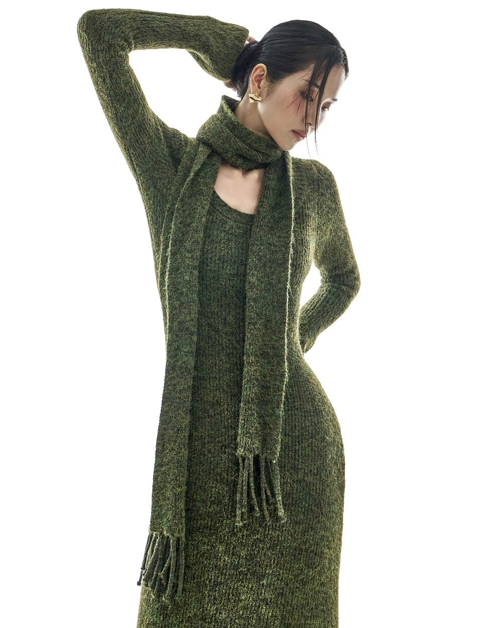 D5423 Knit Dress with Muffler
