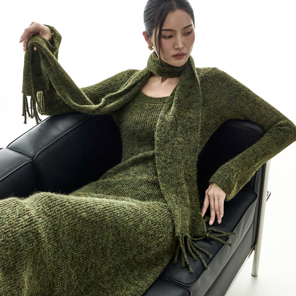 This casual muffler set knit dress is a stylish addition to your wardrobe.