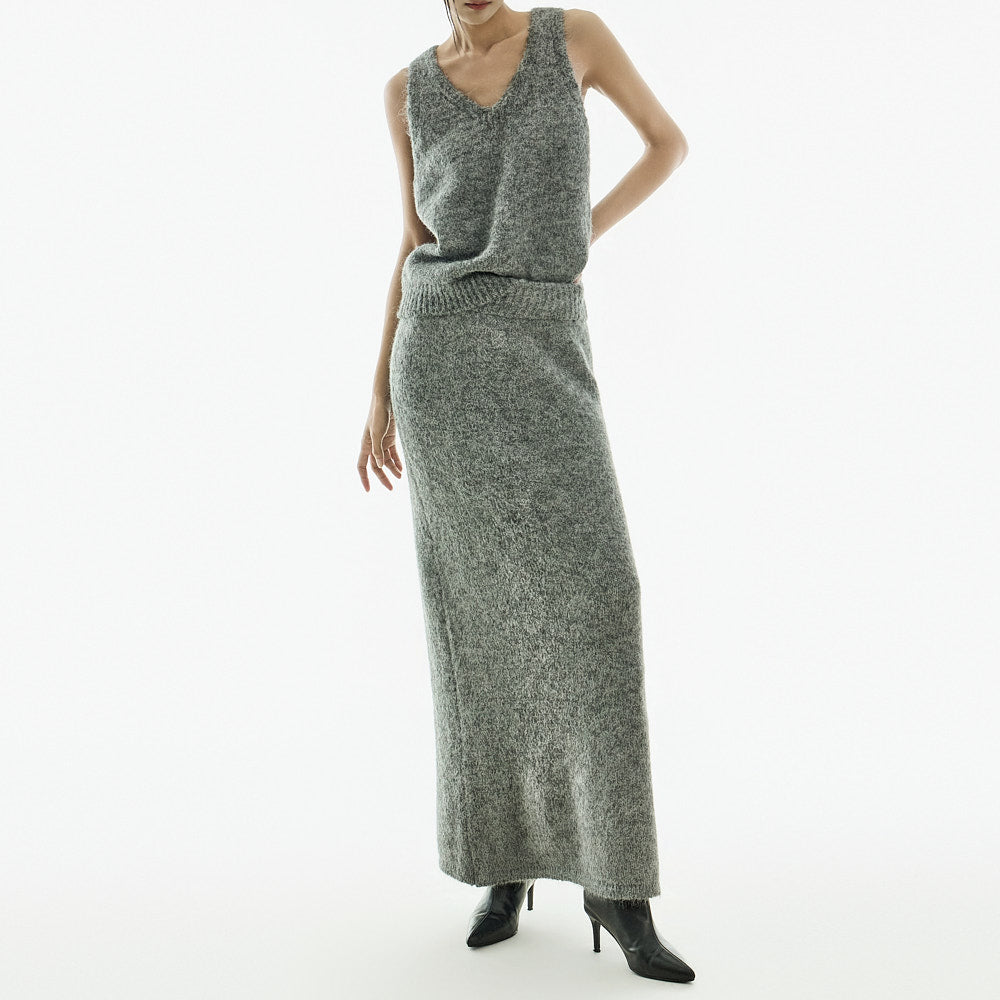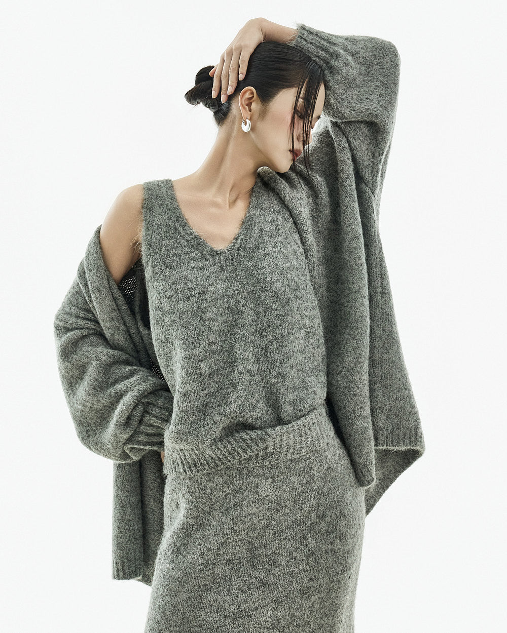 The V-neck sleeveless top and open cardigan design