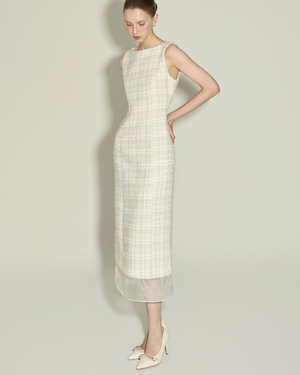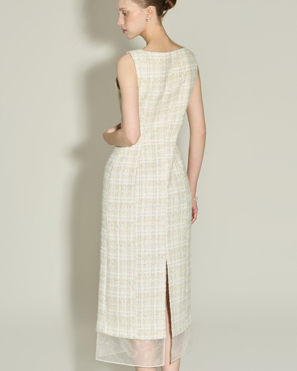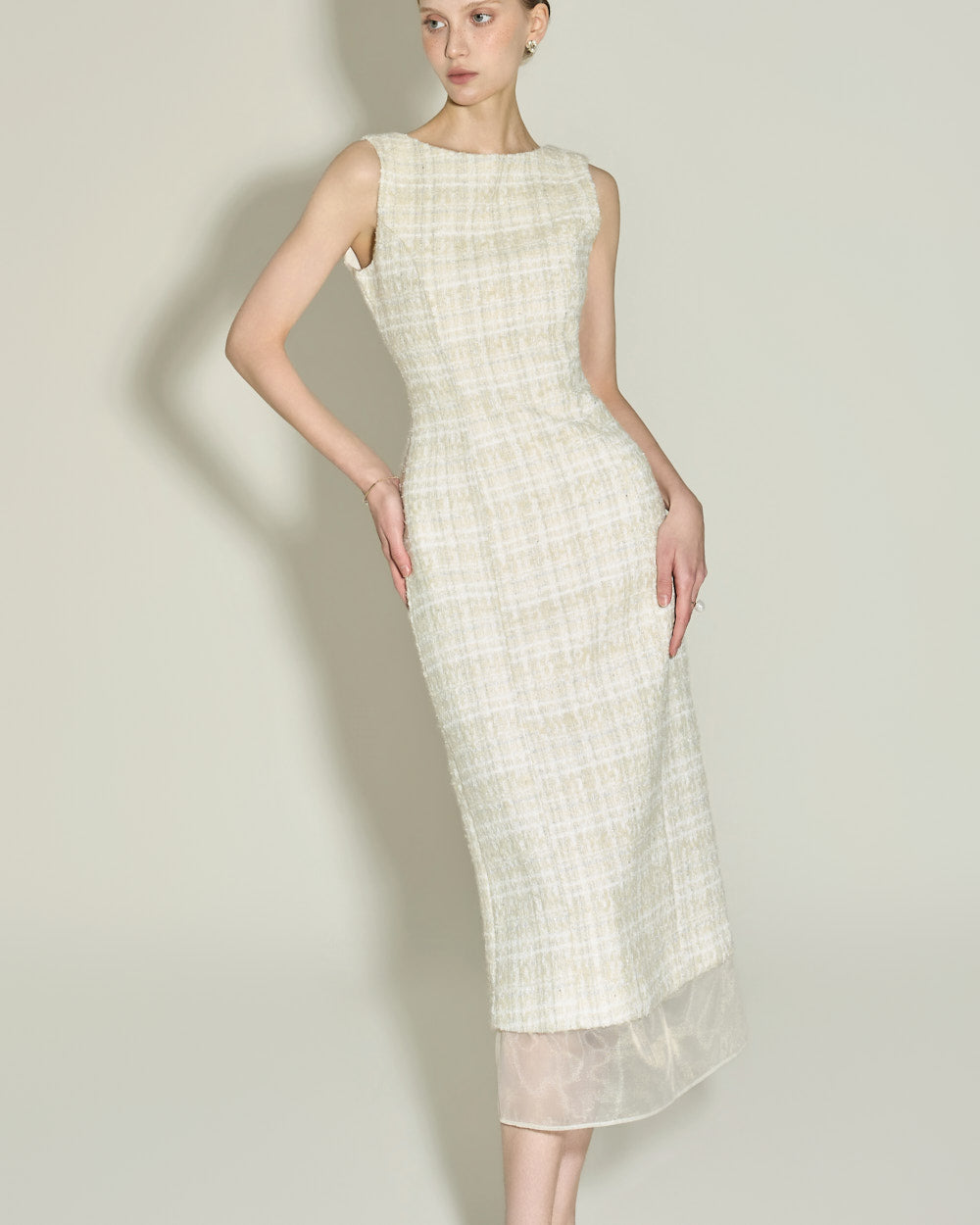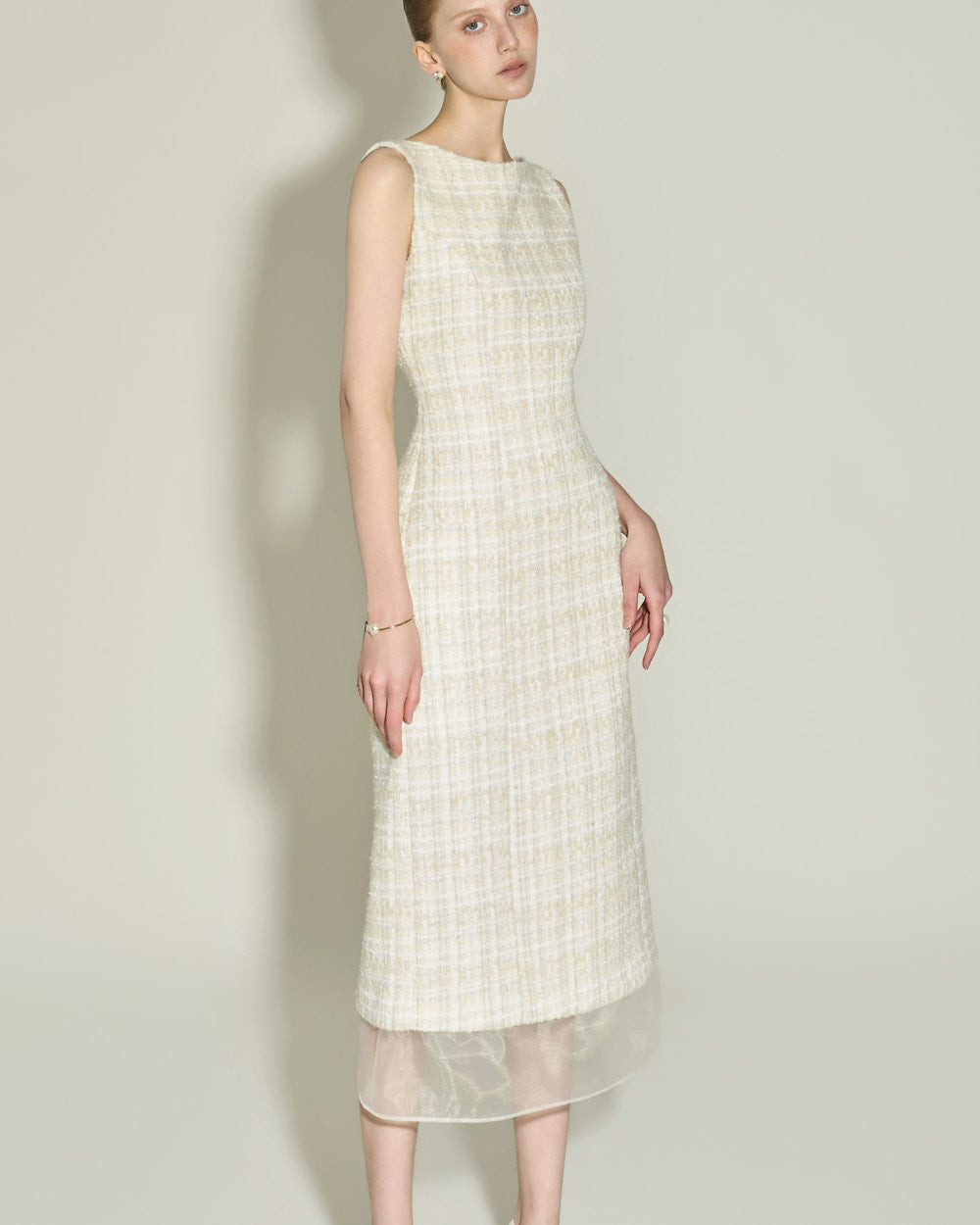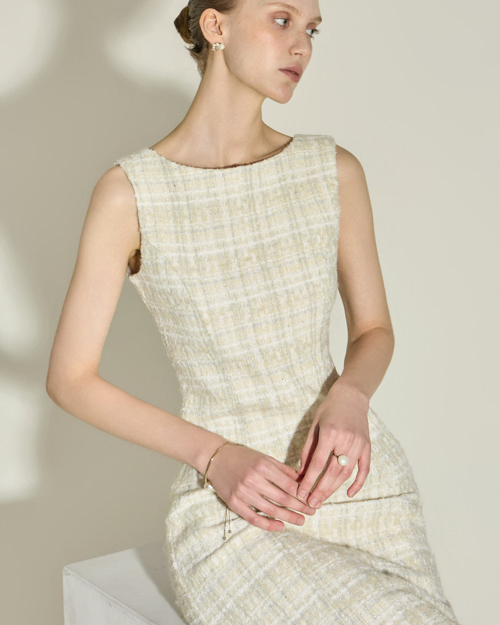 This elegant wool tweed dress.