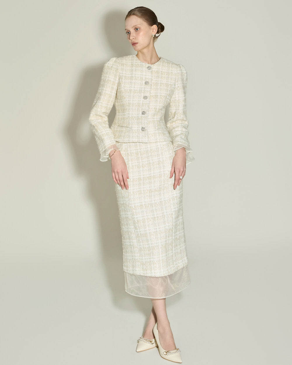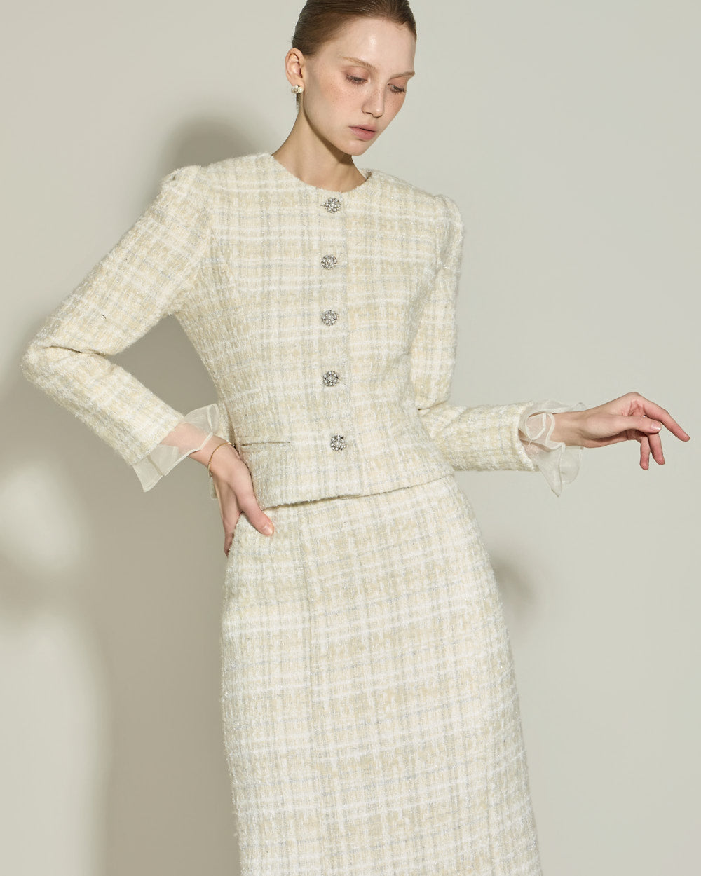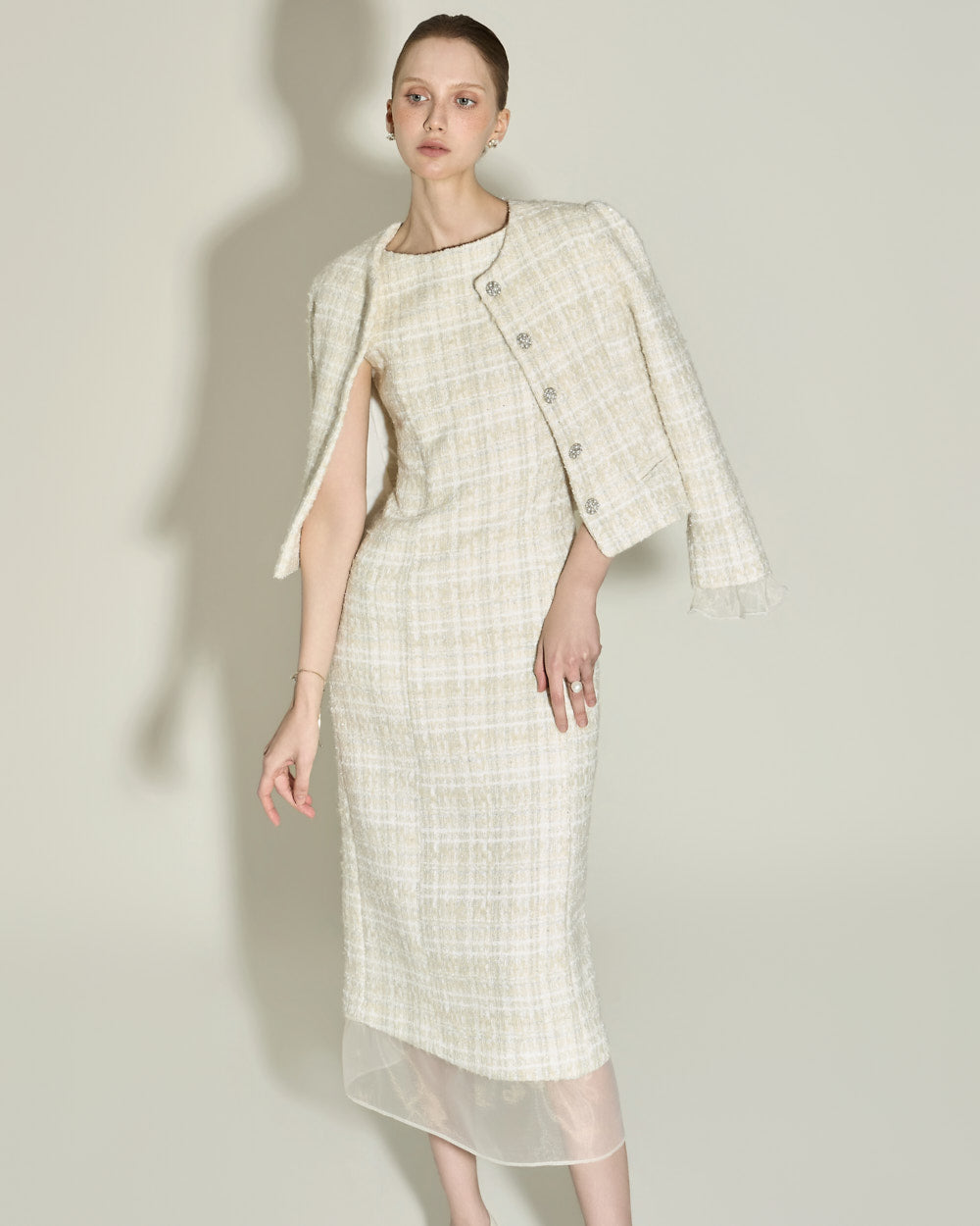 Model is 174cm tall and wearing size S in IVORY.