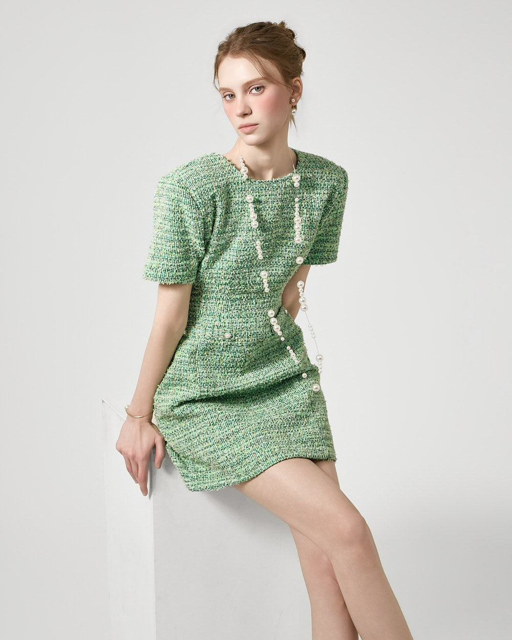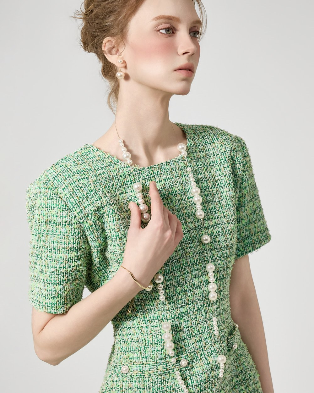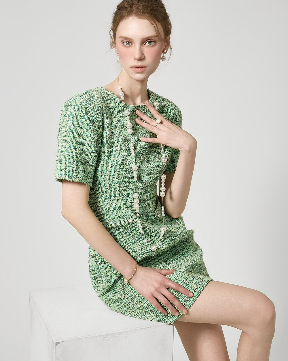 口袋上的珍珠纽扣细节增添了低调而精致的触感。