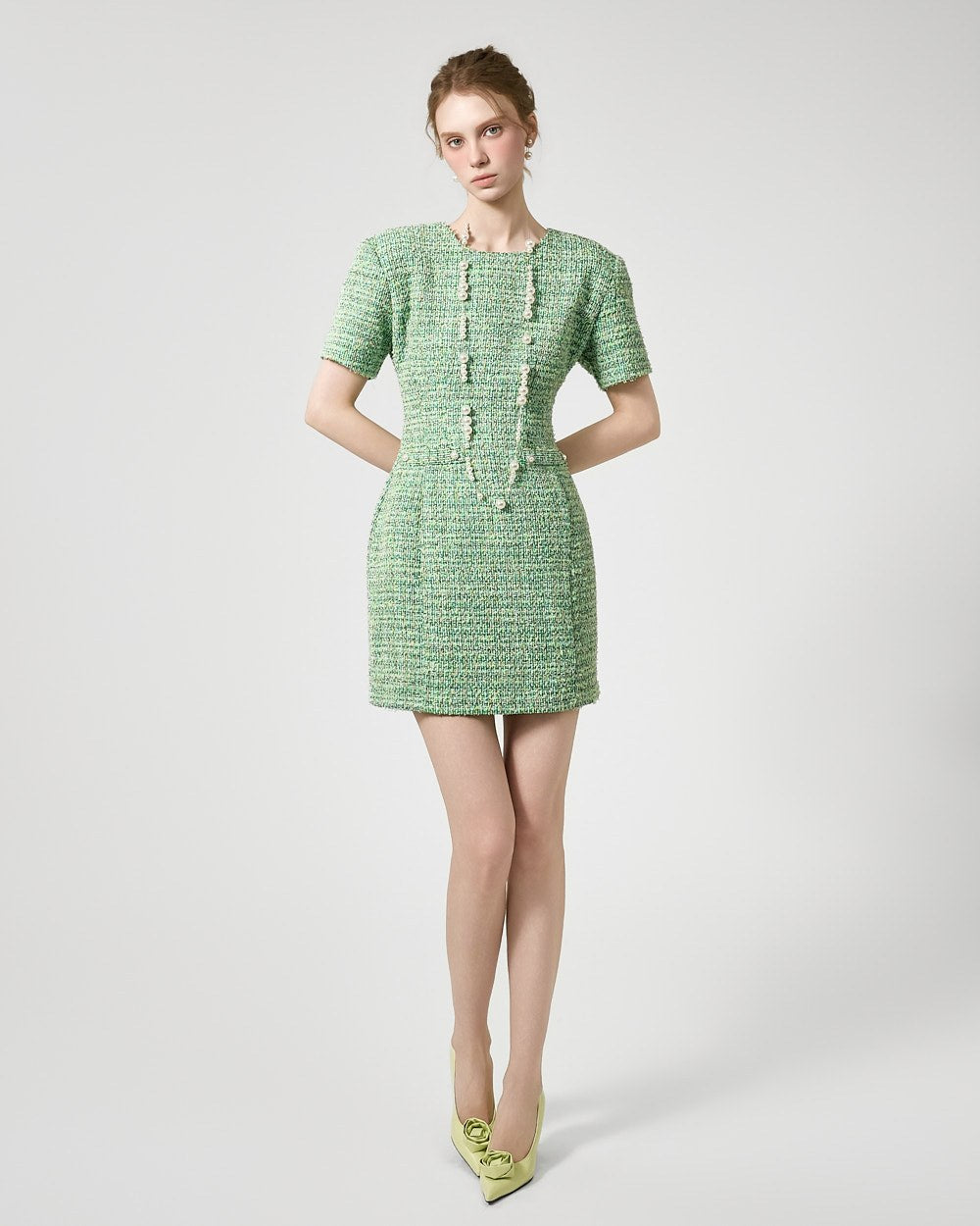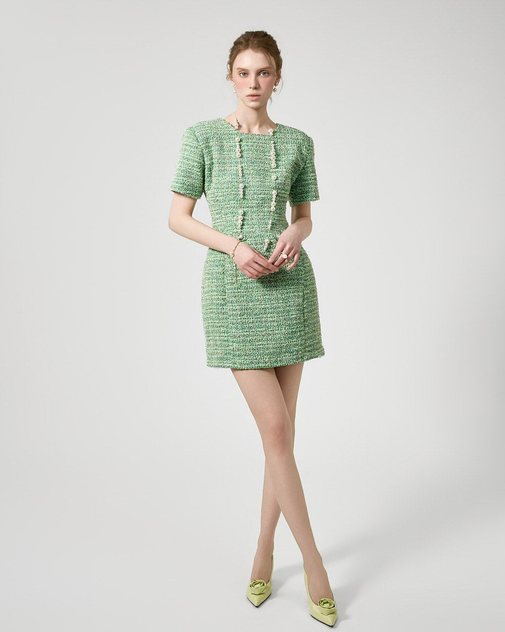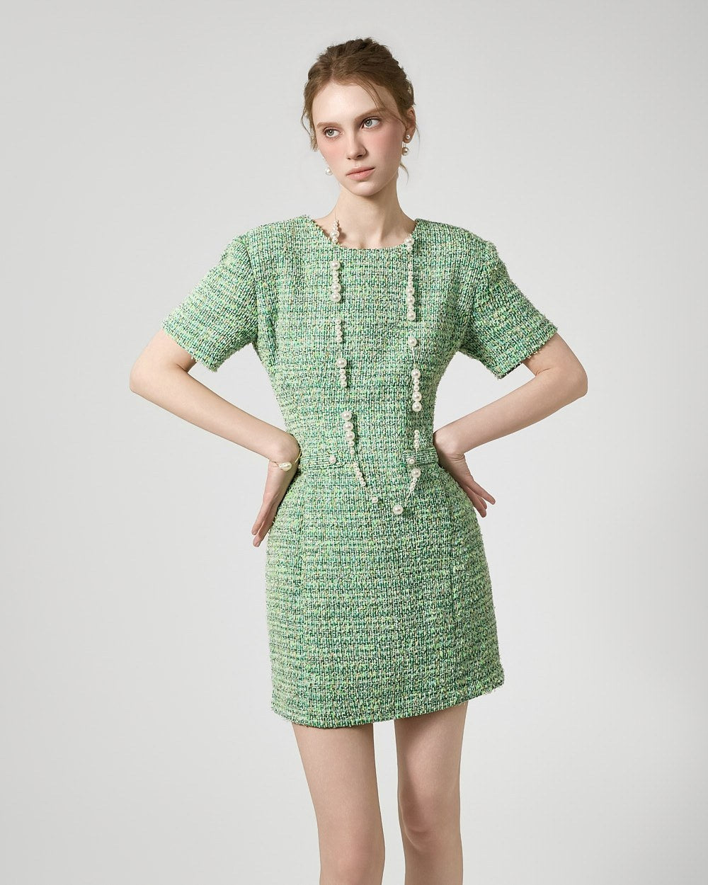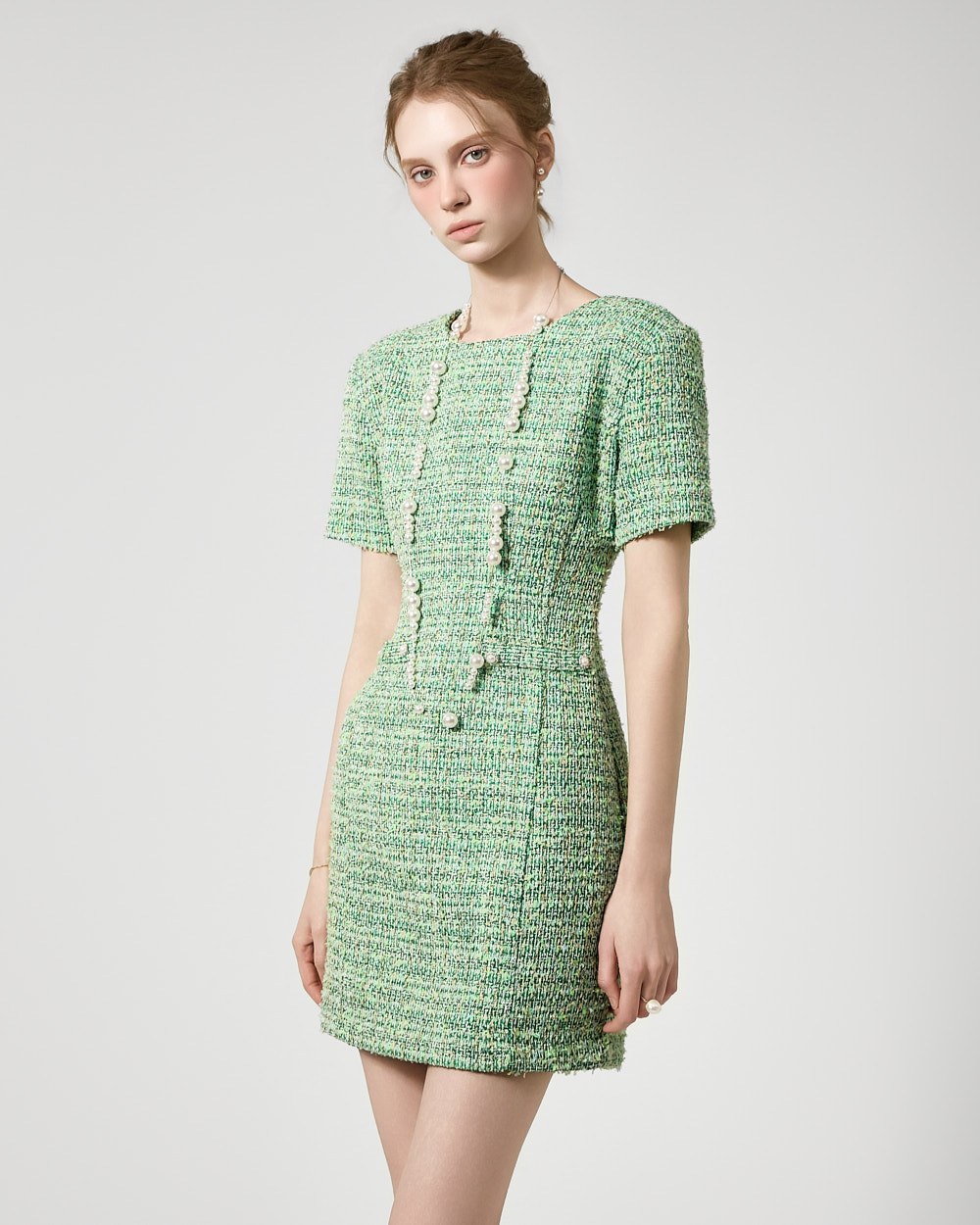 口袋上的珍珠纽扣细节增添了低调而精致的触感。