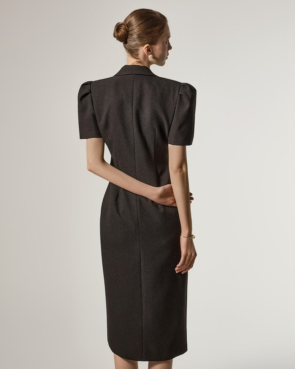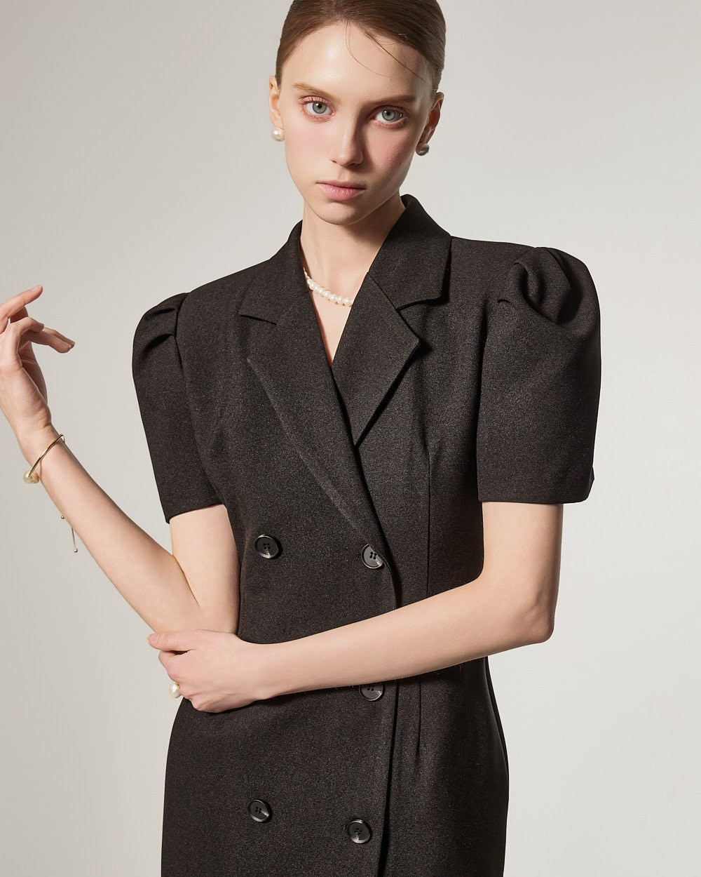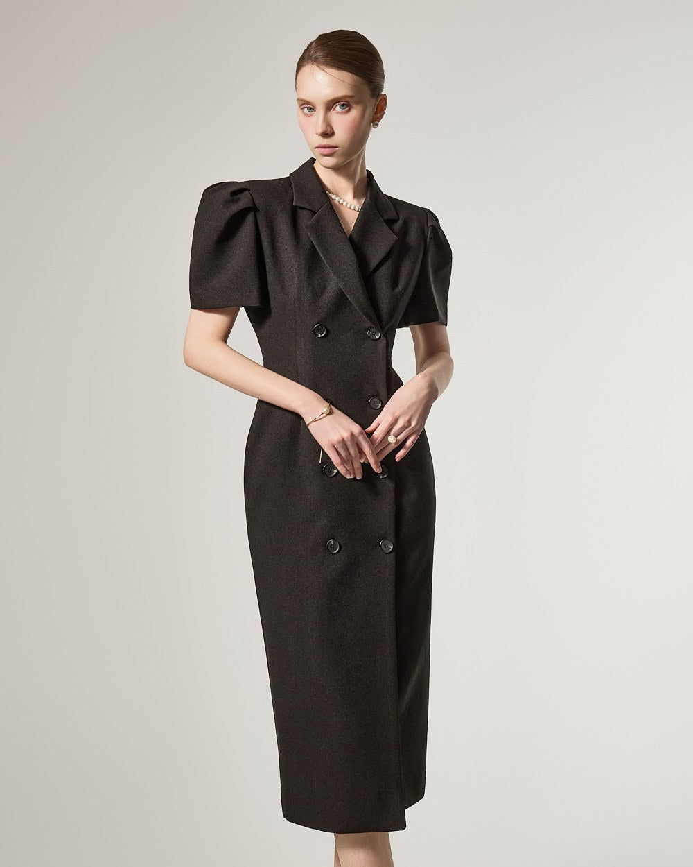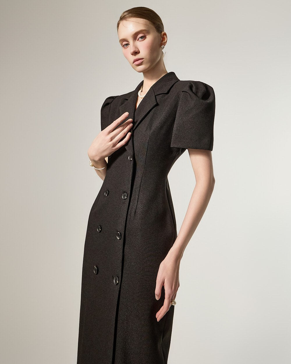 D5491 双排扣泡泡袖连衣裙
