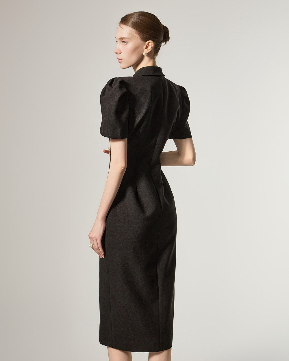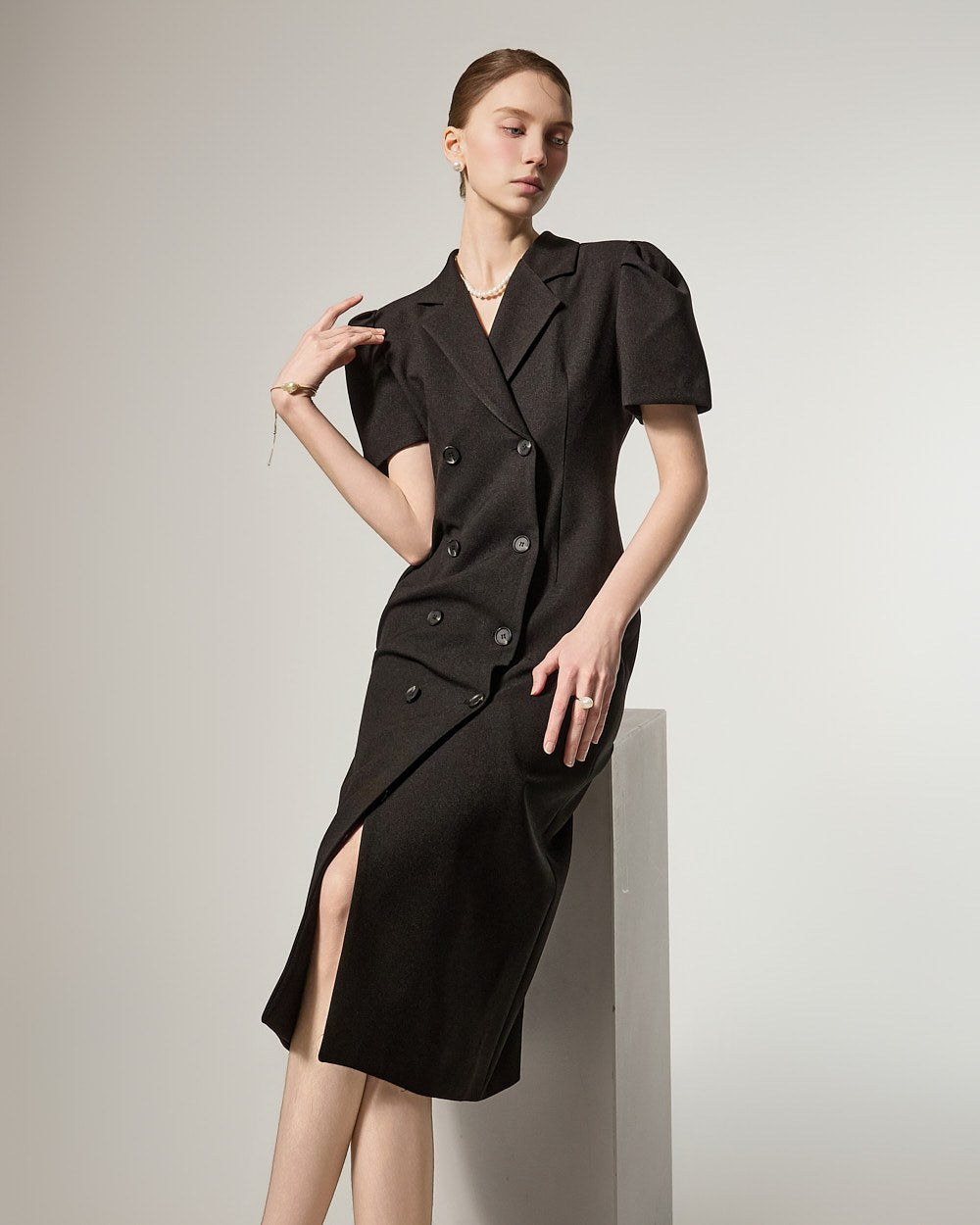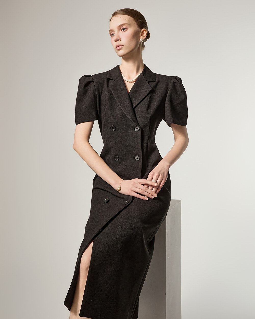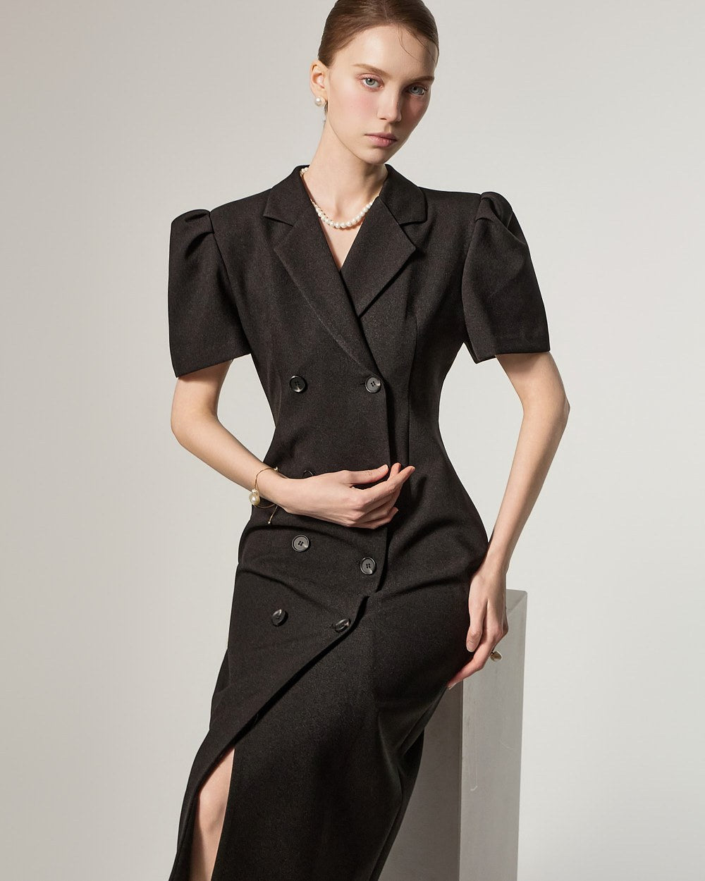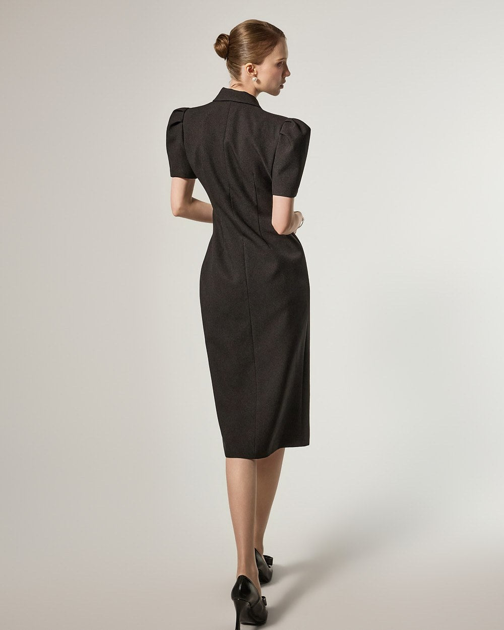 D5491 双排扣泡泡袖连衣裙