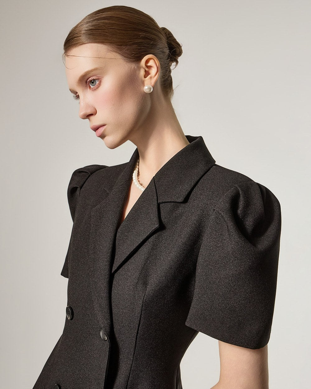 短款泡泡袖设计,
