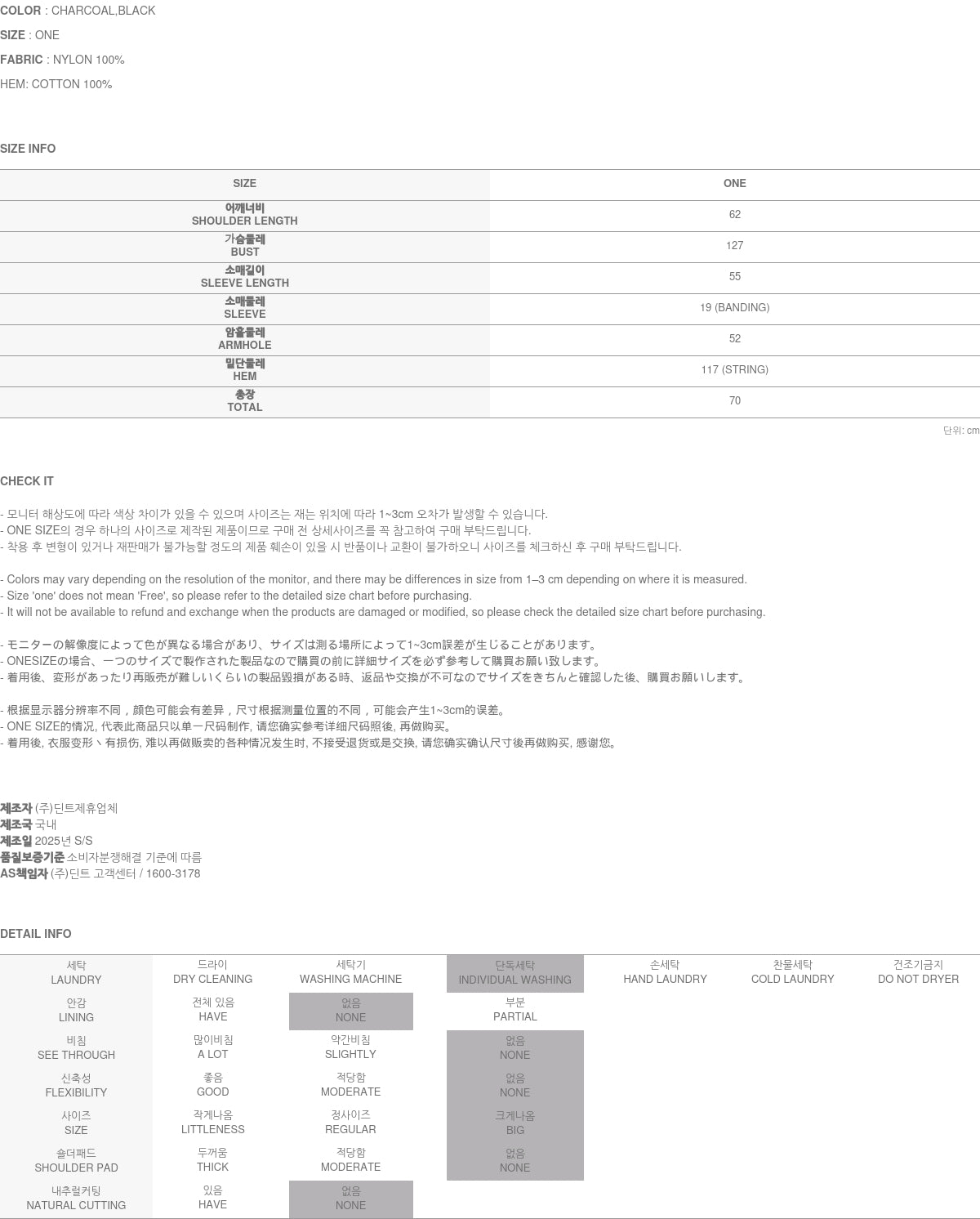 收到退回Dint的商品后,请填写随附的退货申请表,并按照收到时的包装方式重新包装(塑料袋、衣架、按金额赠送)。然后将其寄回Dint。