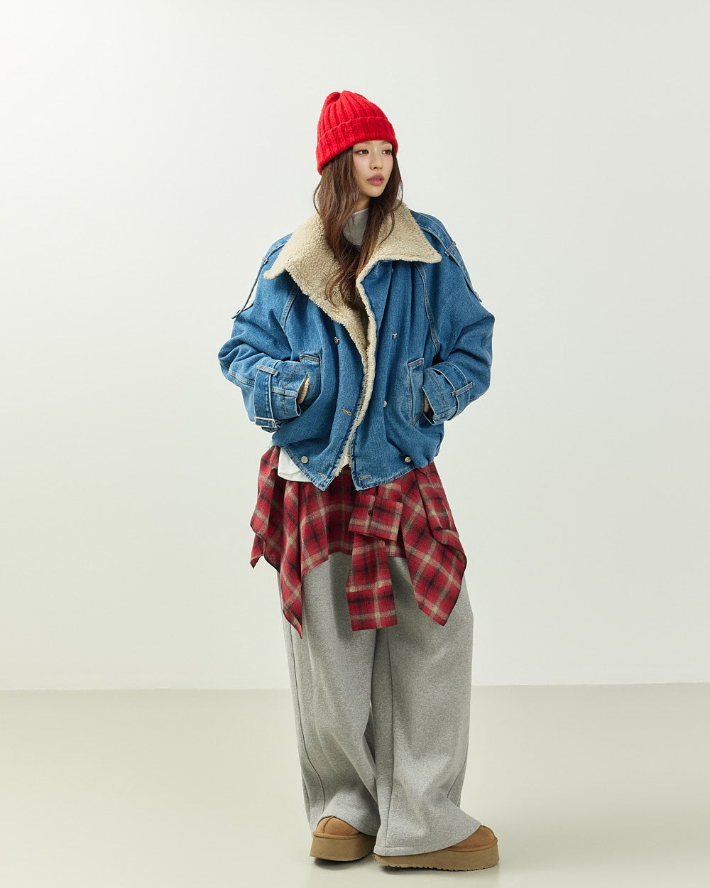 and the added shoulder pads create a casual yet stylish silhouette.