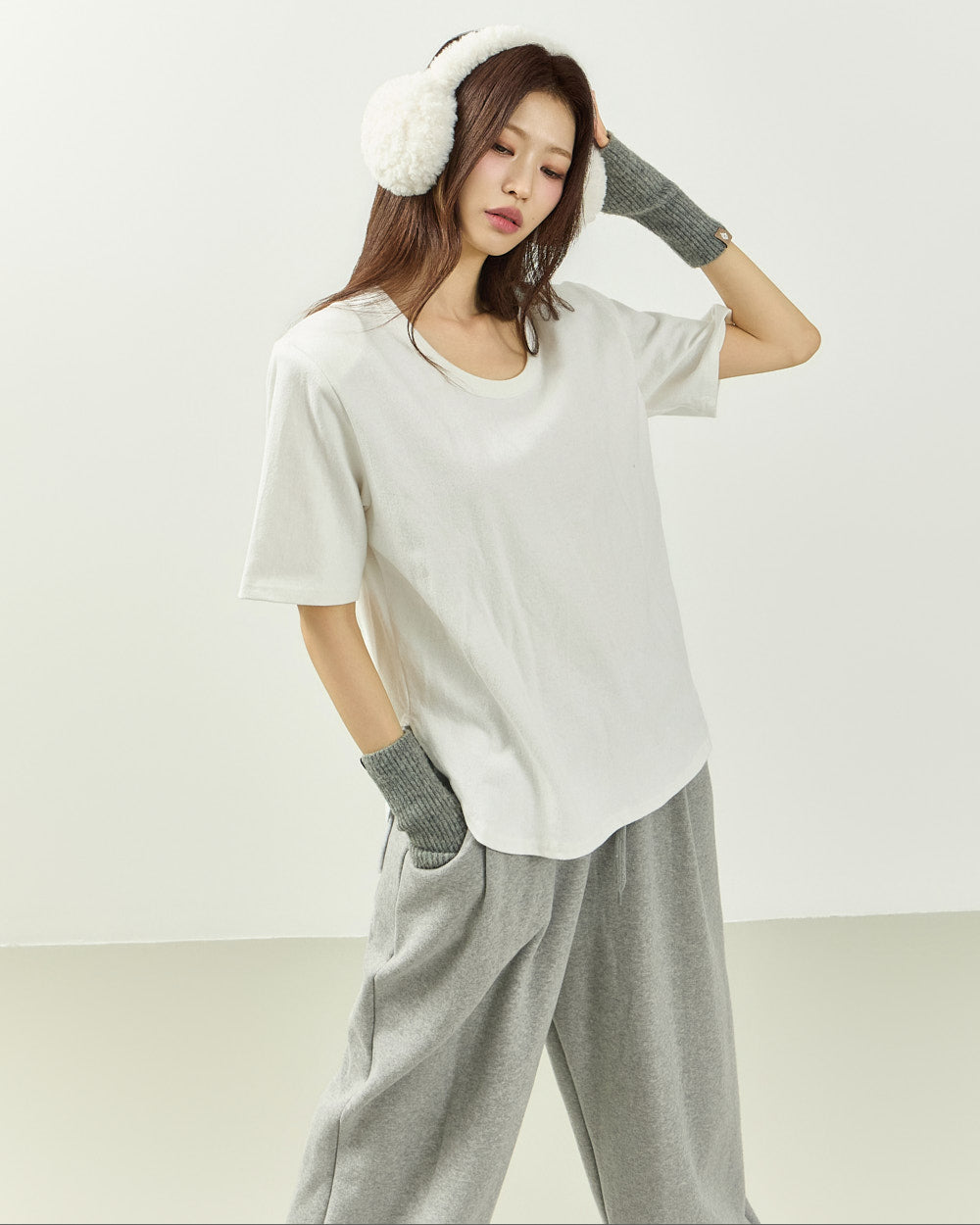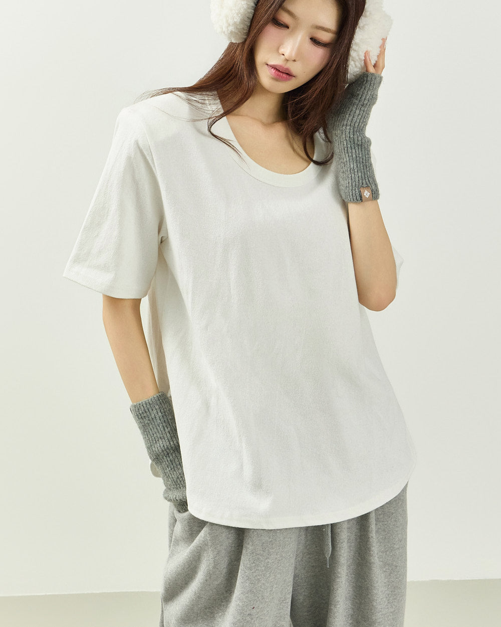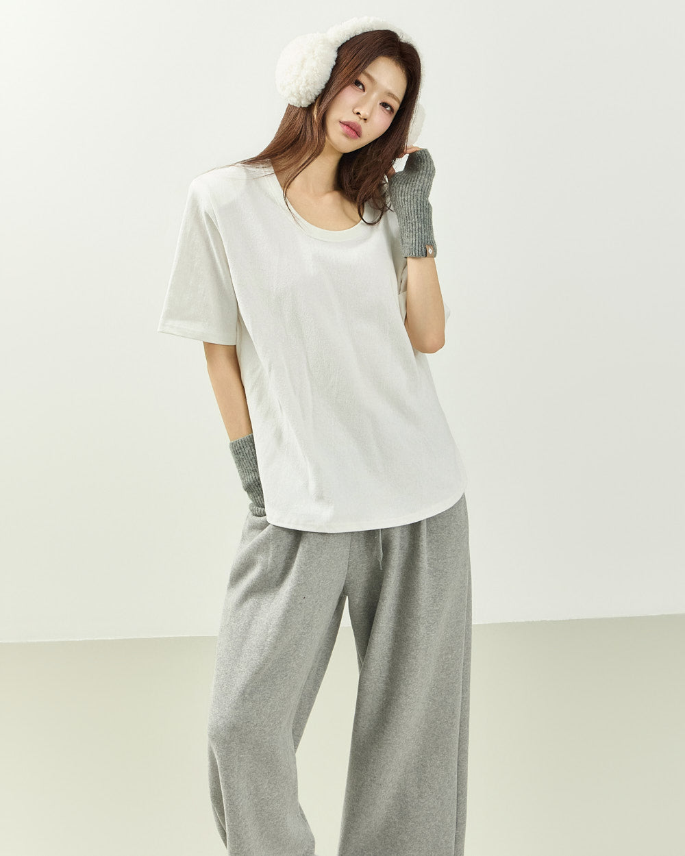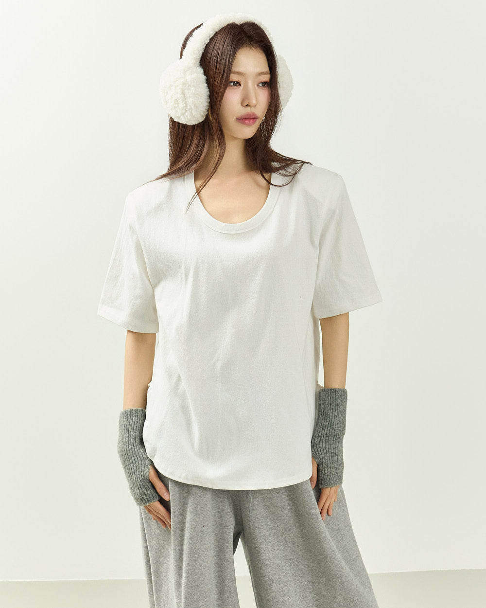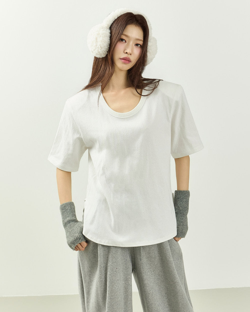 The wide U-neck design accentuates the collarbone with a feminine touch,