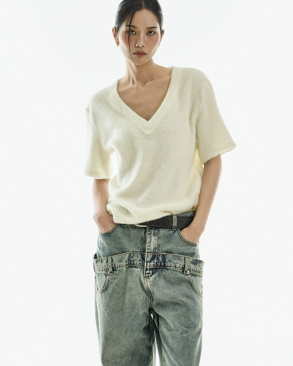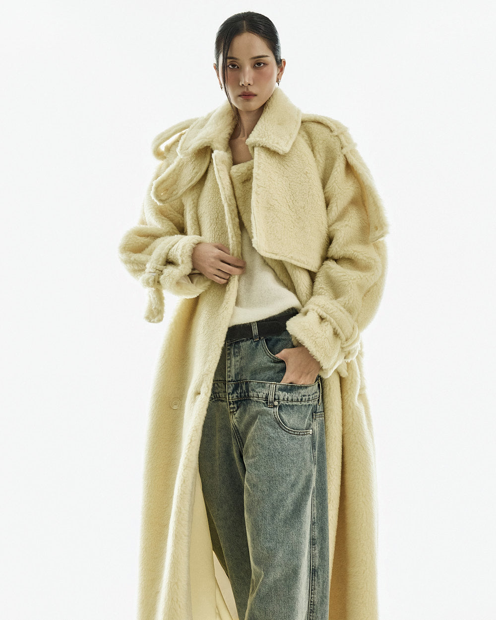 The model is 173cm tall and is wearing size ONE in IVORY.