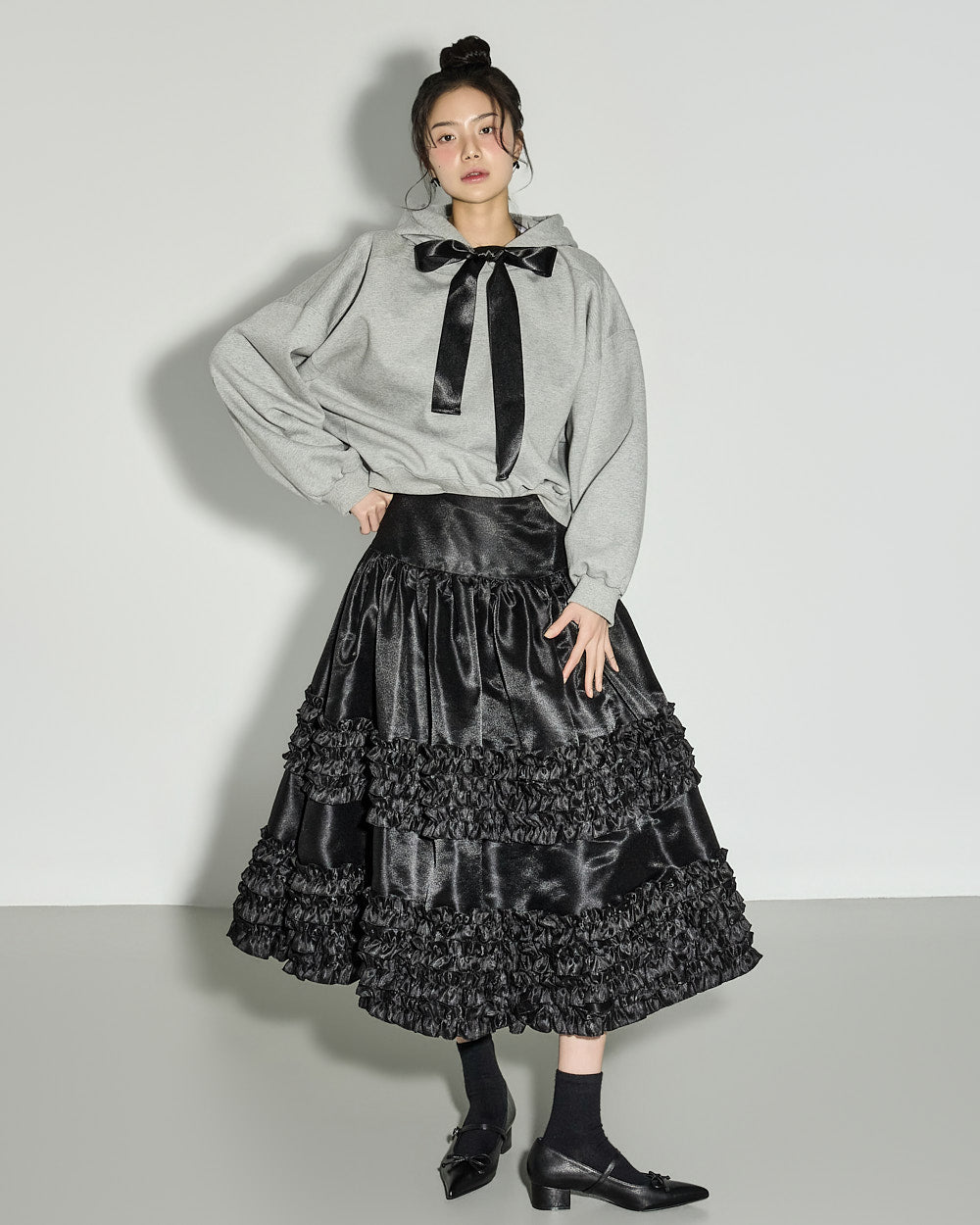 It pairs easily with a variety of bottoms, including denim, sweatpants, and skirts.