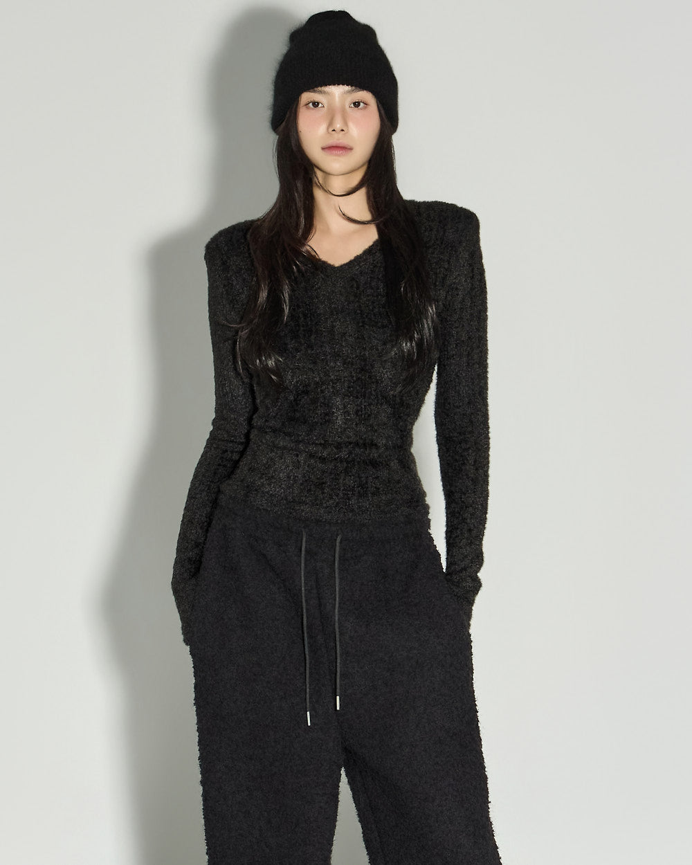 The slim-fitting V-neck design neatly reveals your neckline and collarbone,
