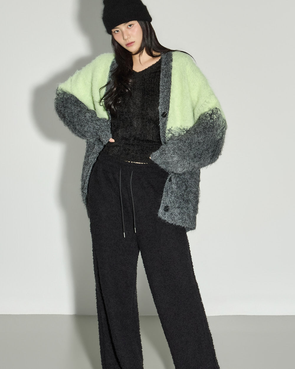 The model is 171cm tall and is wearing size ONE in BLACK.
