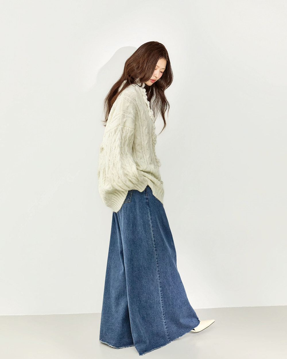 The 171cm model is wearing size ONE in IVORY.