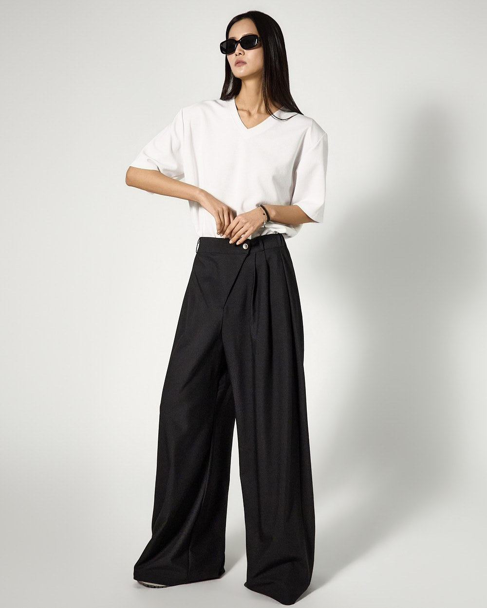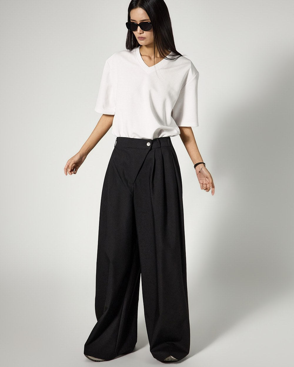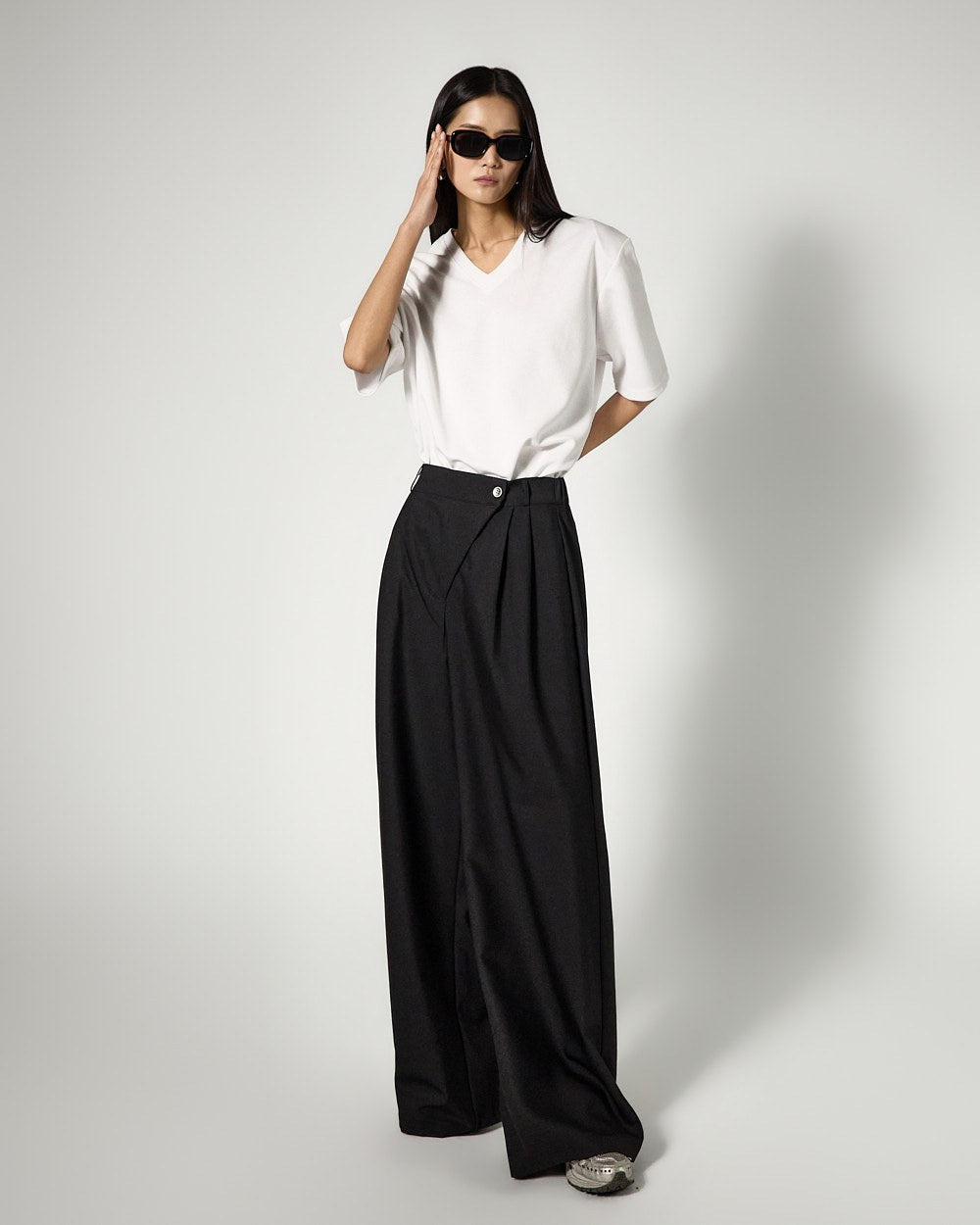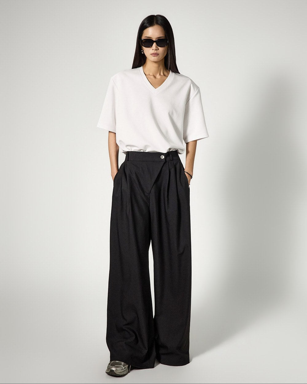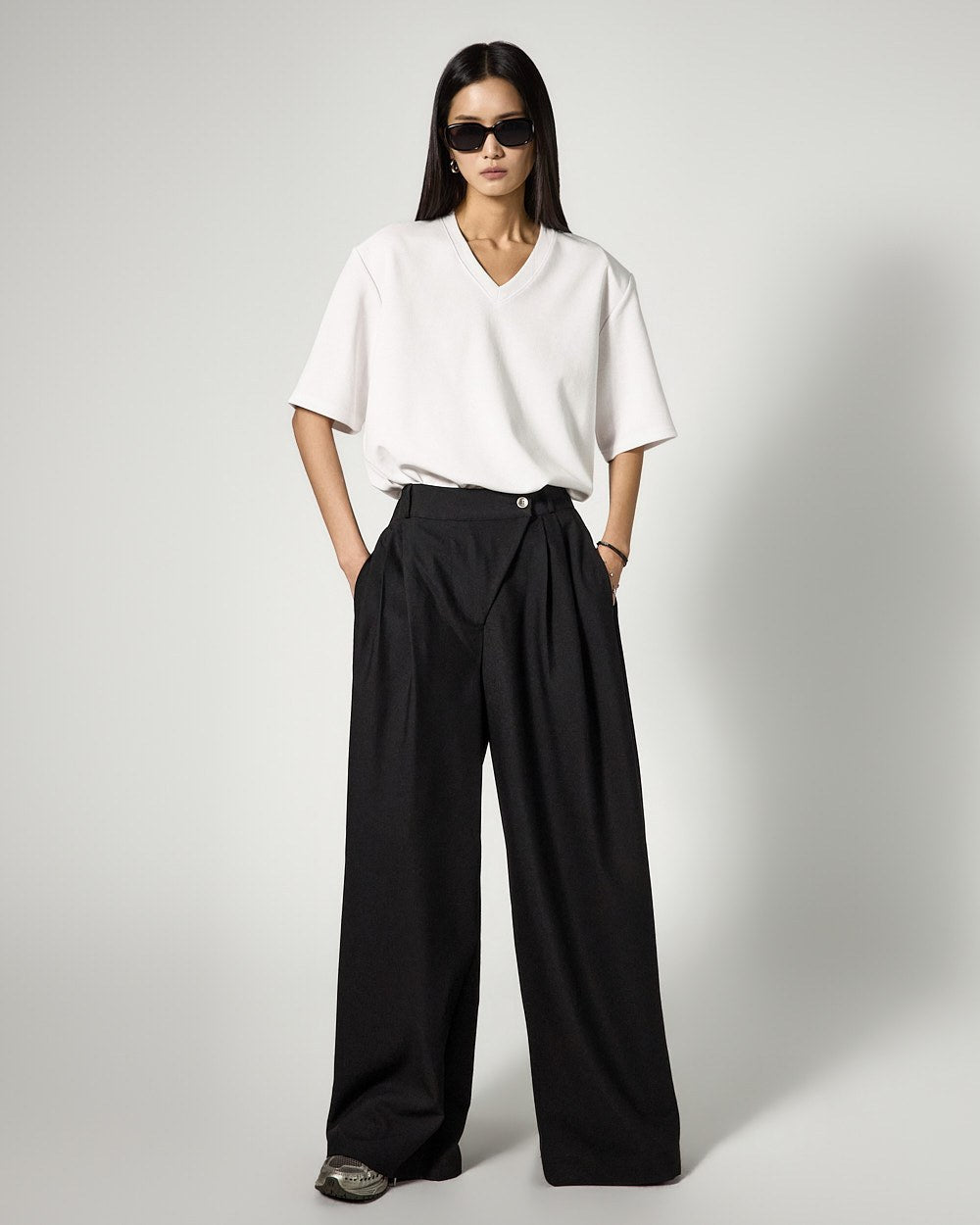 The V-neck design naturally reveals the neckline,