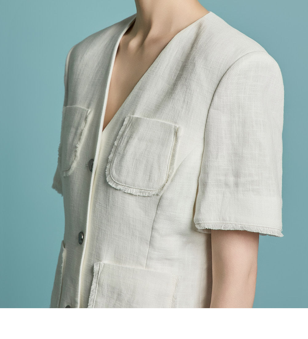 J2773 无领亚麻夹克