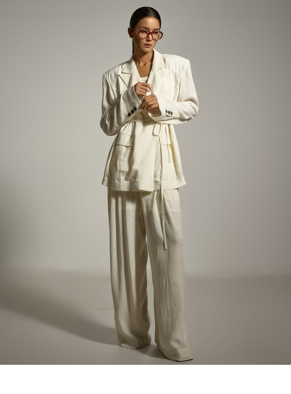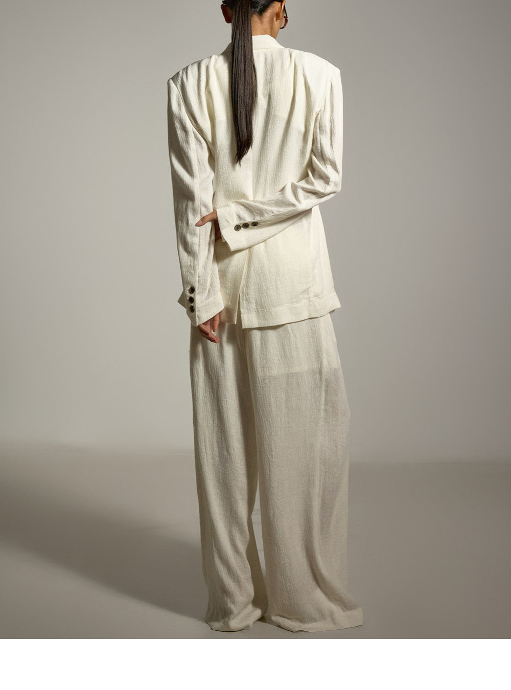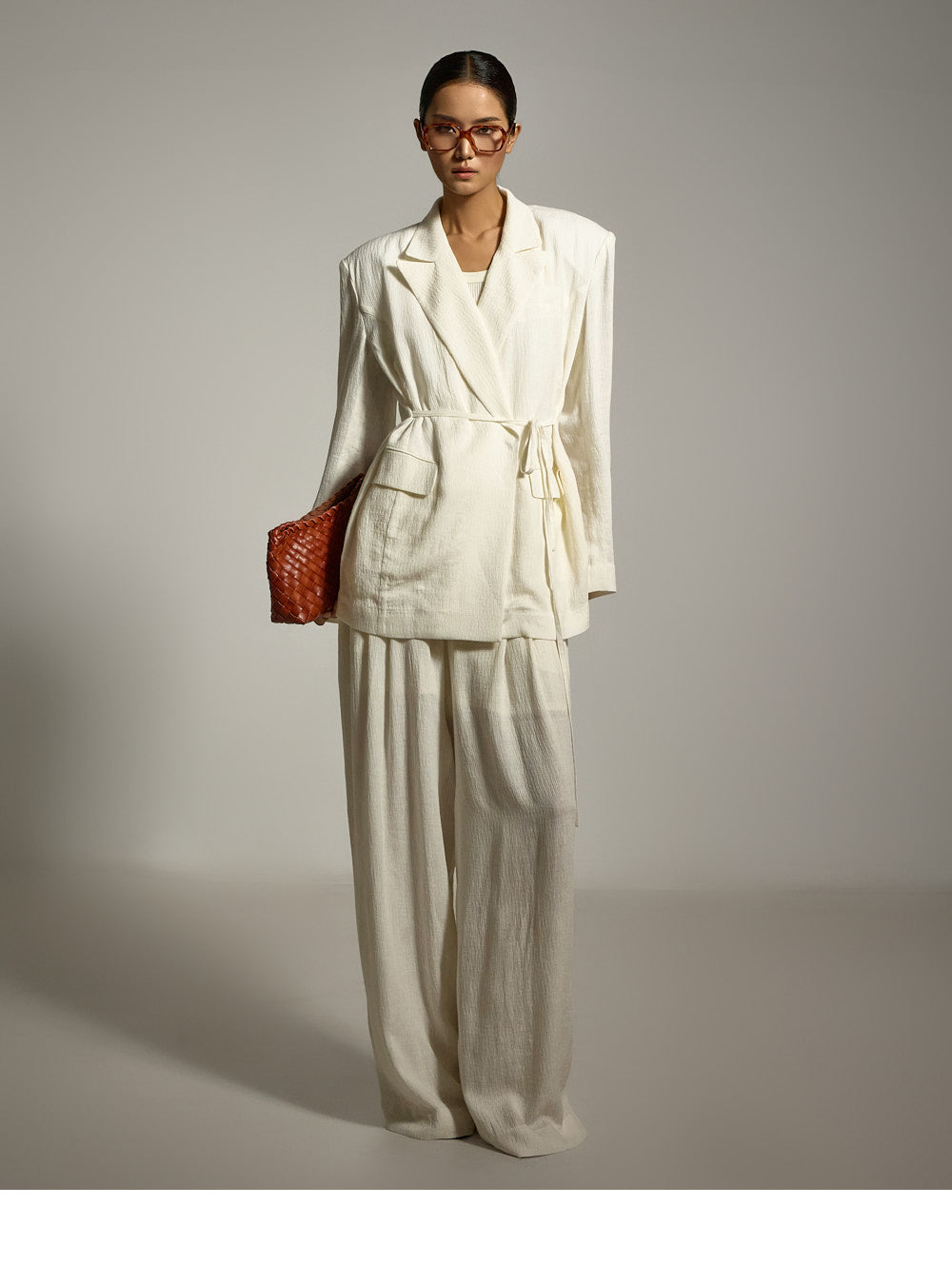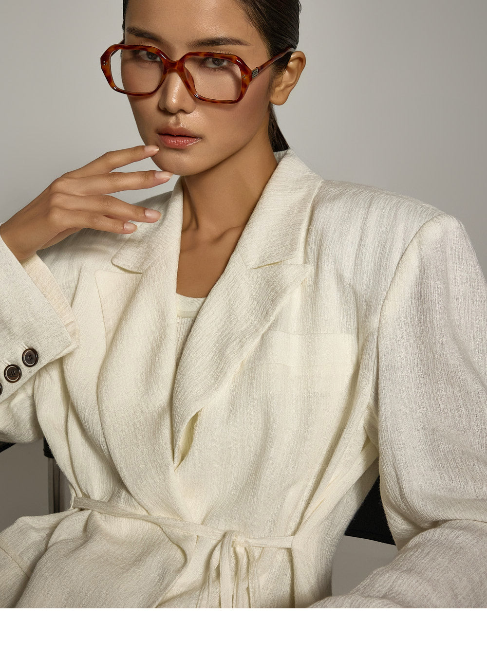 结构化的垫肩则增添了精致的造型。