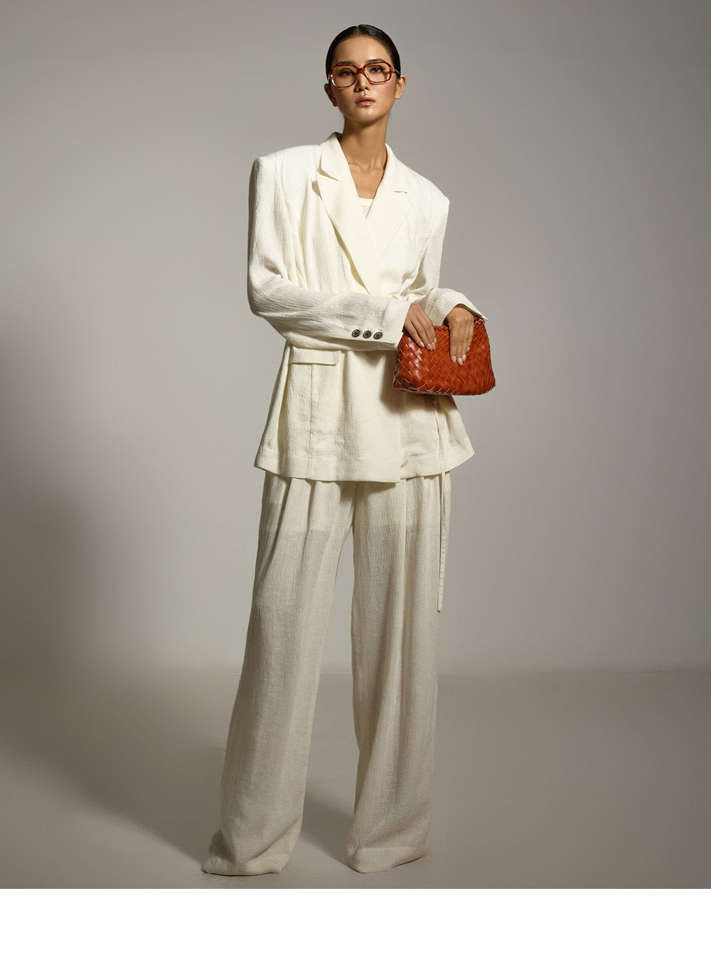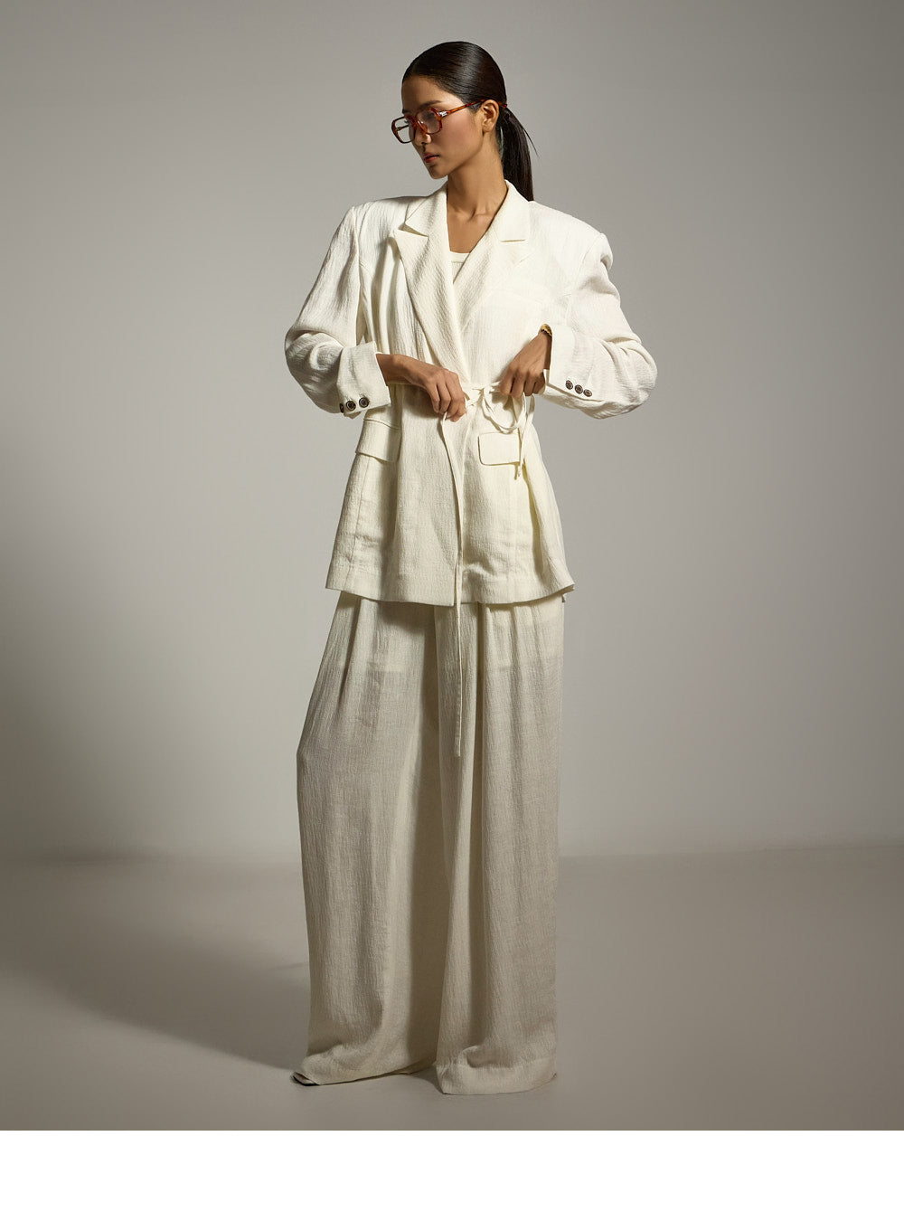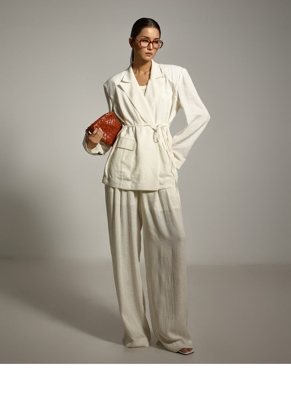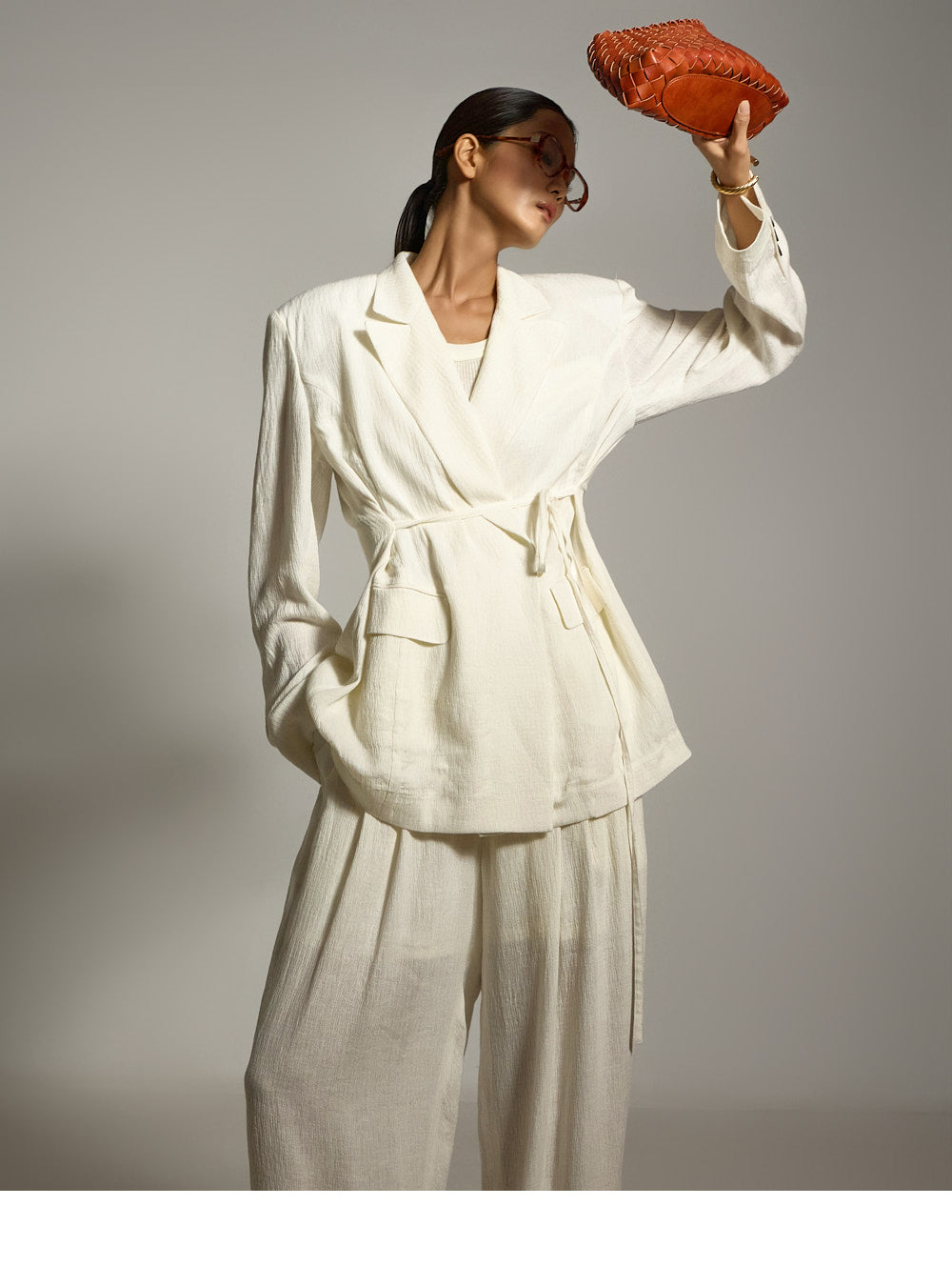 结构化的垫肩则增添了精致的造型。