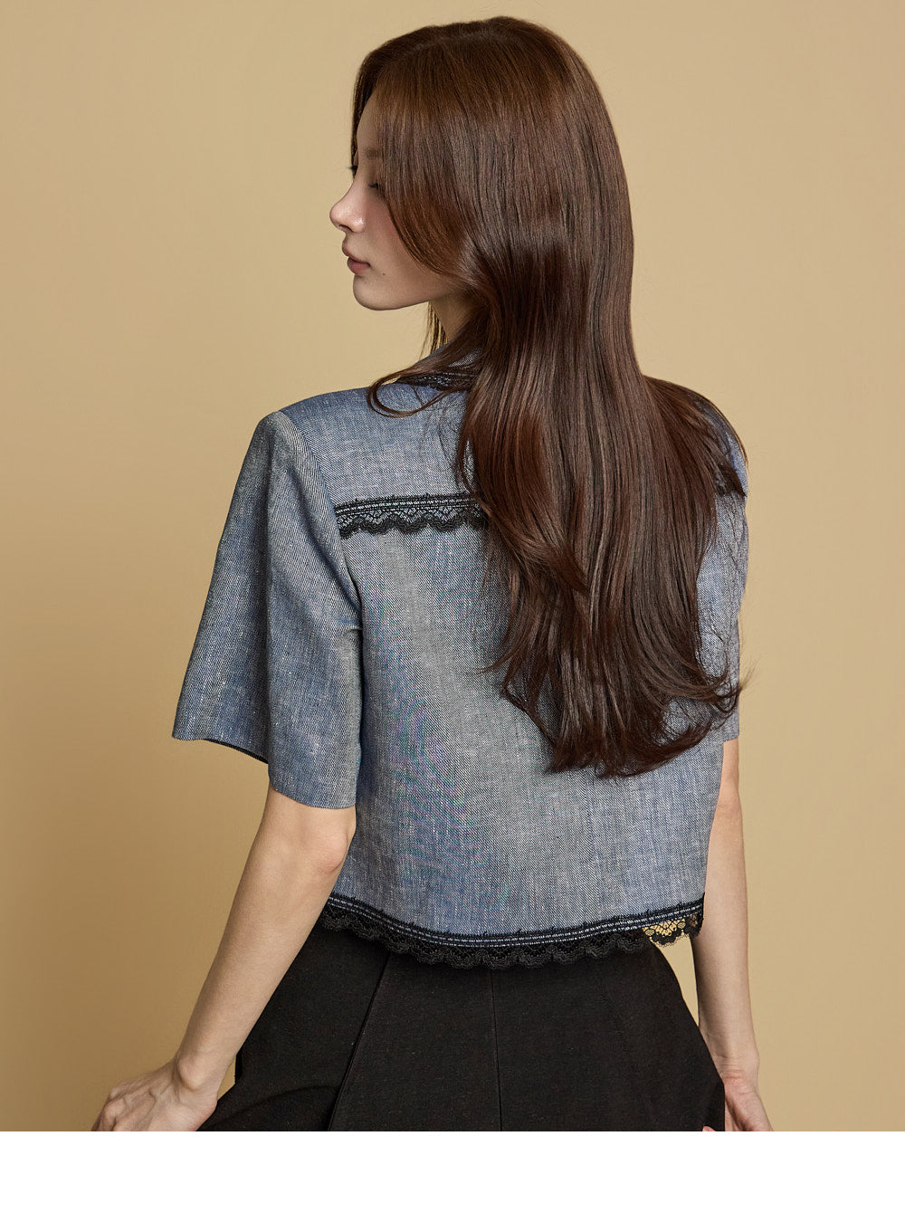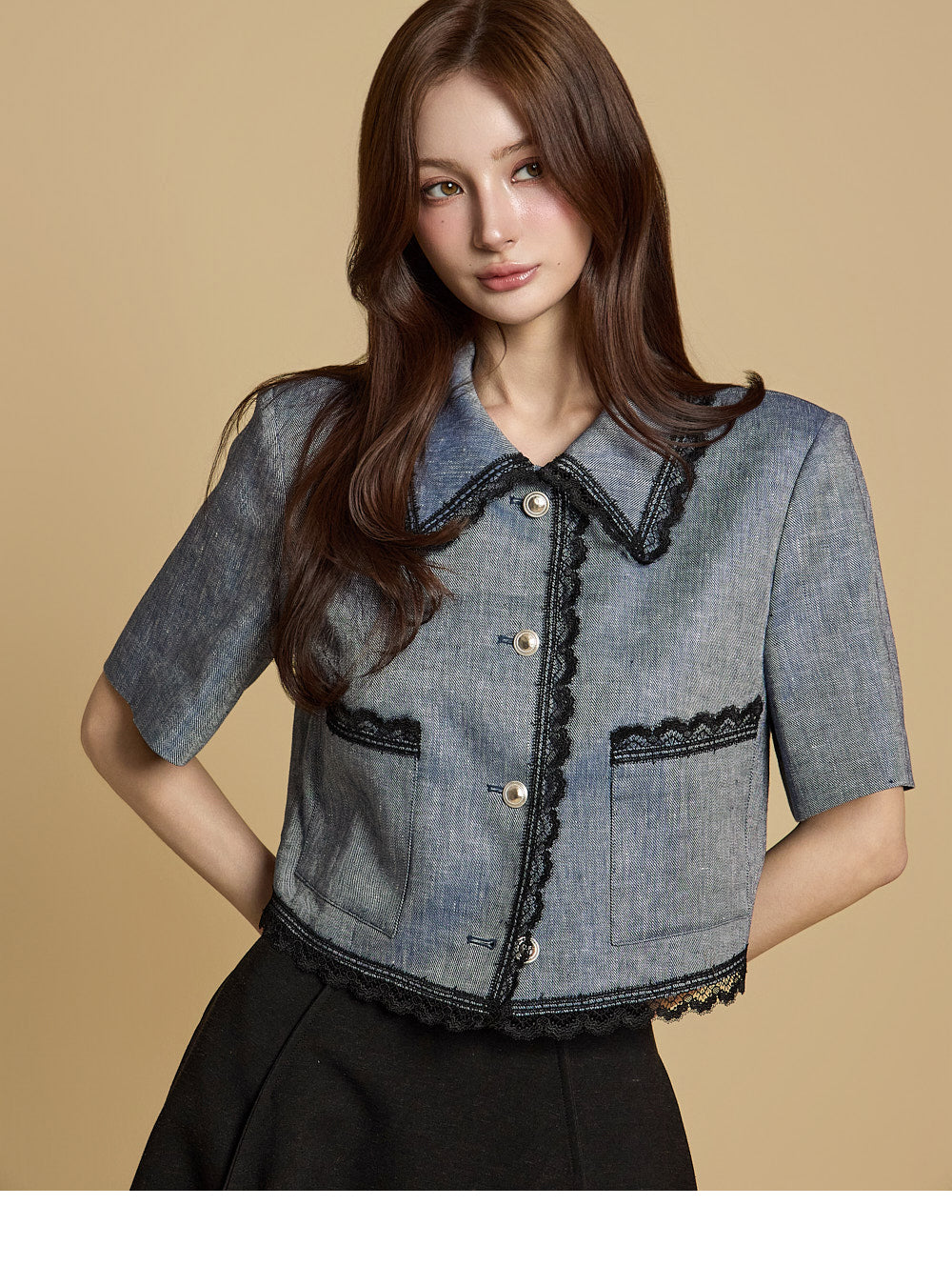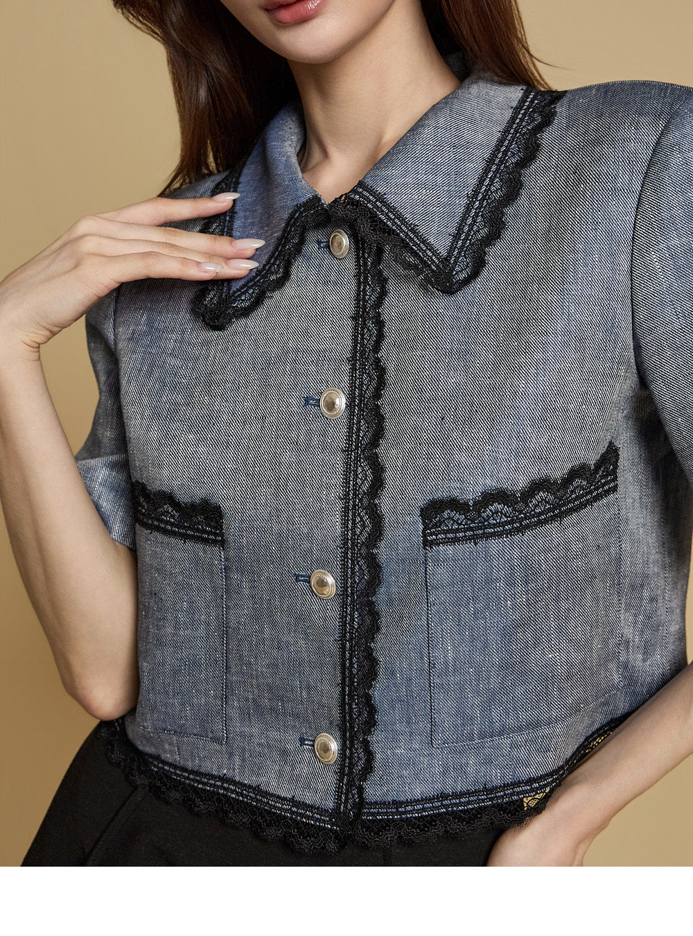 这是一款休闲的日常亚麻牛仔夹克,由 100% 亚麻制成,