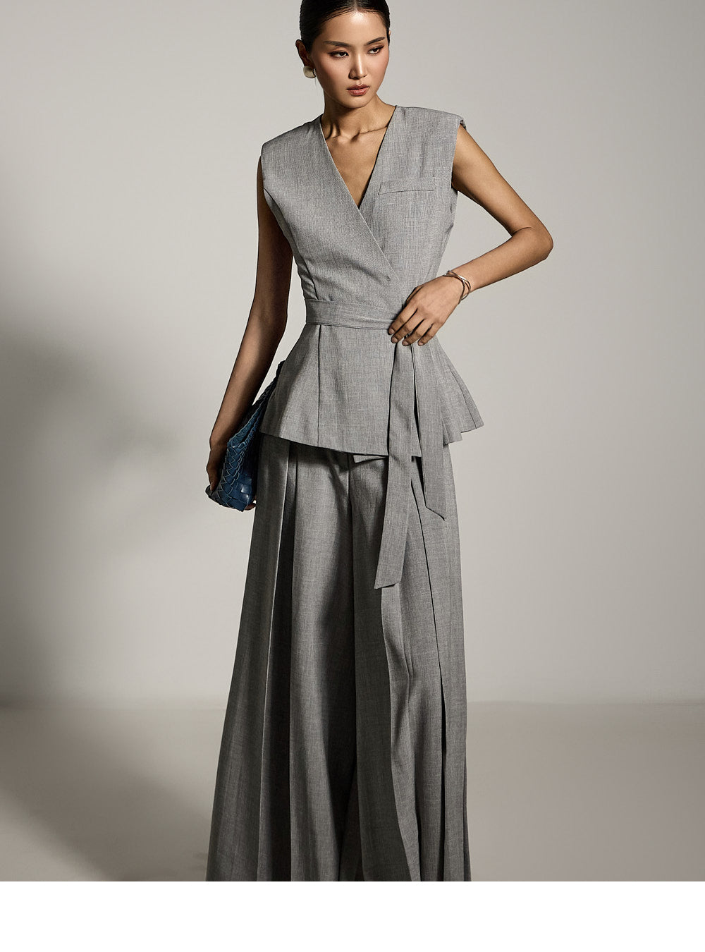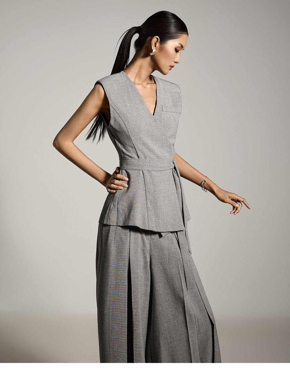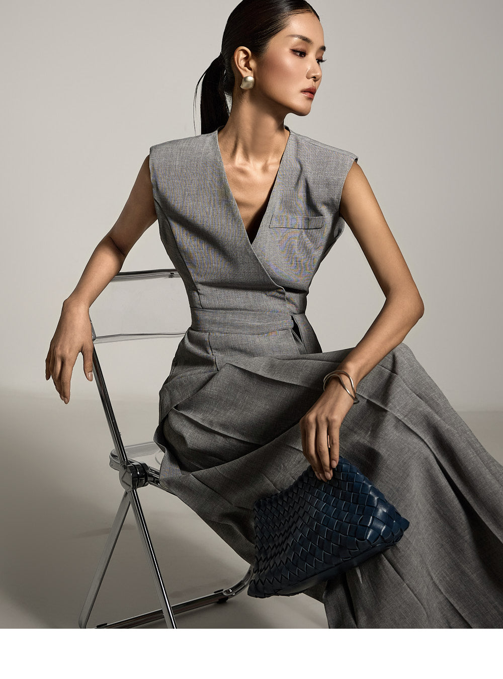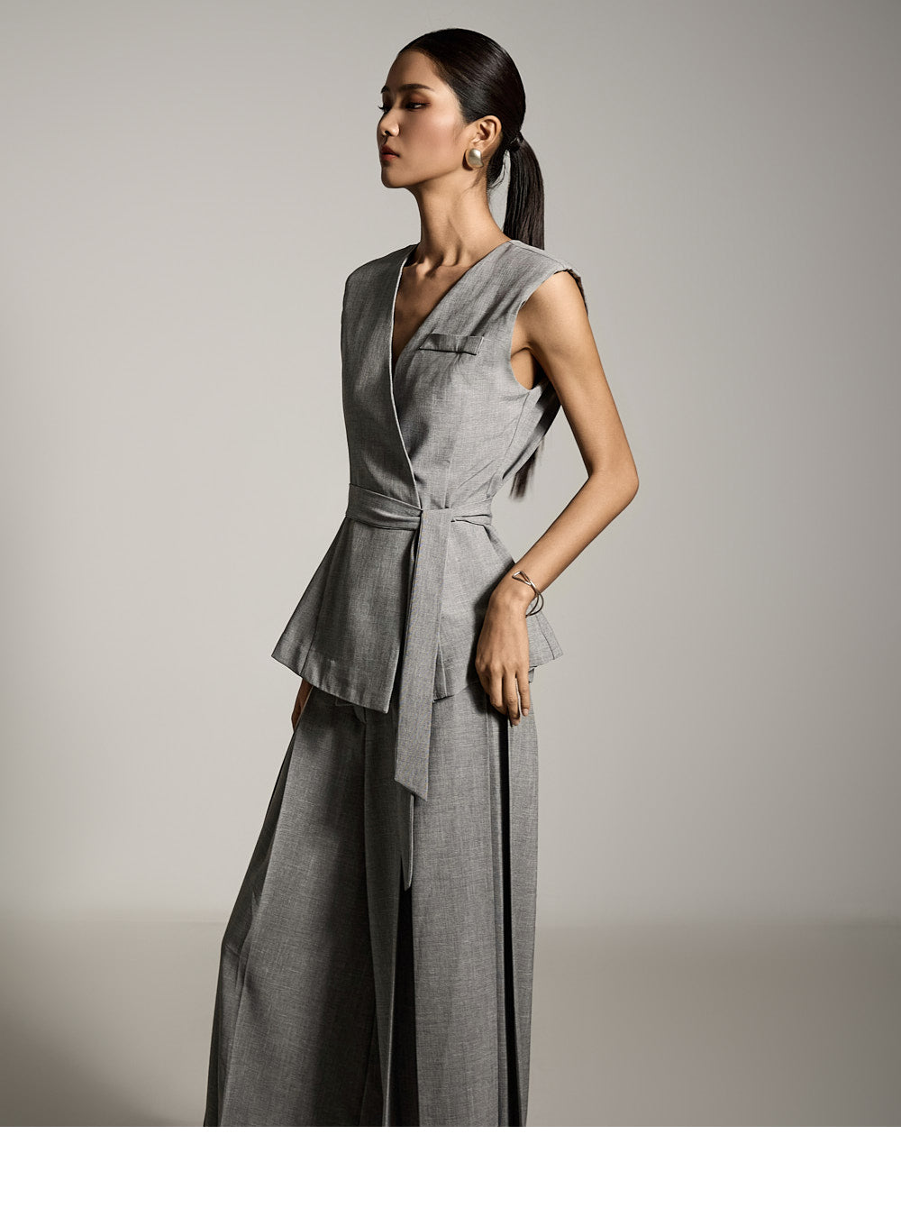 模特身高 173 厘米,穿着均码的灰色衣服。