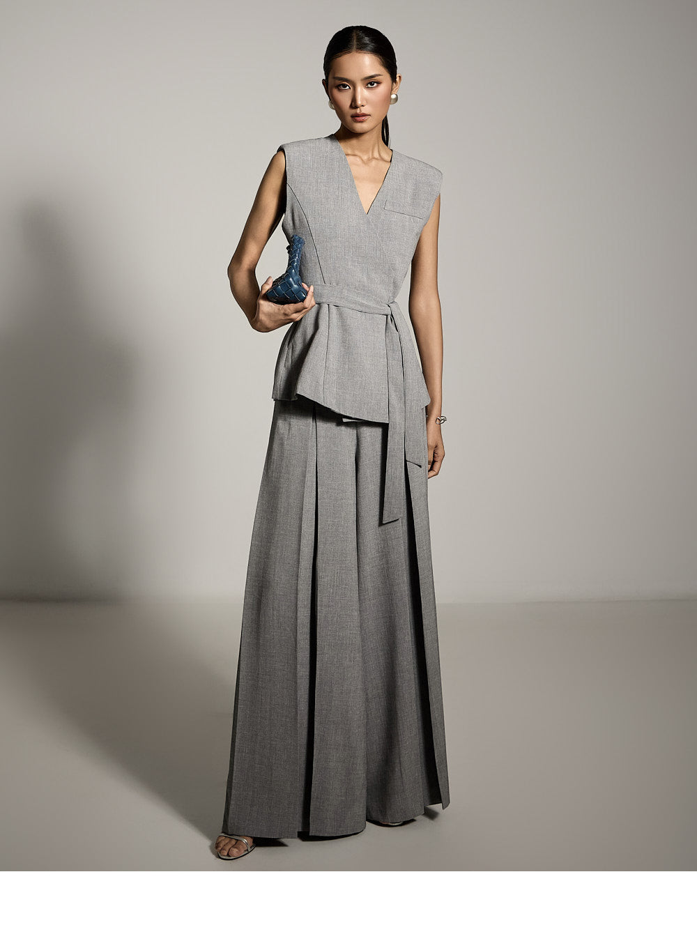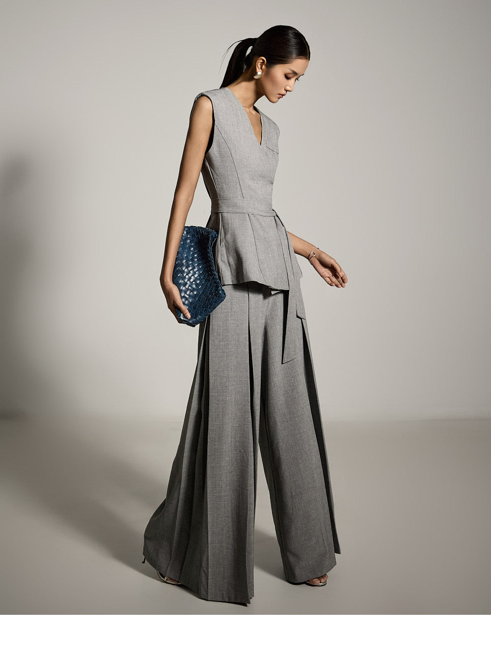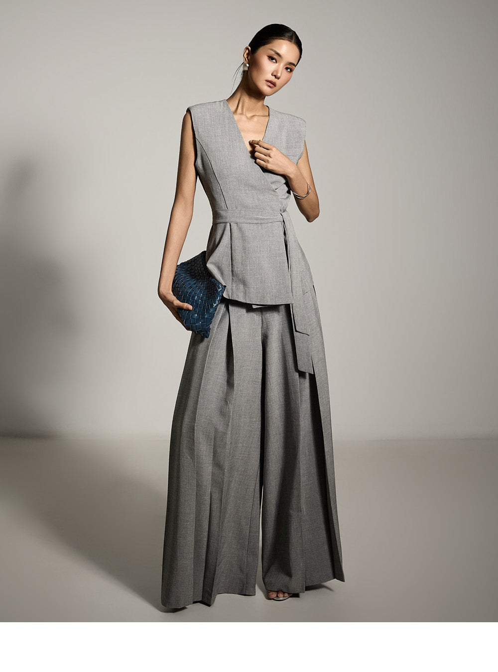 模特身高 173 厘米,穿着均码的灰色衣服。