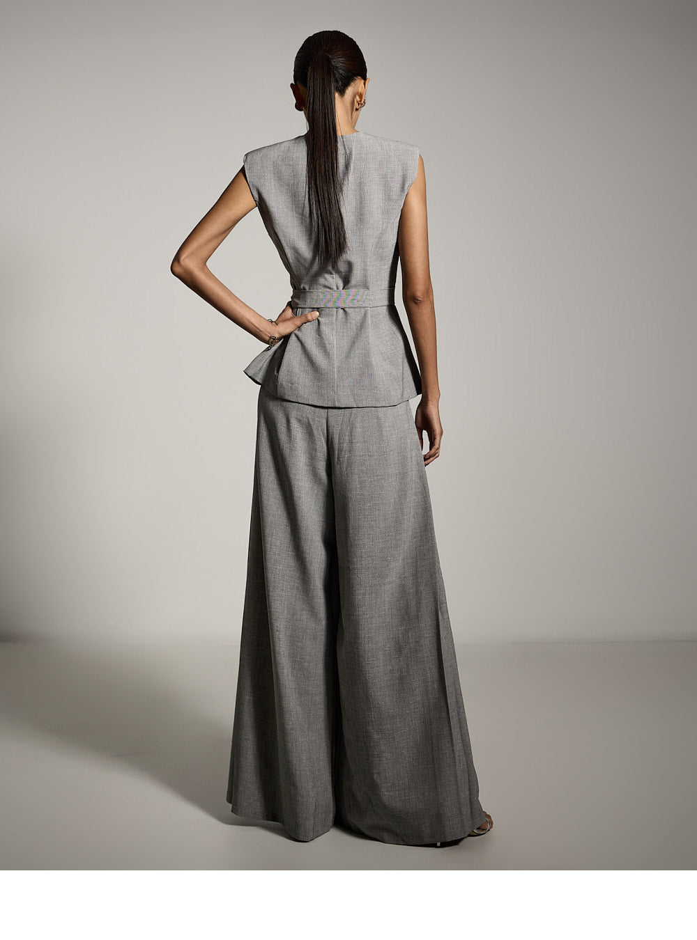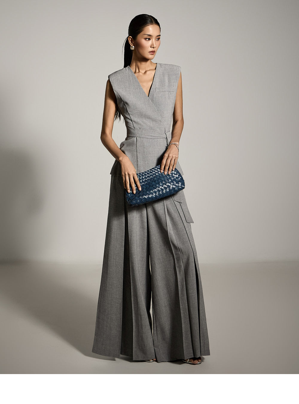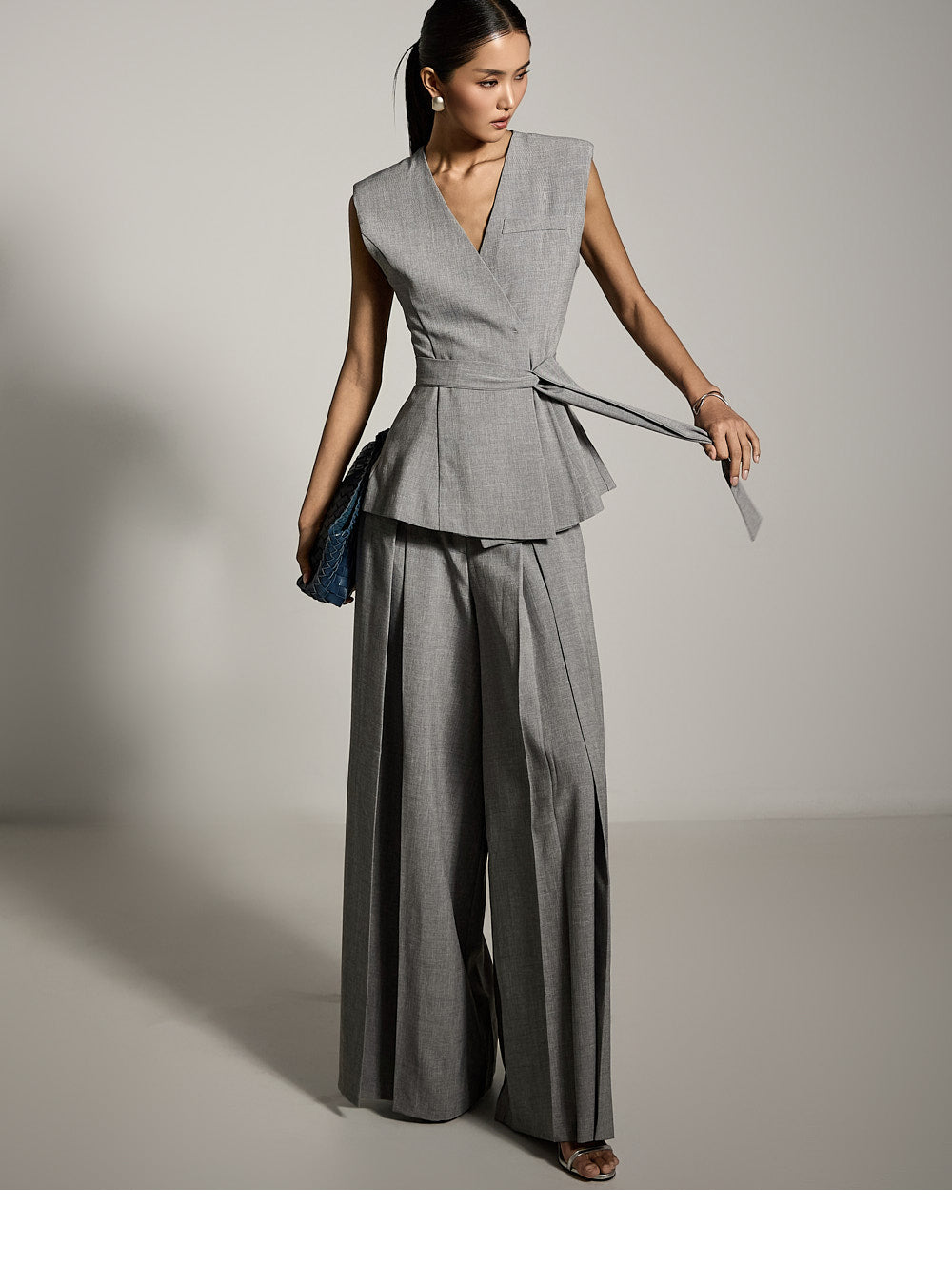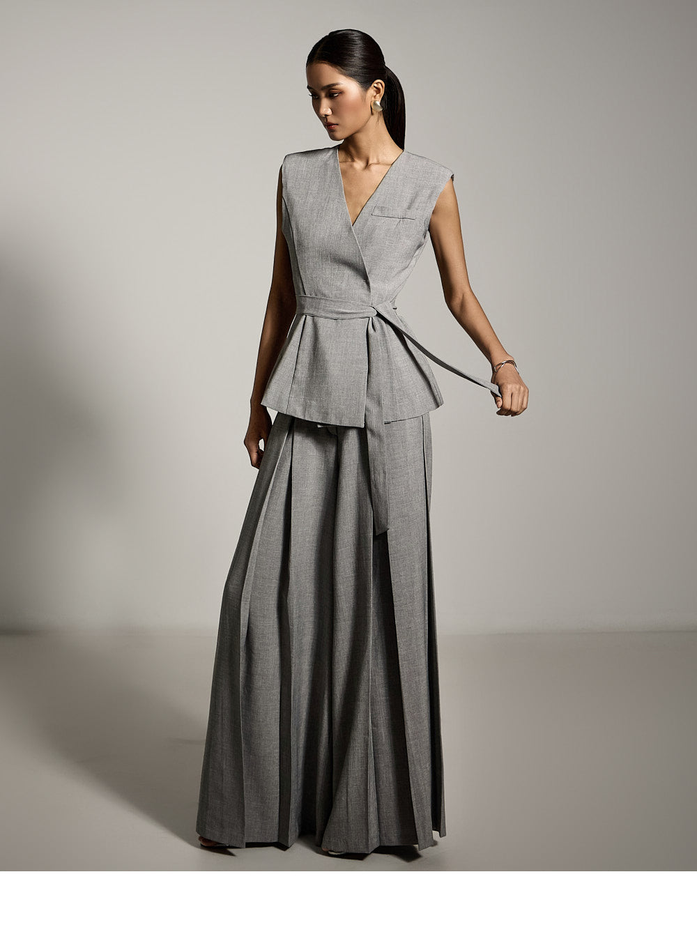 模特身高 173 厘米,穿着均码的灰色衣服。