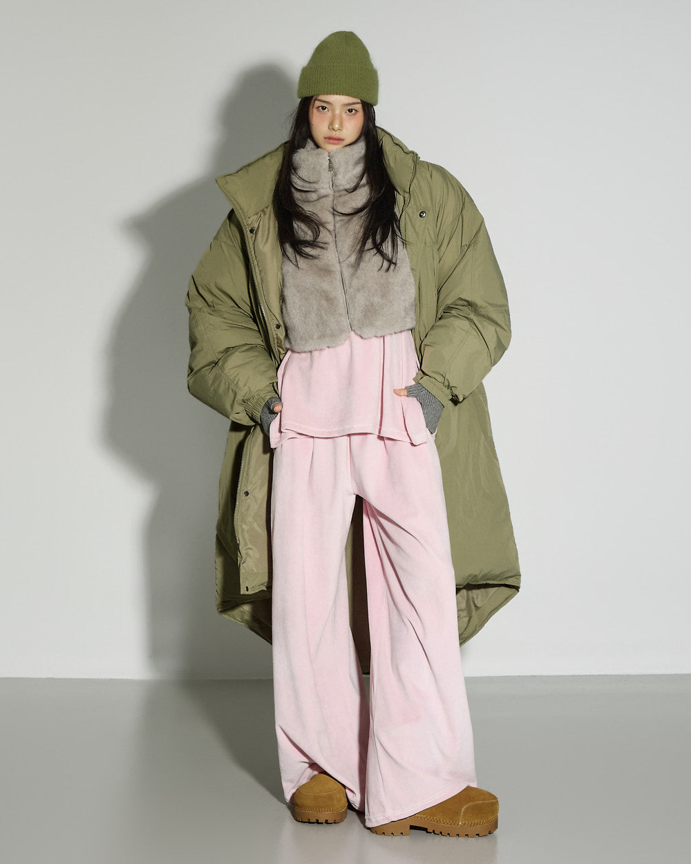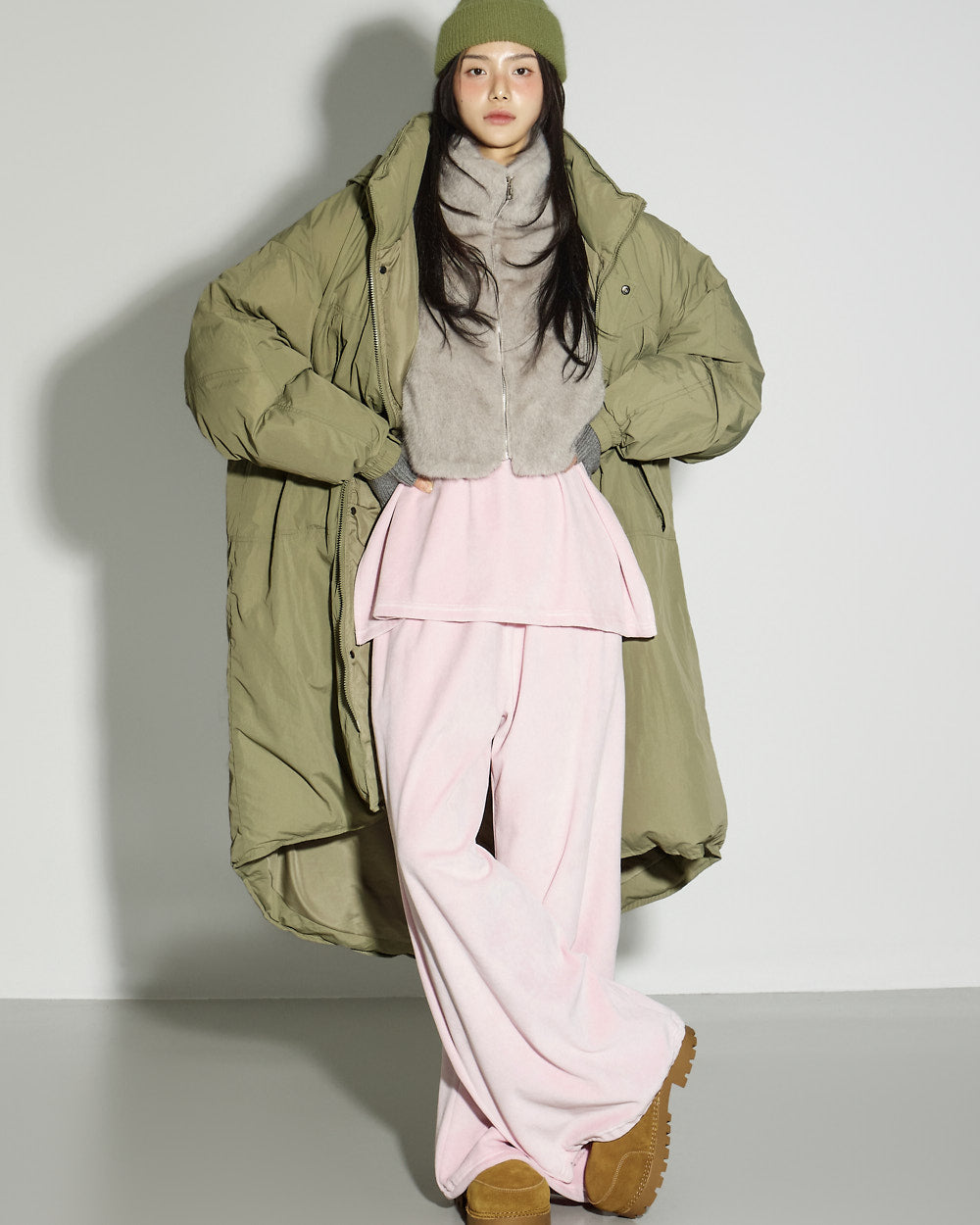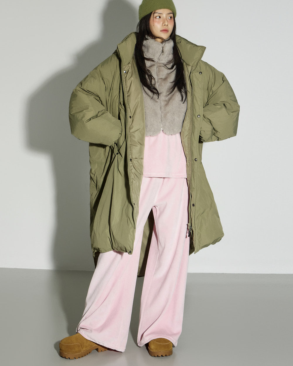 Model is 171cm tall and is wearing size ONE in the KHAKI color.