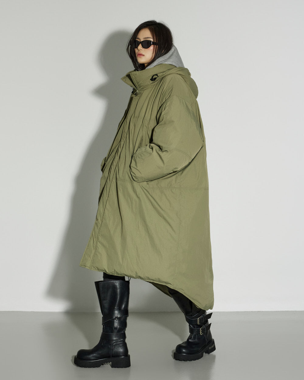 The loose-fitting silhouette creates a natural look.