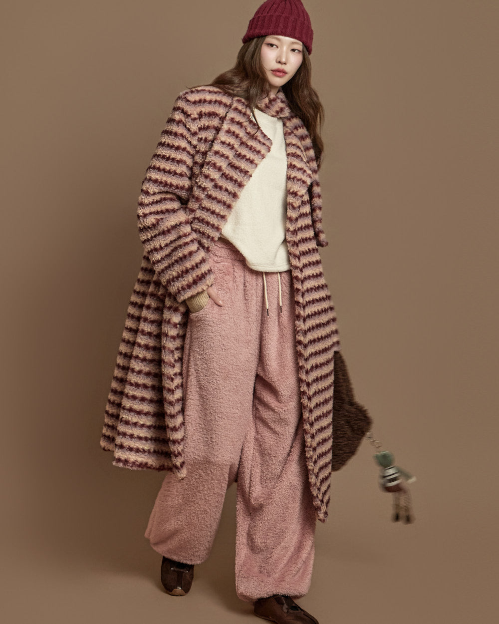 This strap set teddy coat exudes a lovely, casual vibe.