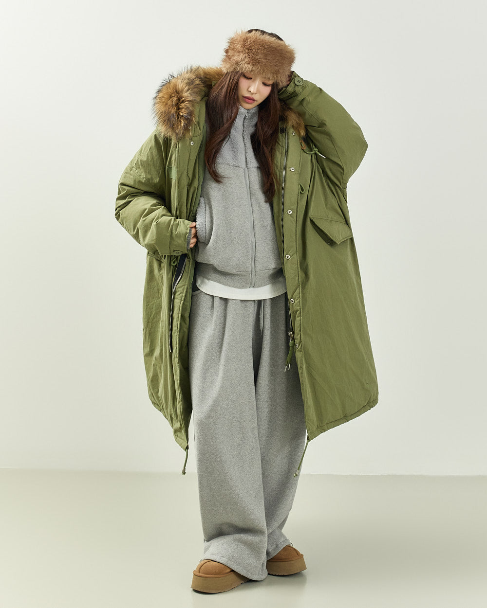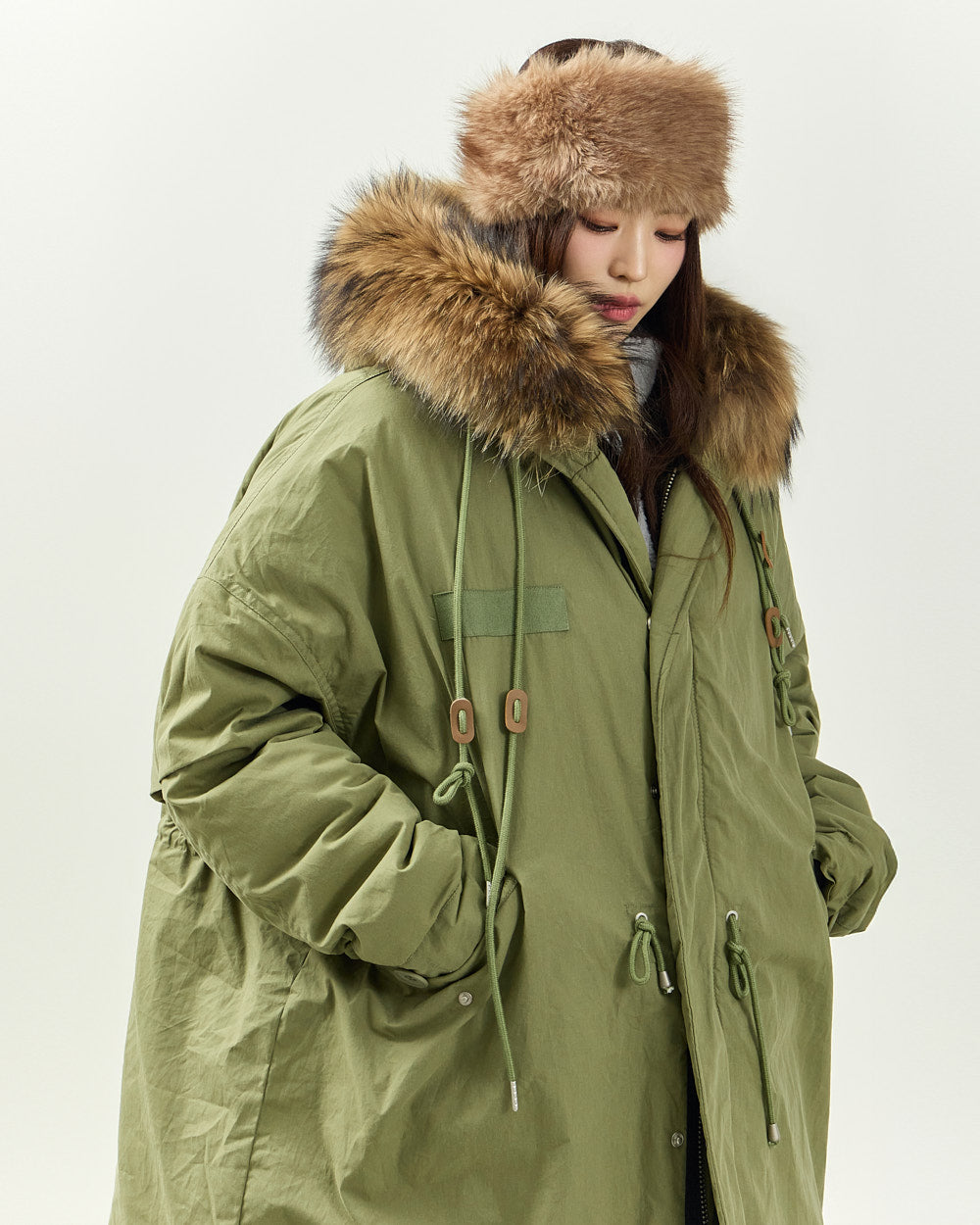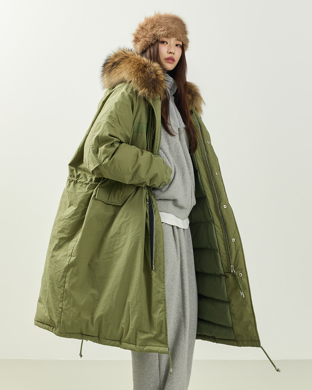 This casual, real raccoon duck down padding is perfect for everyday winter wear.