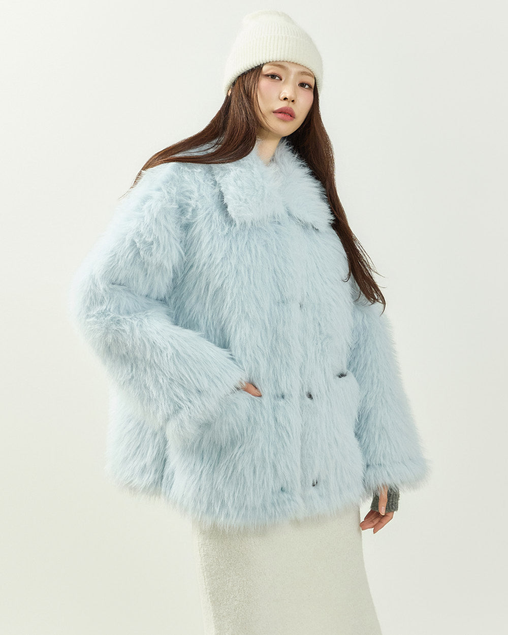The powdery color and rich, long-haired fur texture combine to create a
