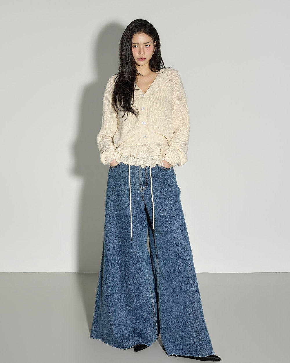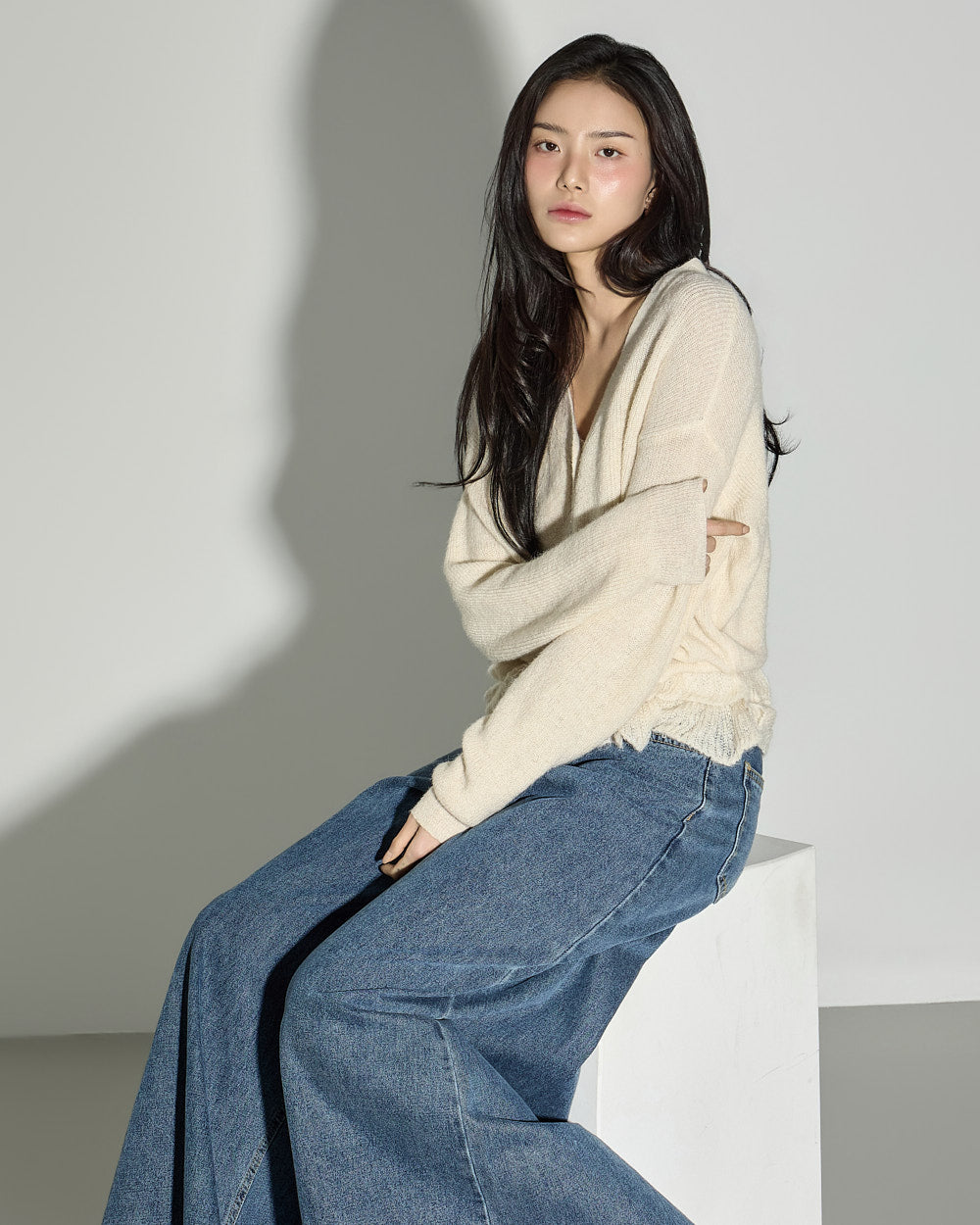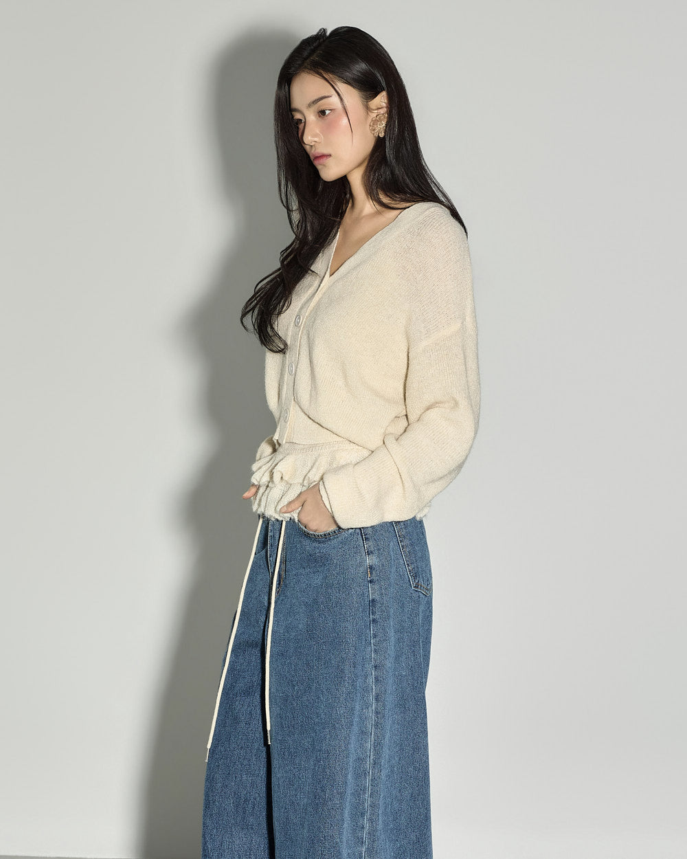 The loose fit and V-neck cardigan design