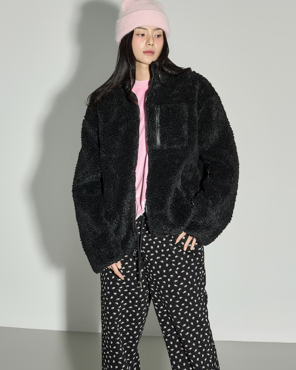 This reversible fleece pocket jumper has a casual vibe.