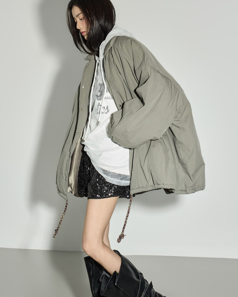 The elasticated sleeve cuffs and drawstring hem allow for an adjustable fit,