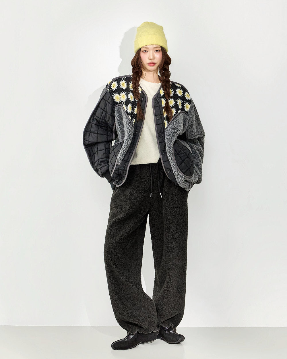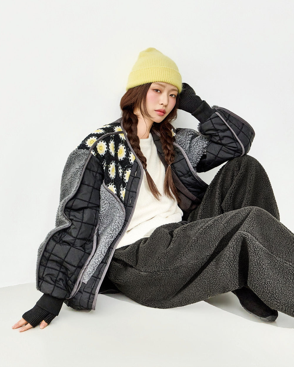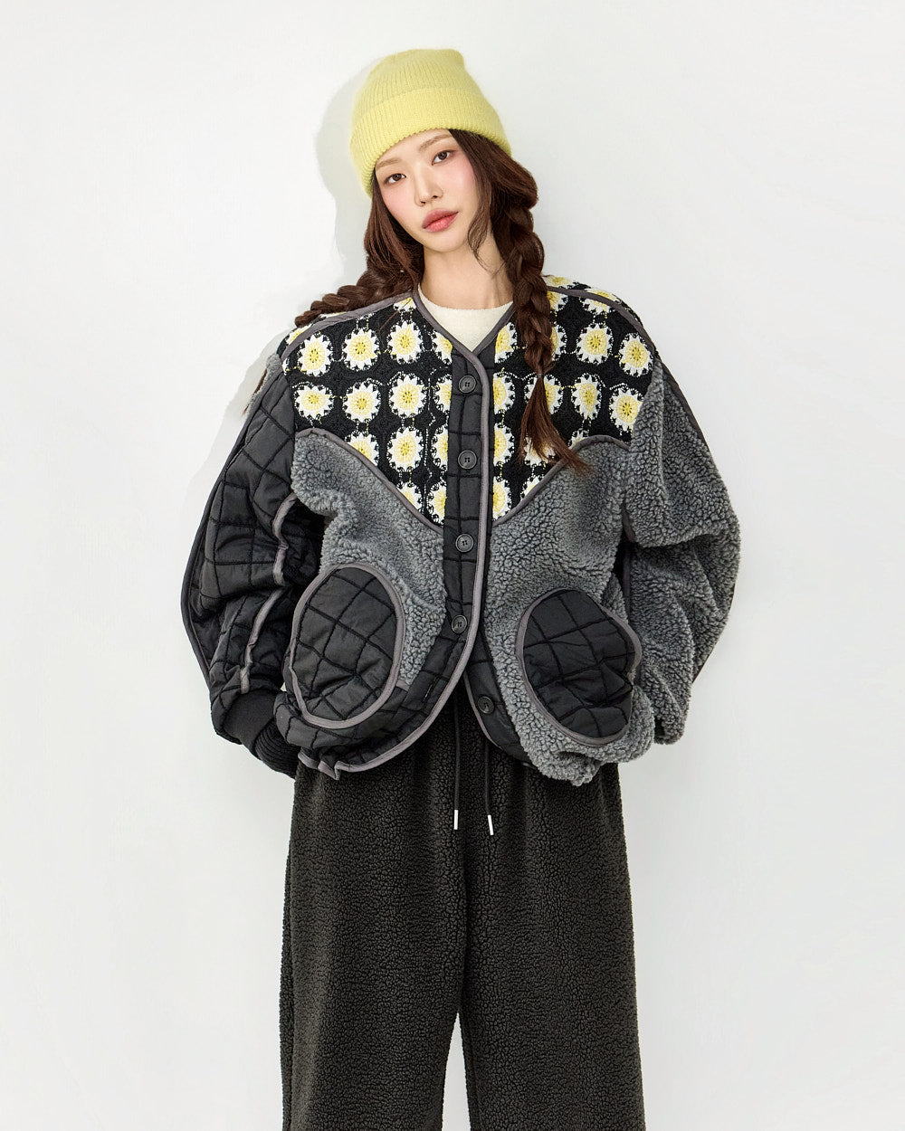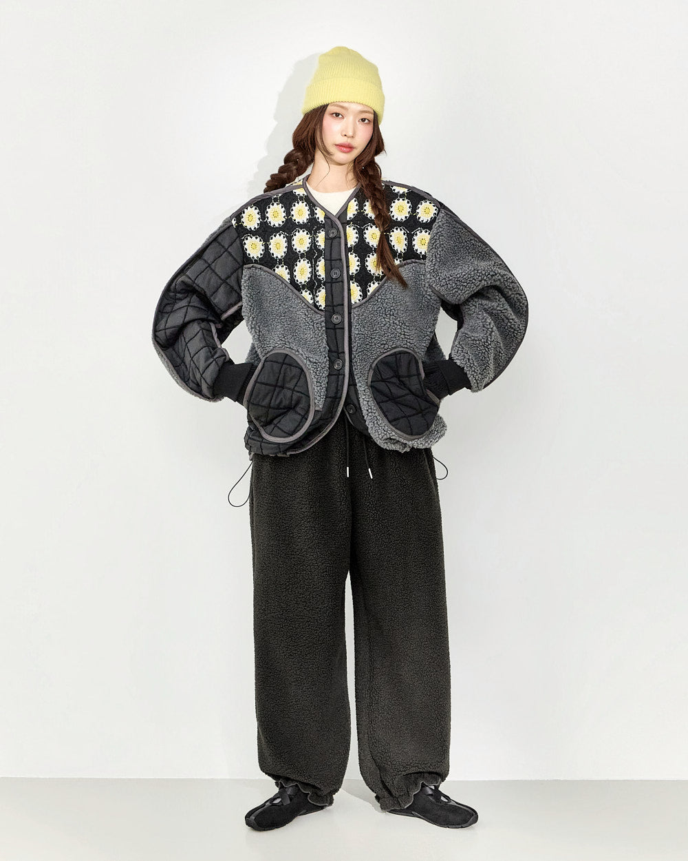 The design combines quilting and fleece,