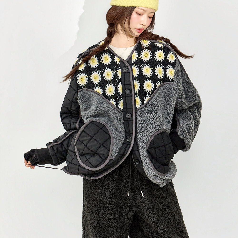 This outerwear piece features a unique mix of materials.