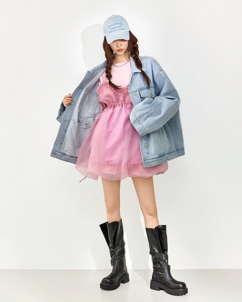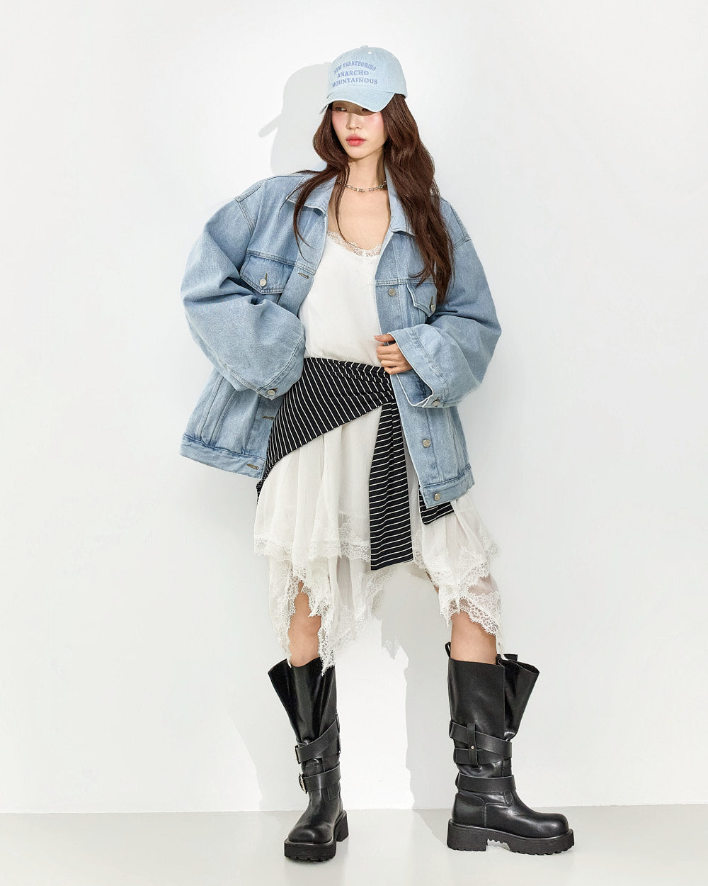 The 171cm model is wearing size ONE in LIGHT BLUE.