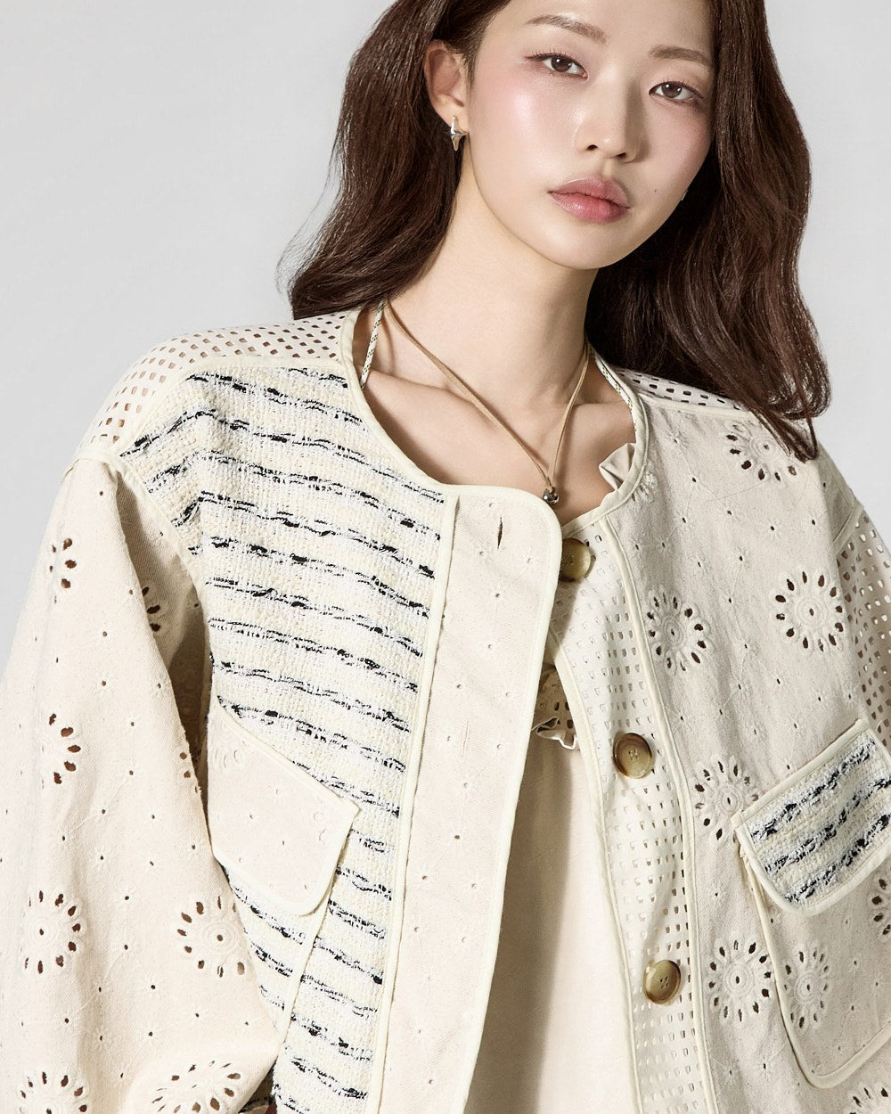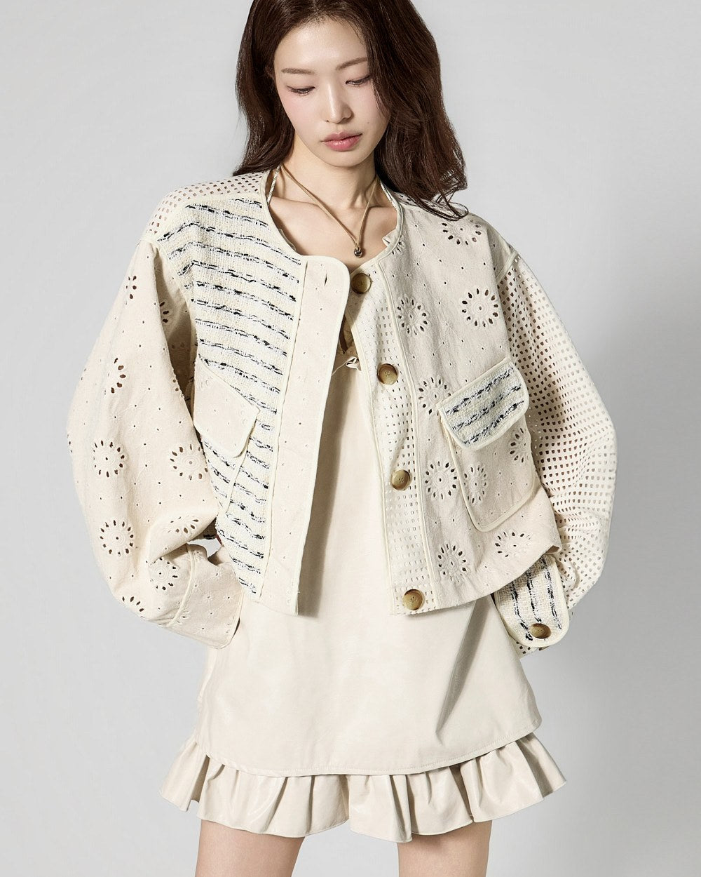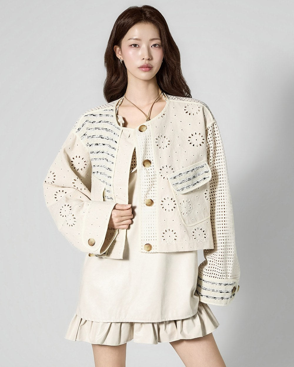This is a perforated jacket with a unique vibe.