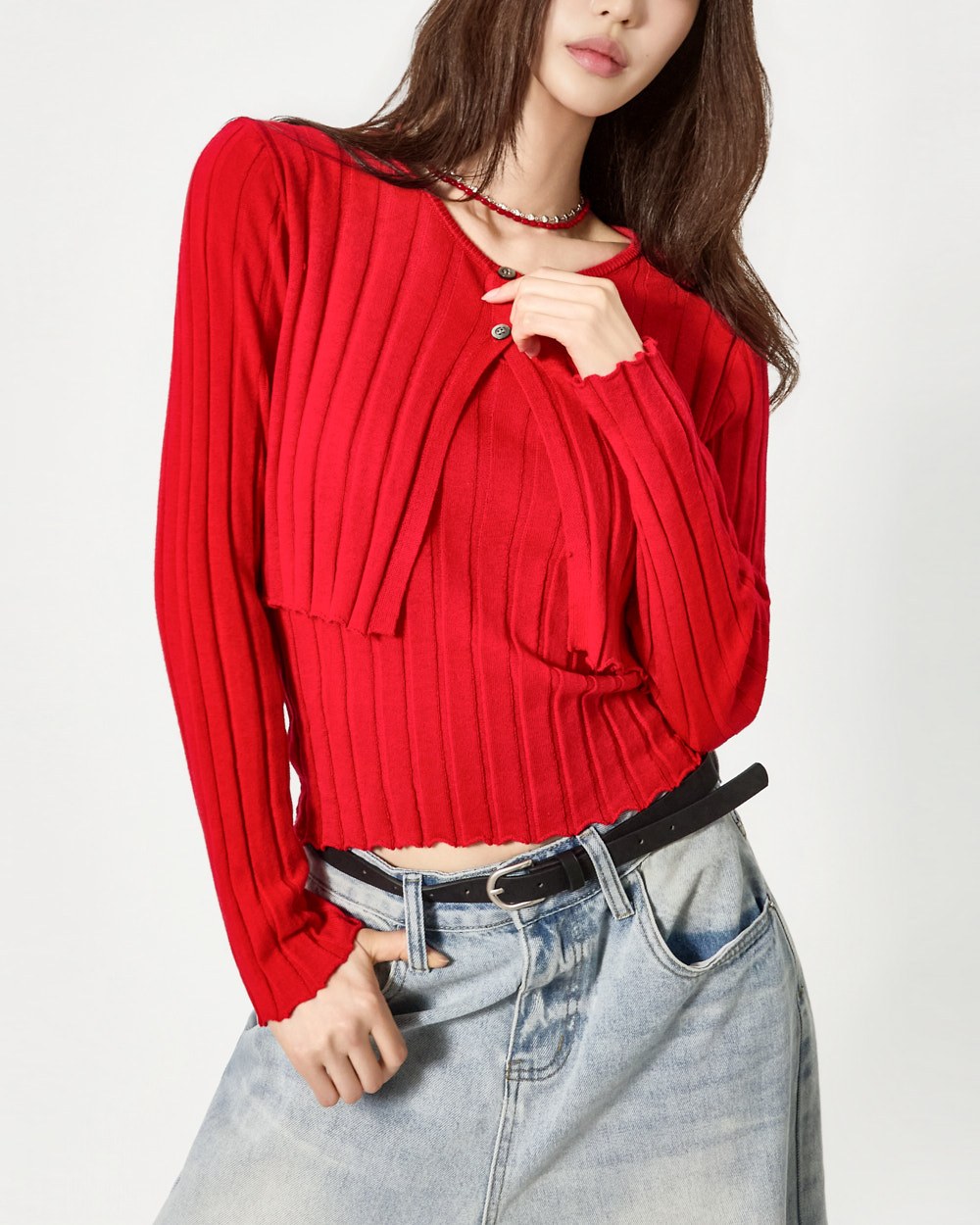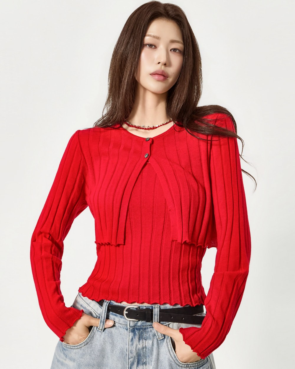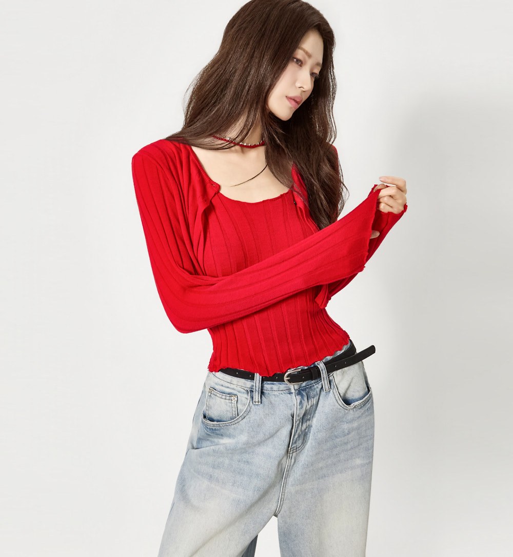 由于套装包含无袖上衣和开衫,