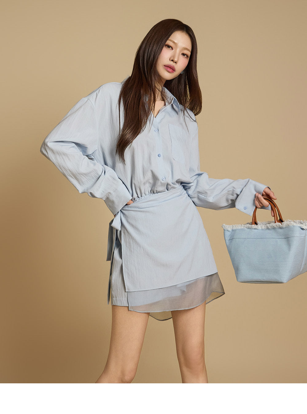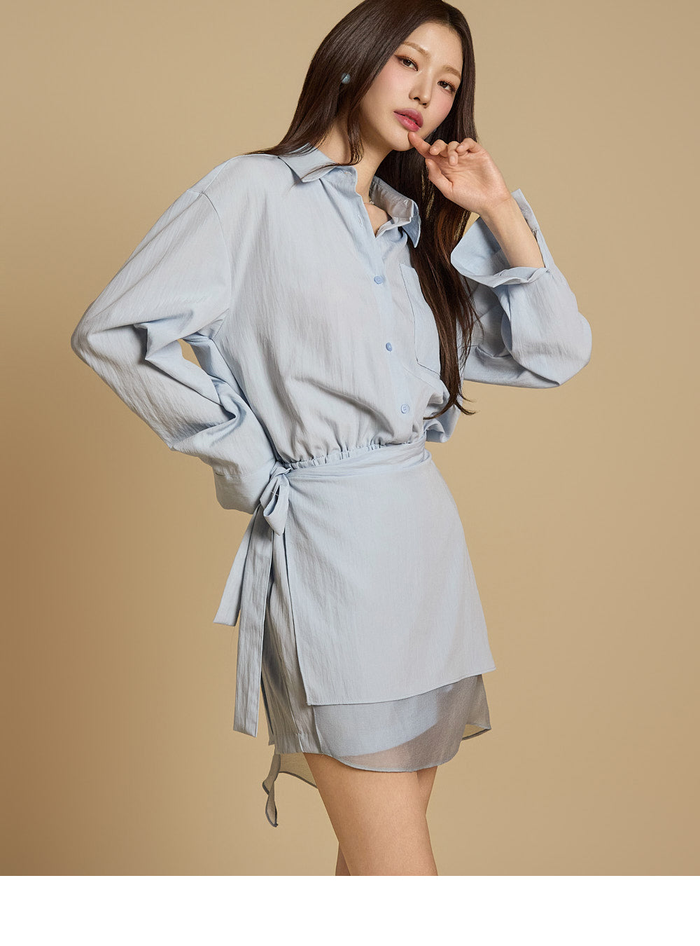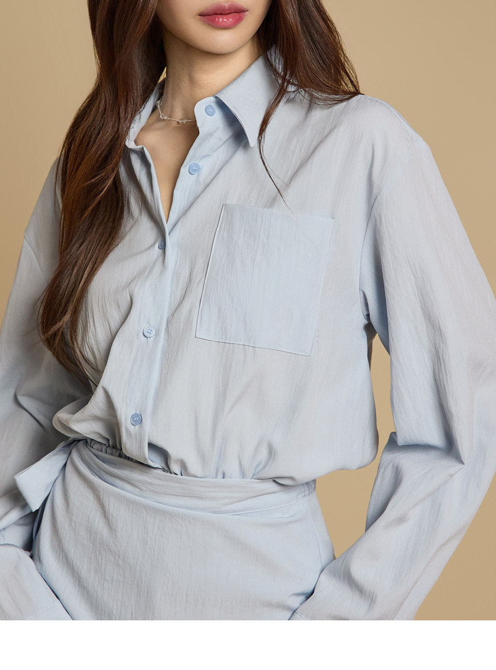 衬衫式上衣搭配裹身裙设计,