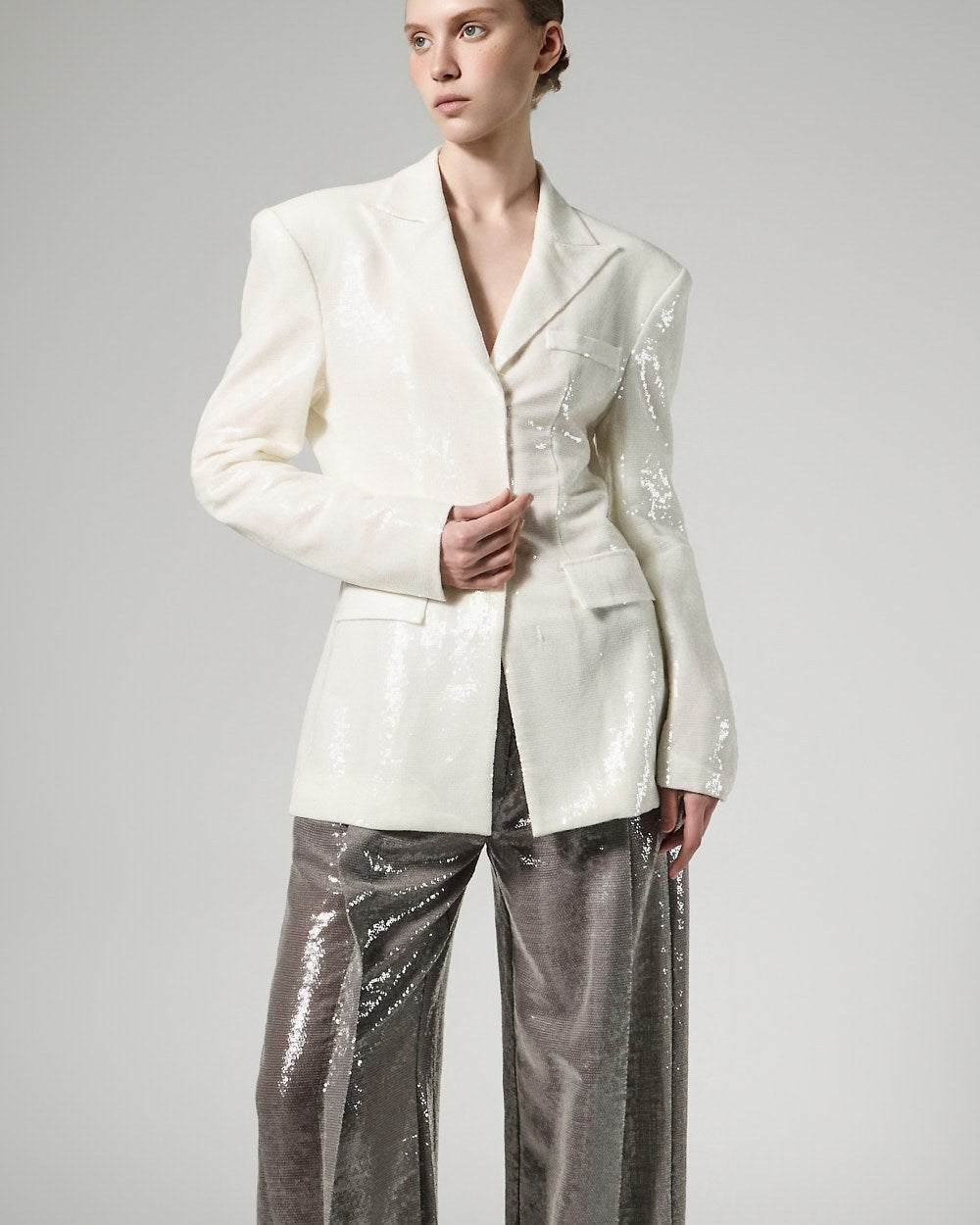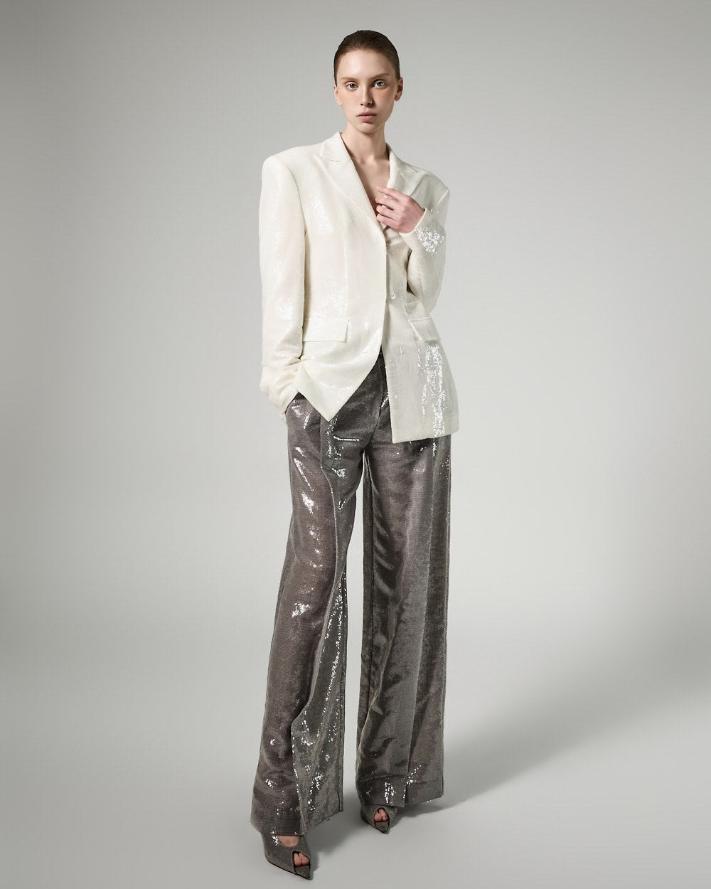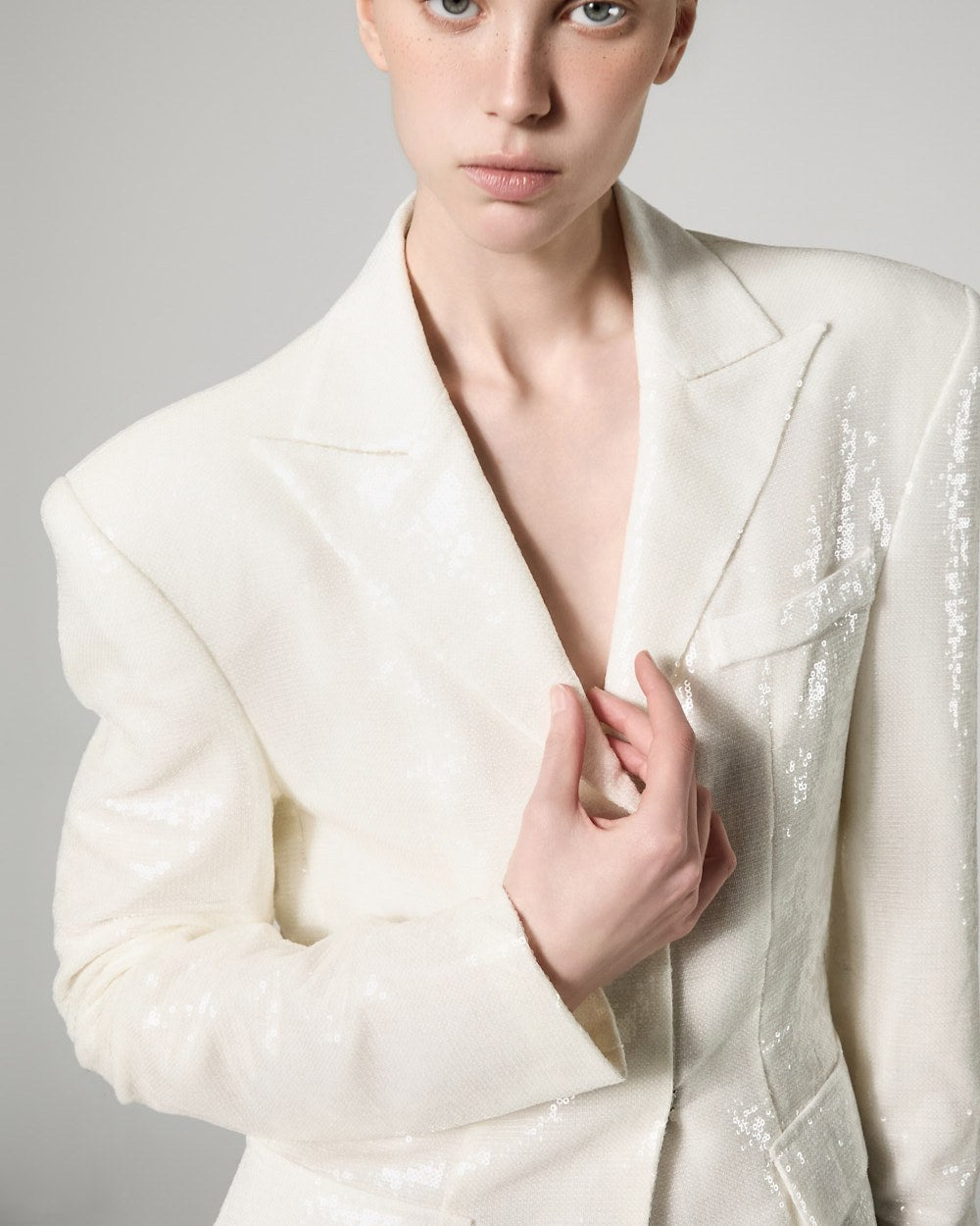 精致的亮片装饰覆盖整个面料,