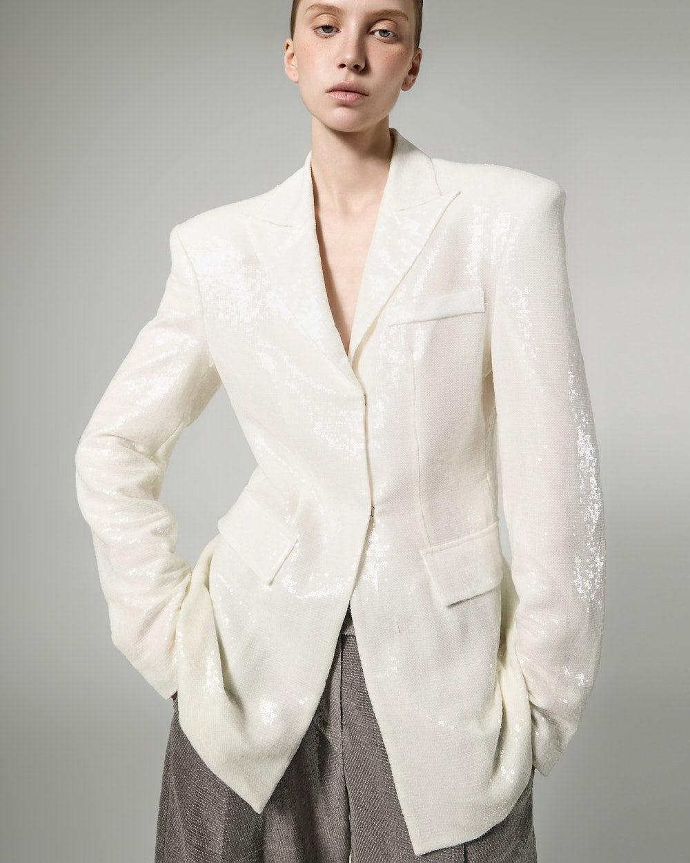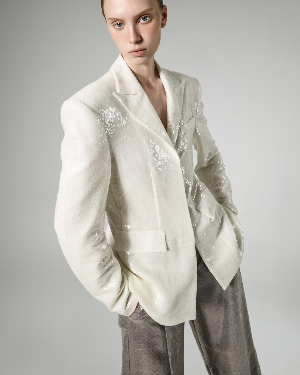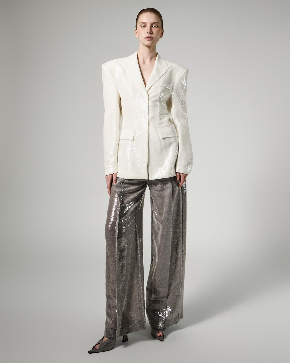 精致的亮片装饰覆盖整个面料,