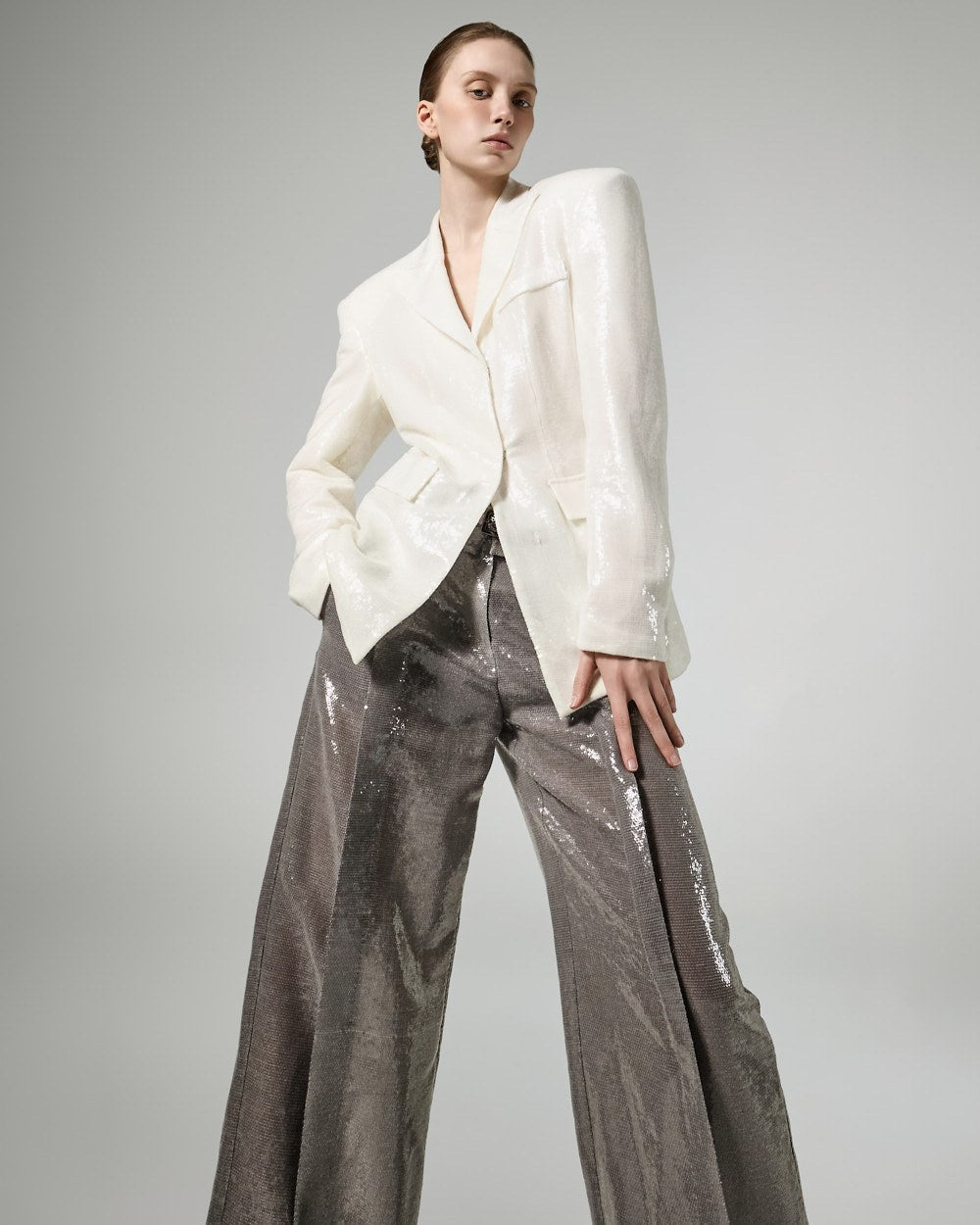 这些亮片阔腿裤拥有