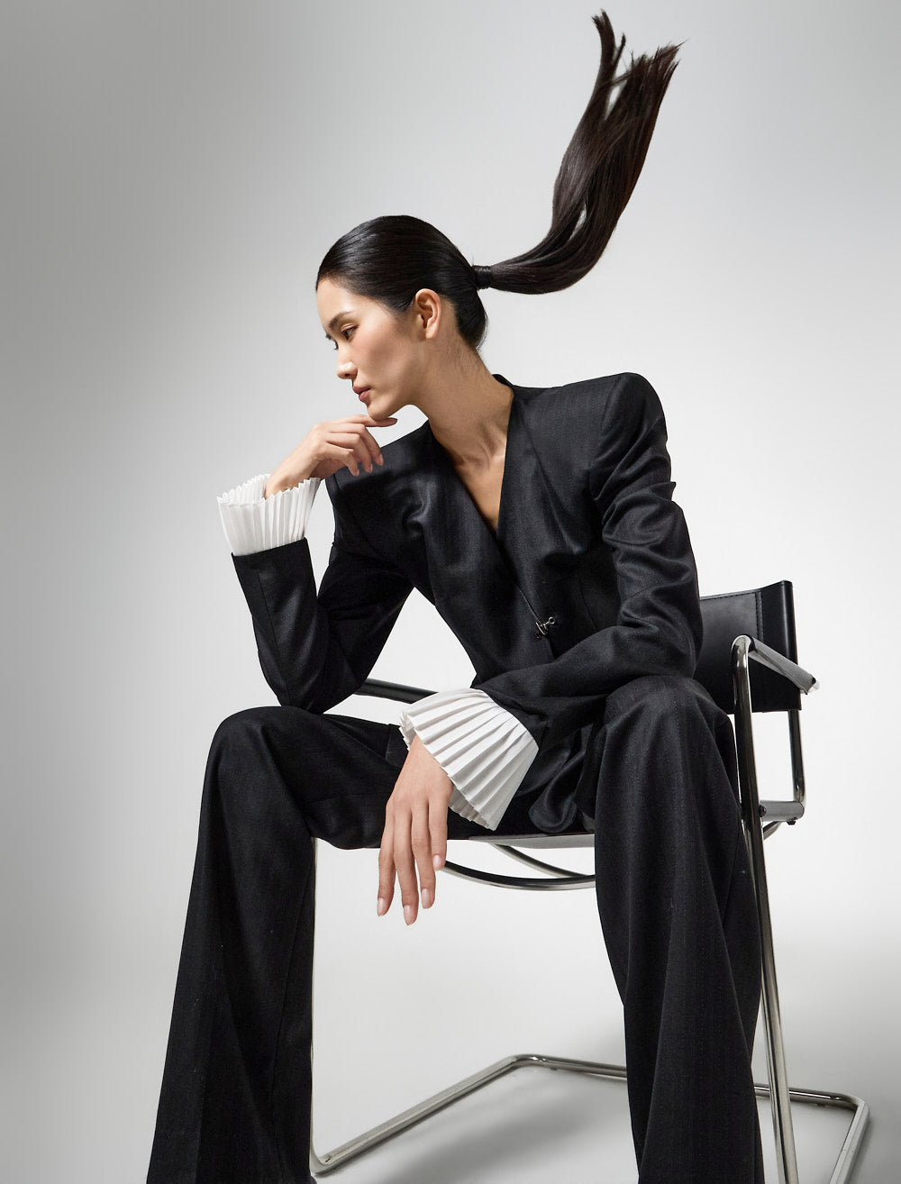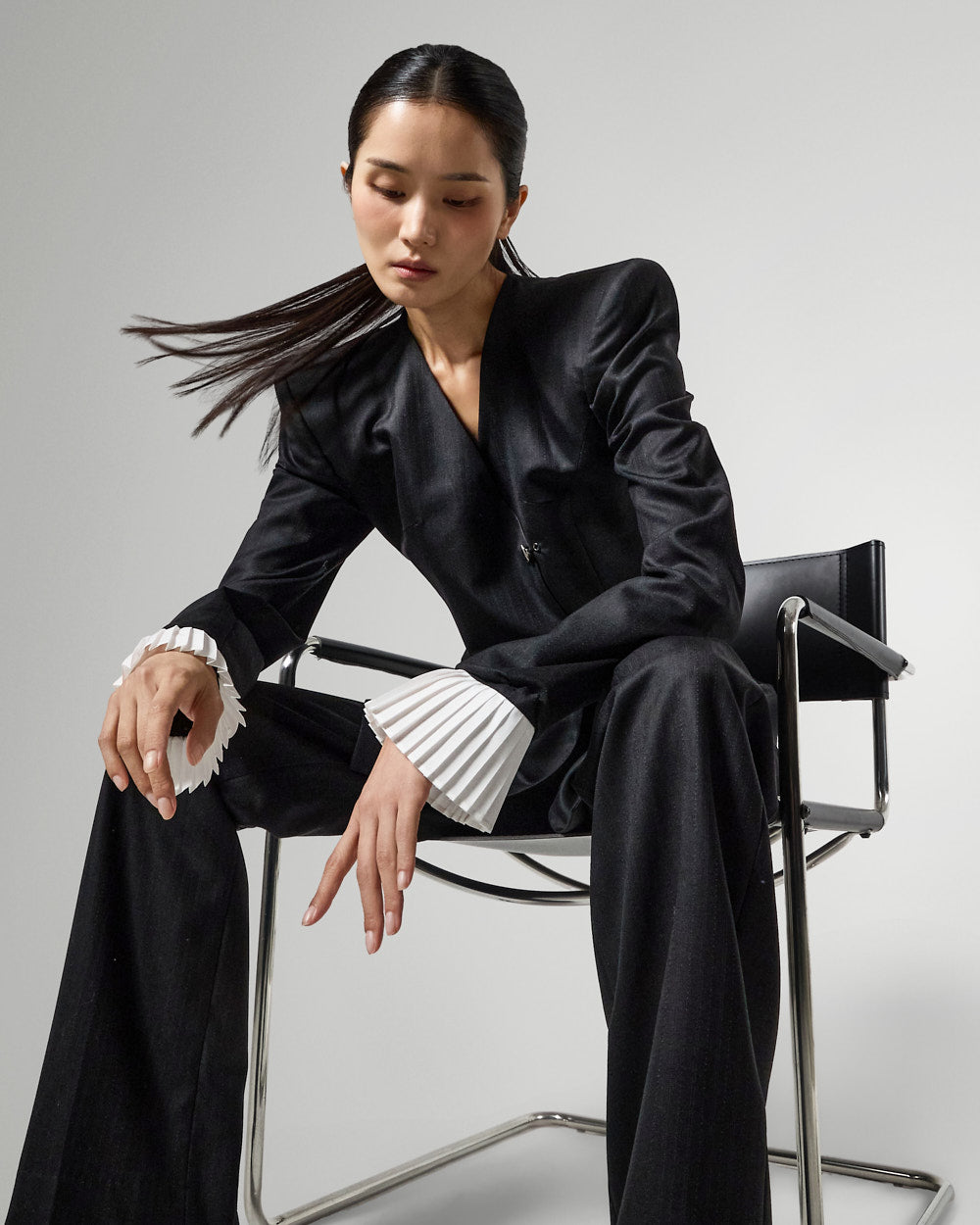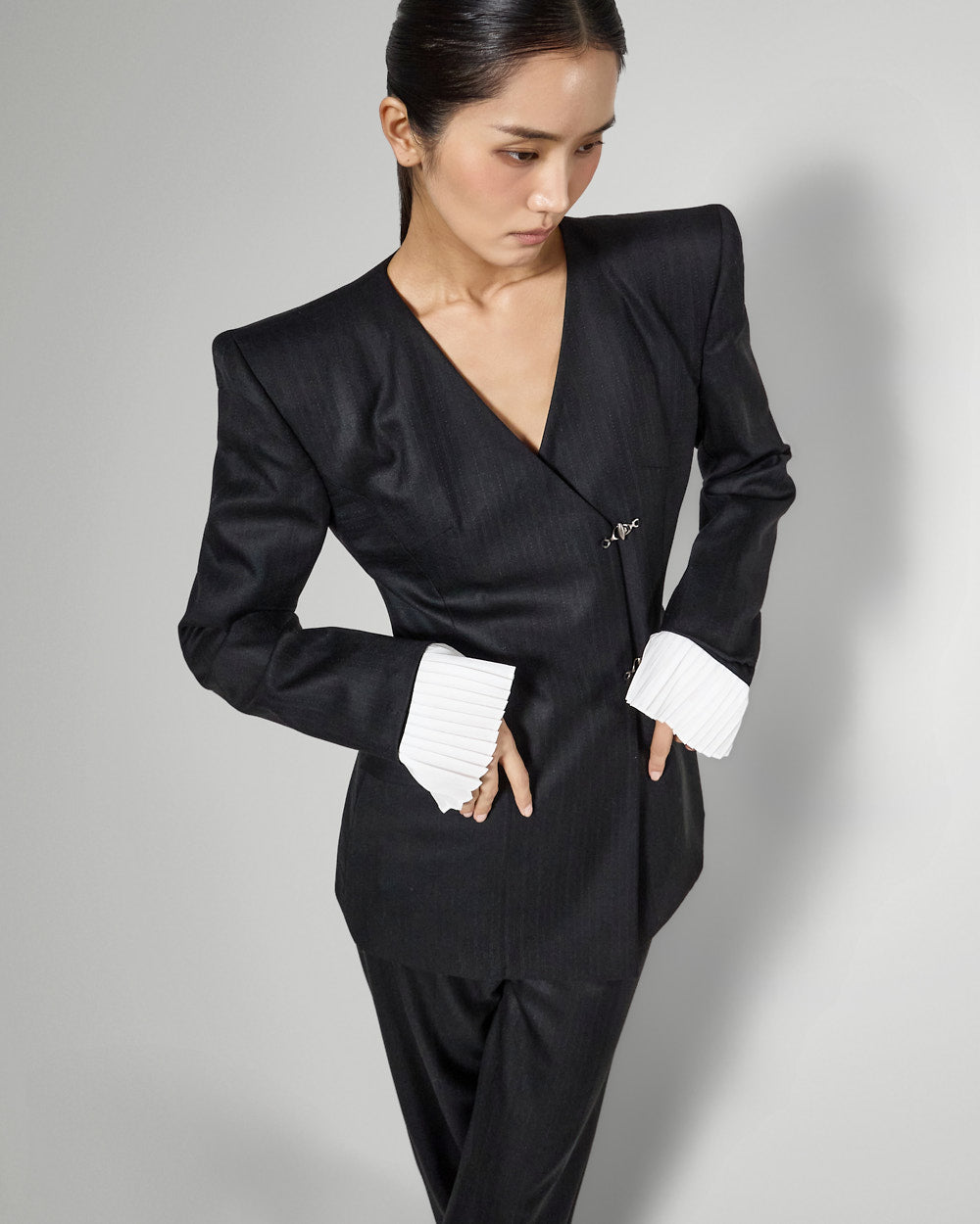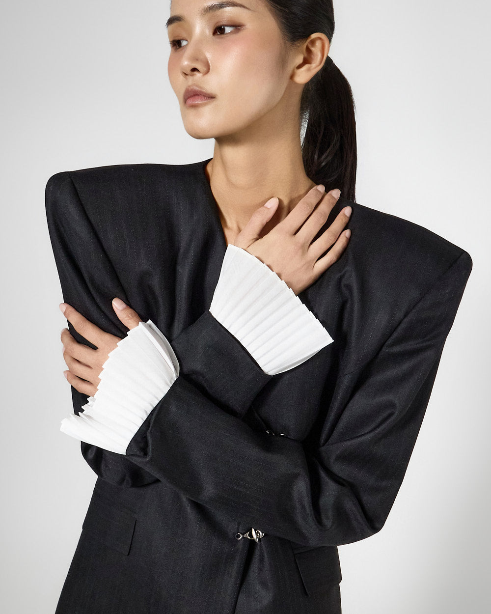 袖口的褶边增添了女性气息,|