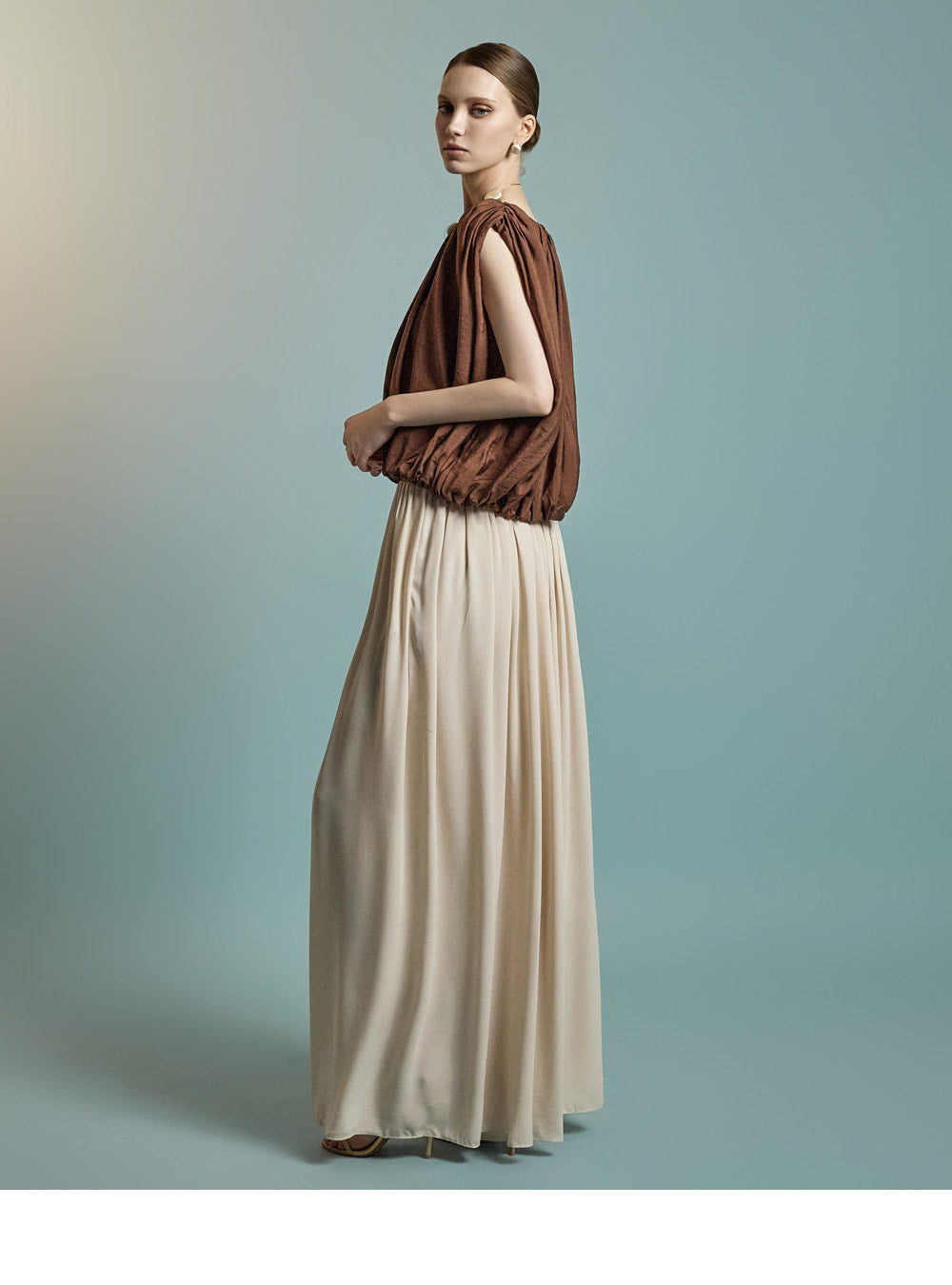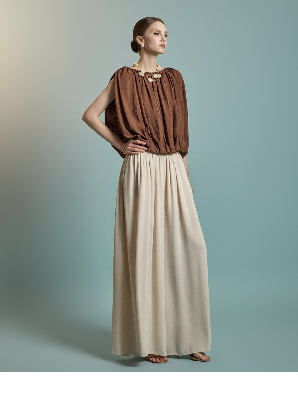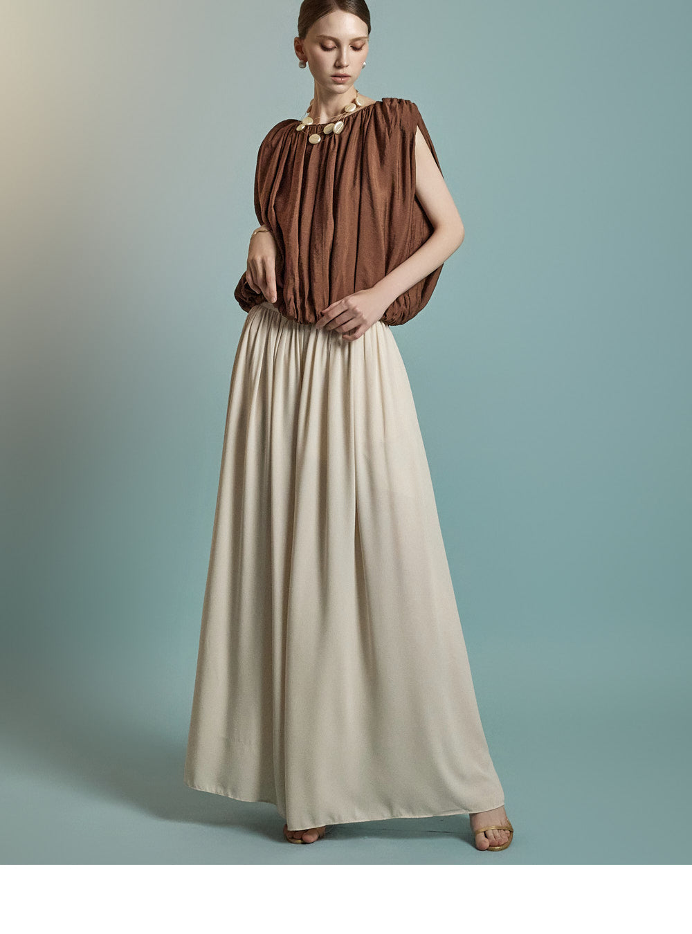 The loose wide-leg silhouette creates a graceful and stylish outline,