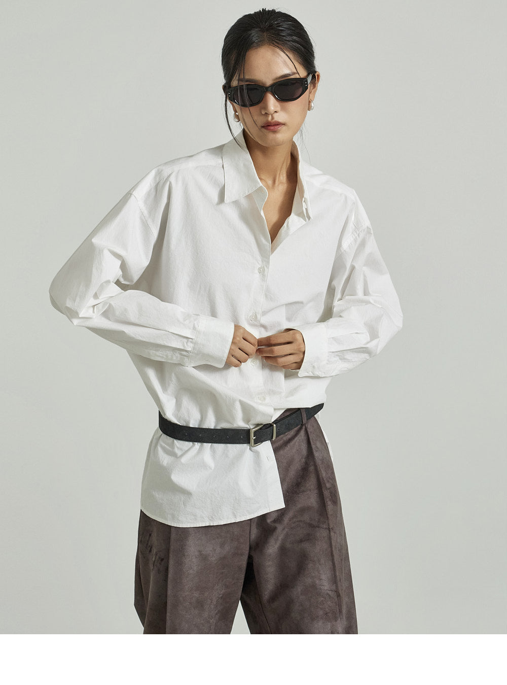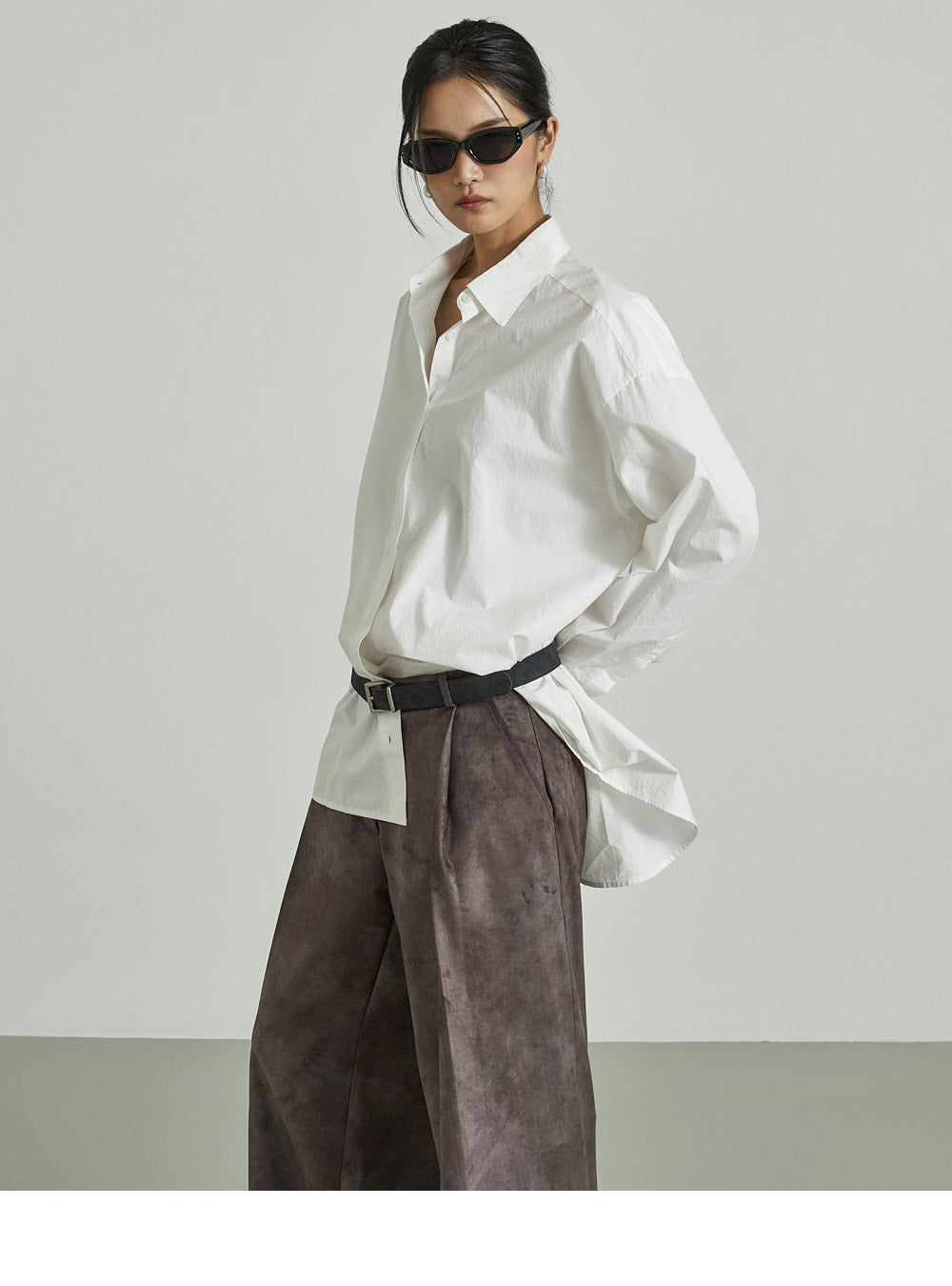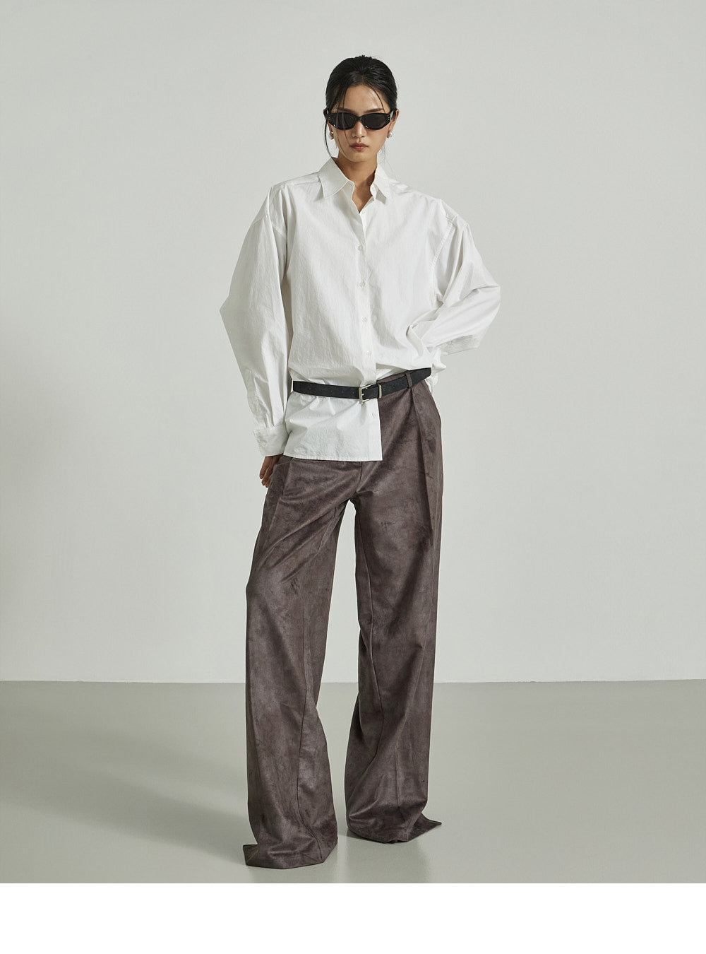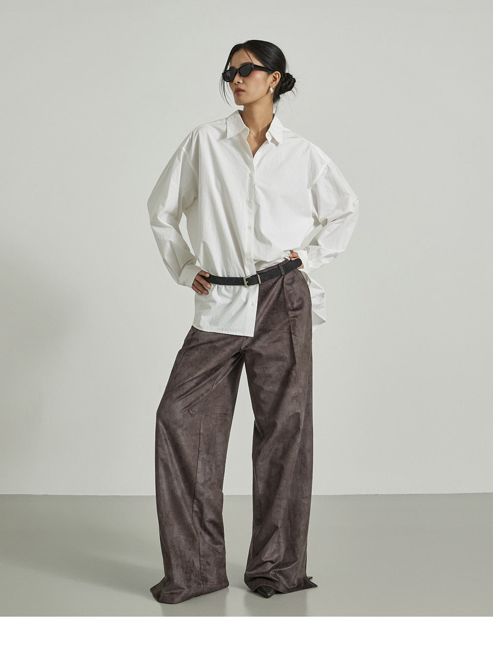The long, wide-fitting silhouette creates the illusion of longer legs.