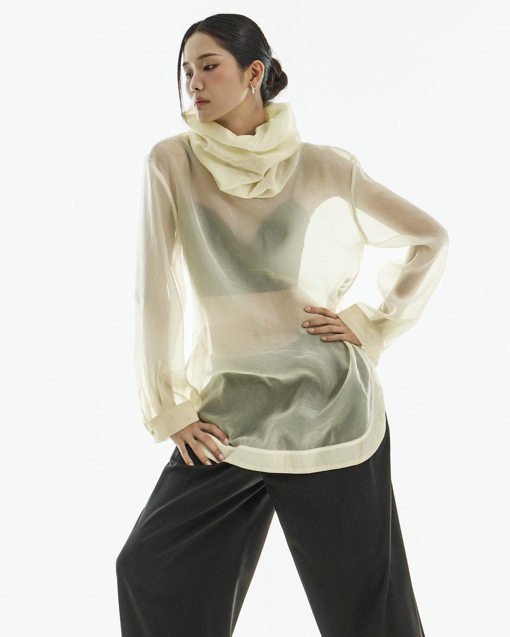 Model is 173cm tall and wearing size S in BLACK.