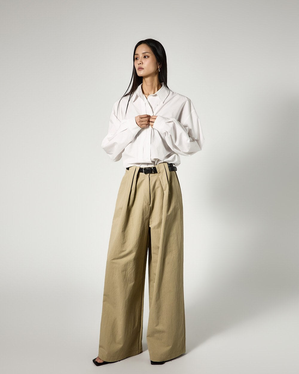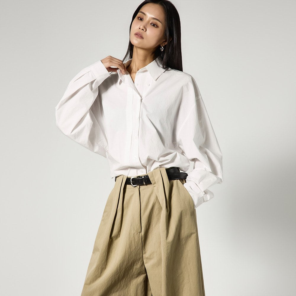 These are wide pintuck pants with a daily vibe.