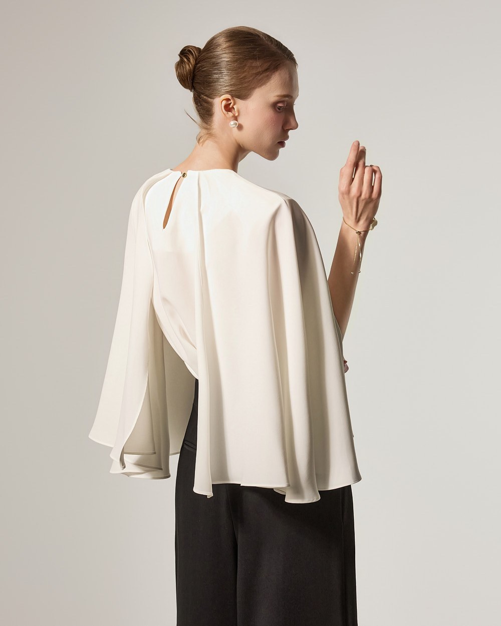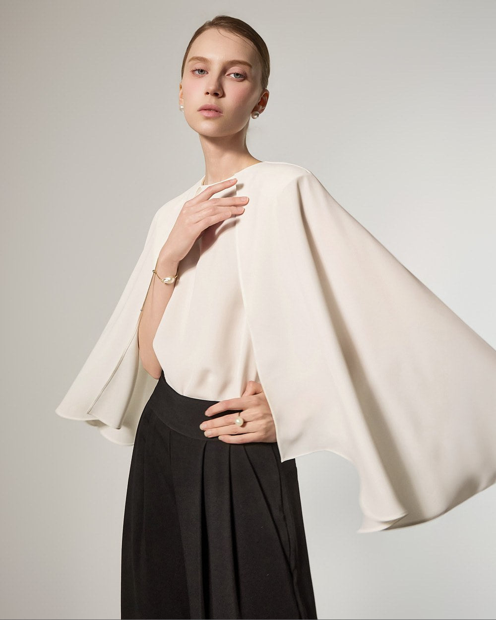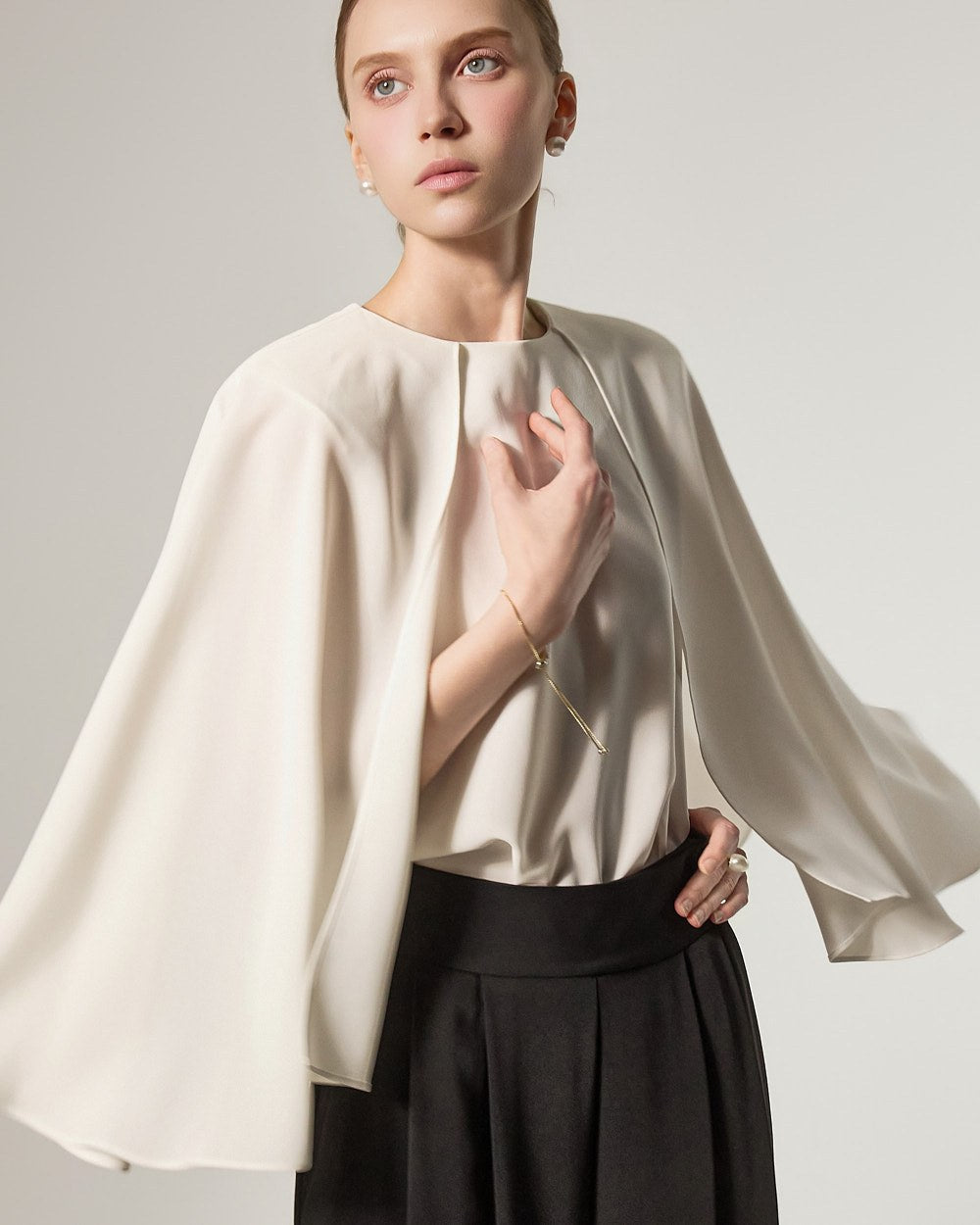 它由柔软飘逸的面料制成,